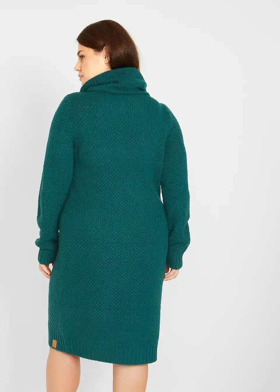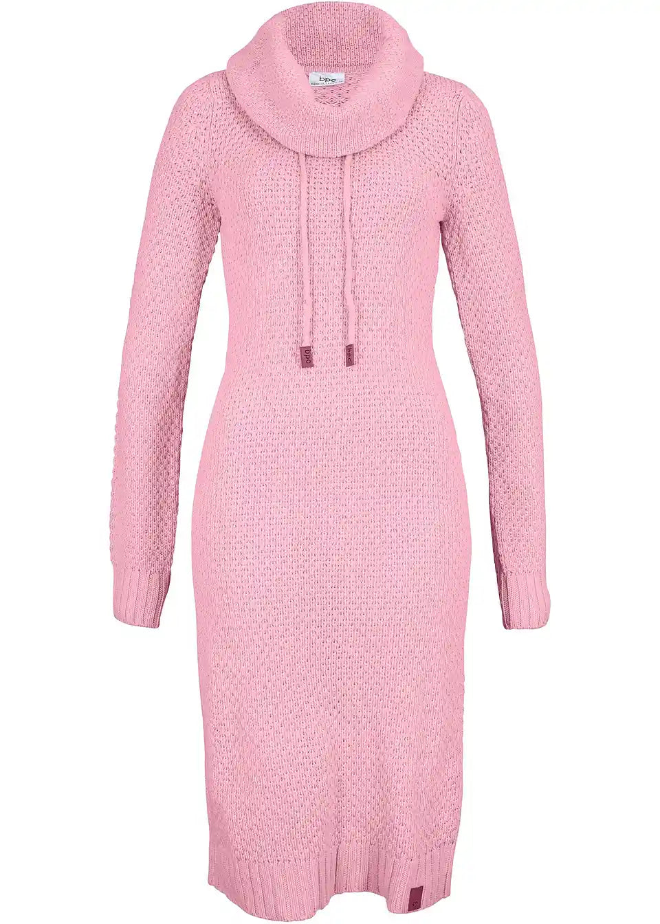 Ležerna pletena obleka s trakovi in detajlom iz imitacije usnja