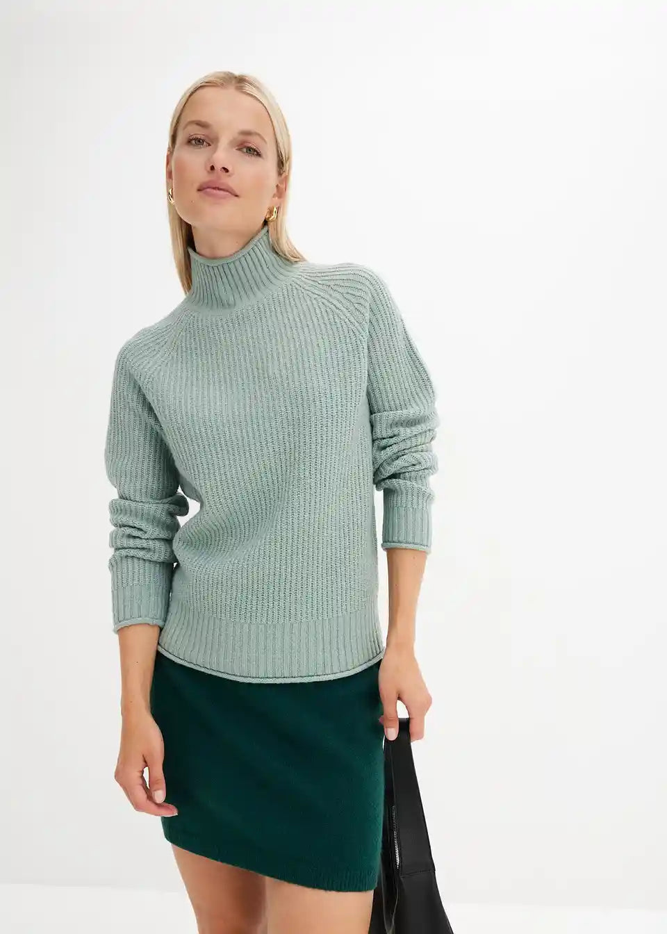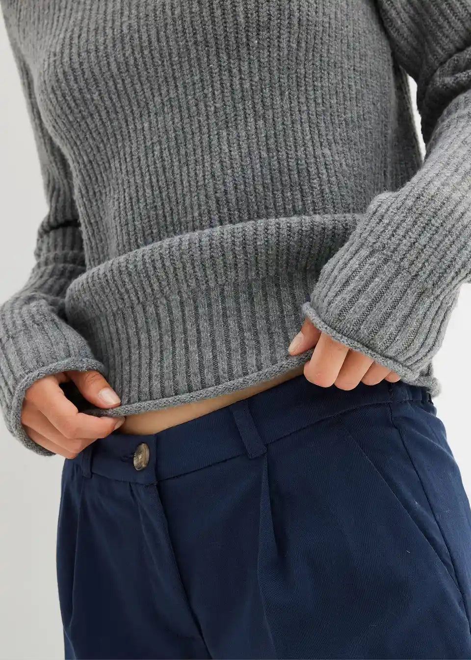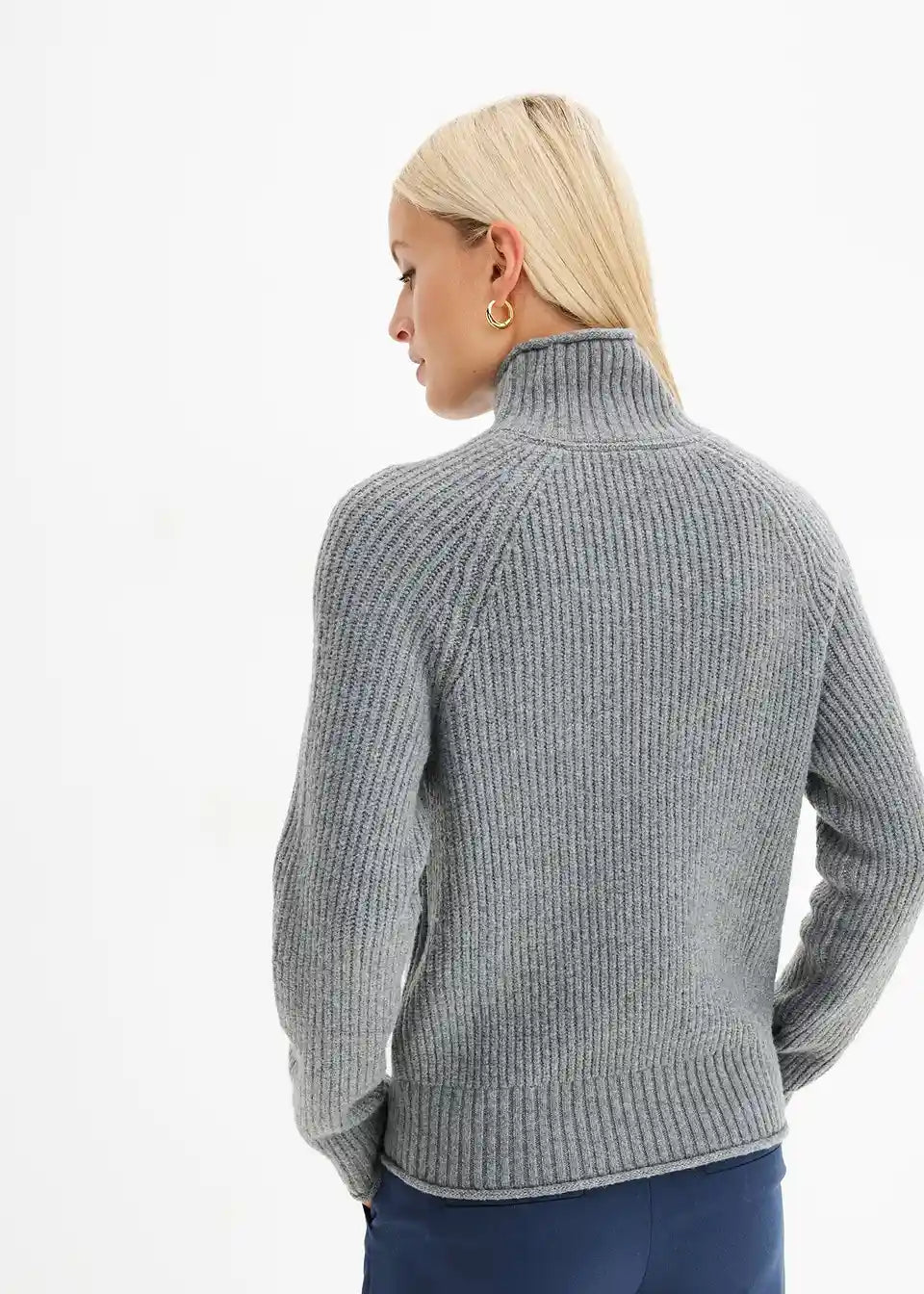 Sproščeno krojen pleteni pulover z zastavljenim ovratnikom