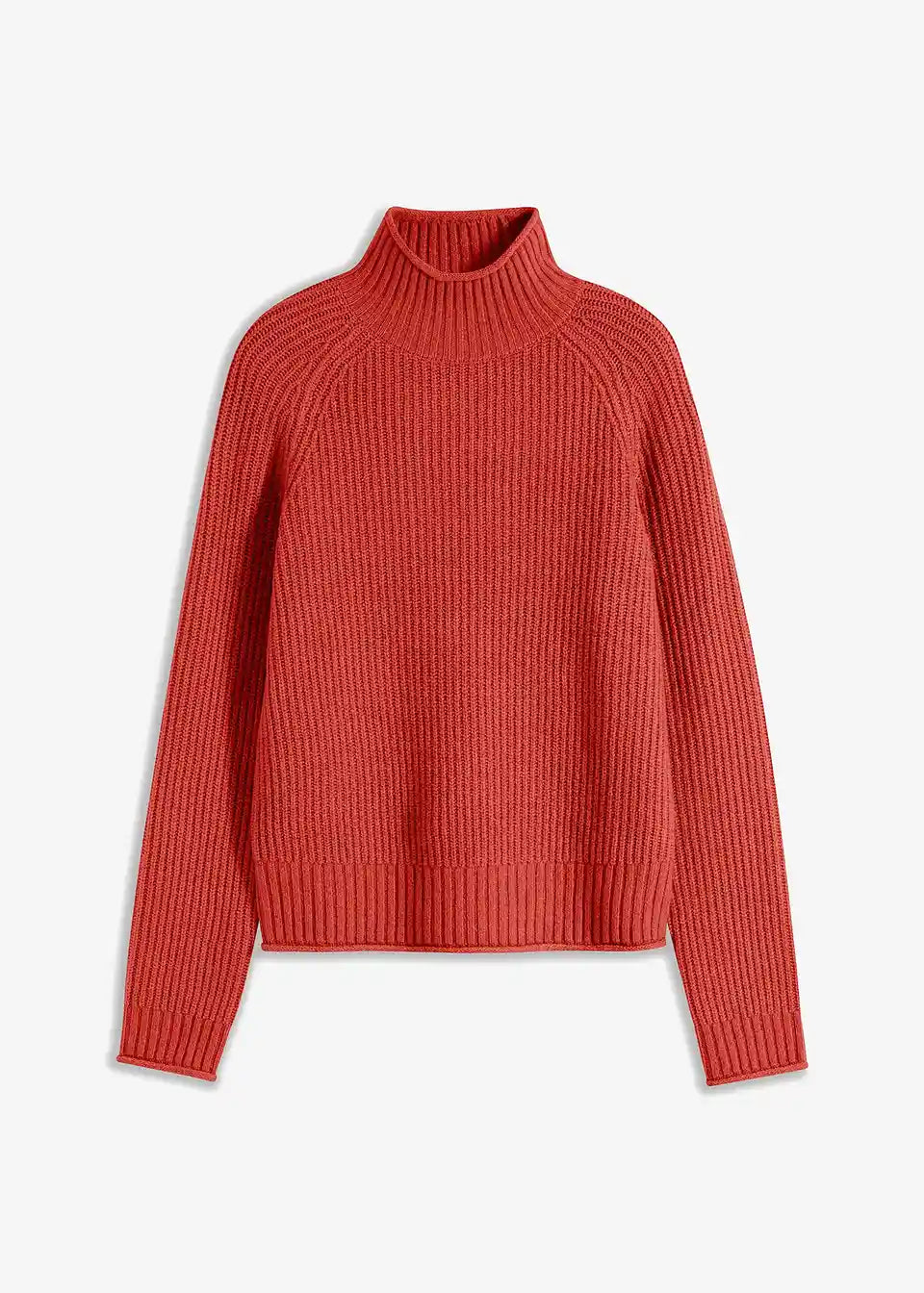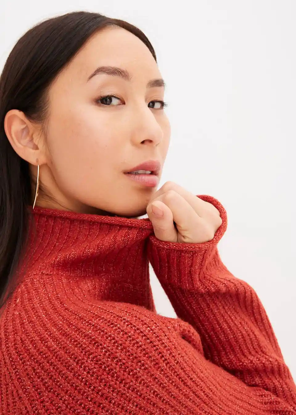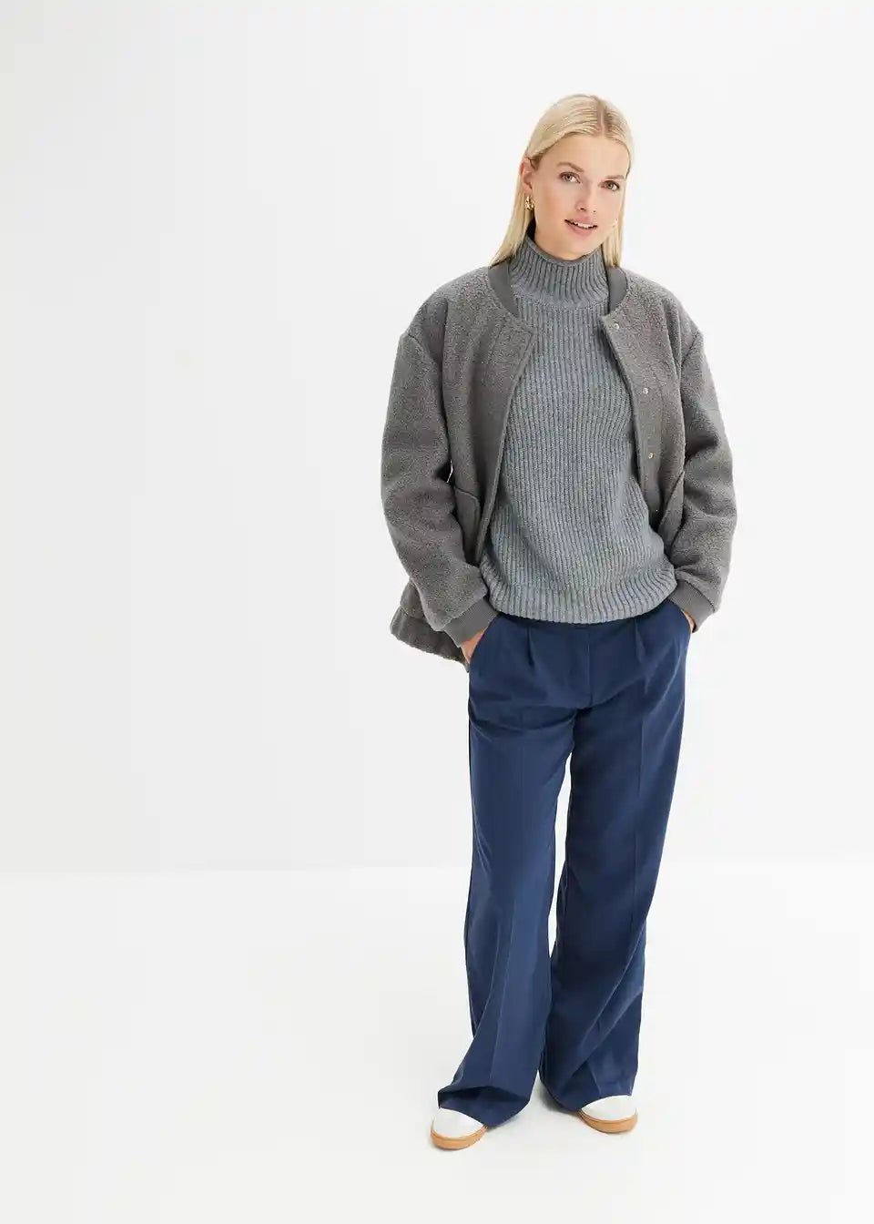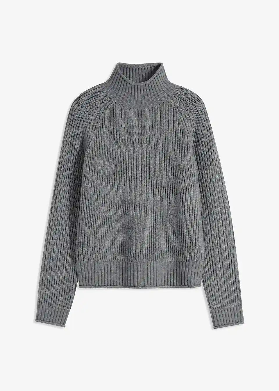 Sproščeno krojen pleteni pulover z zastavljenim ovratnikom