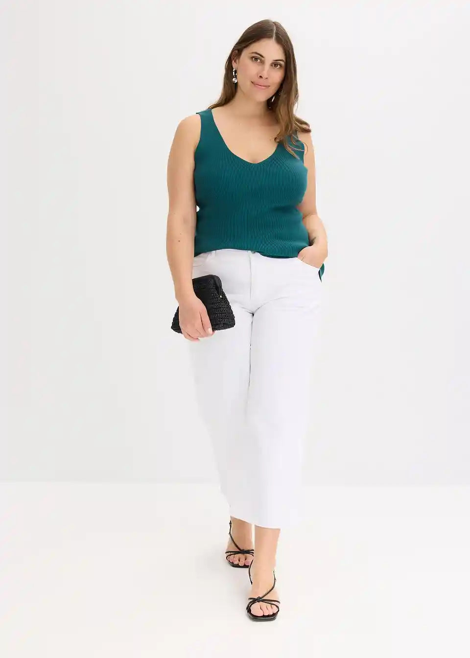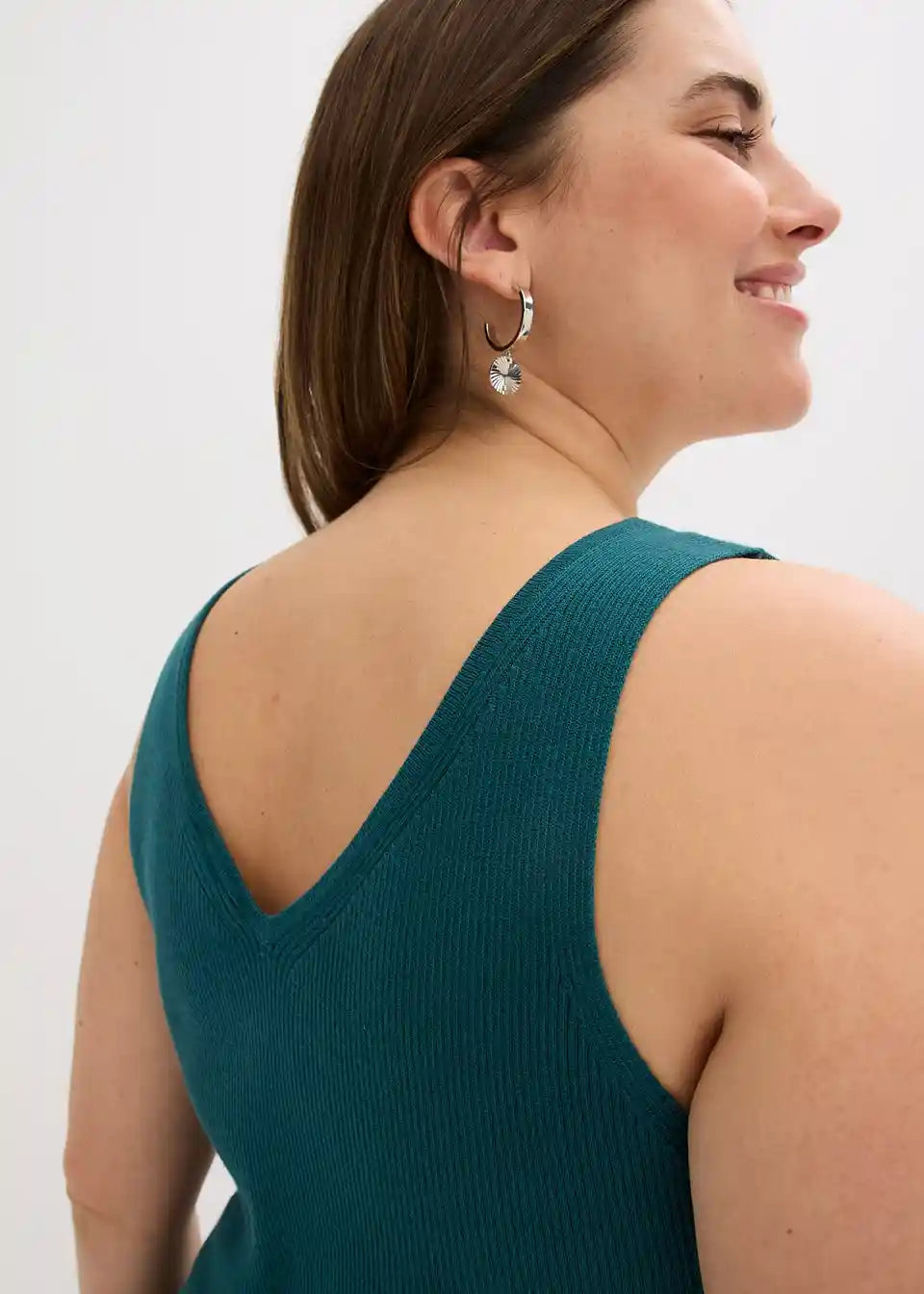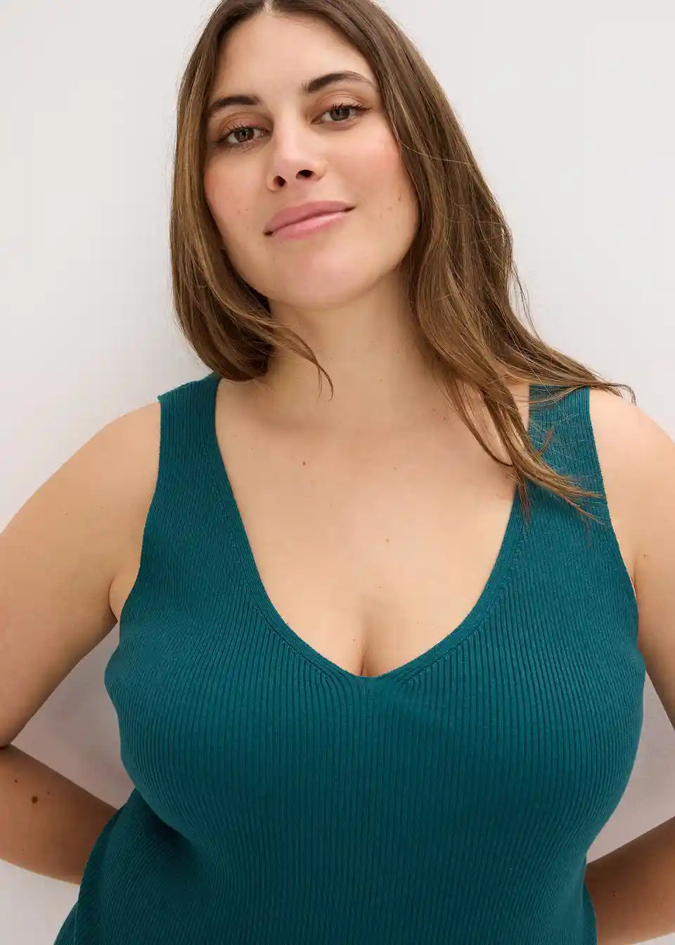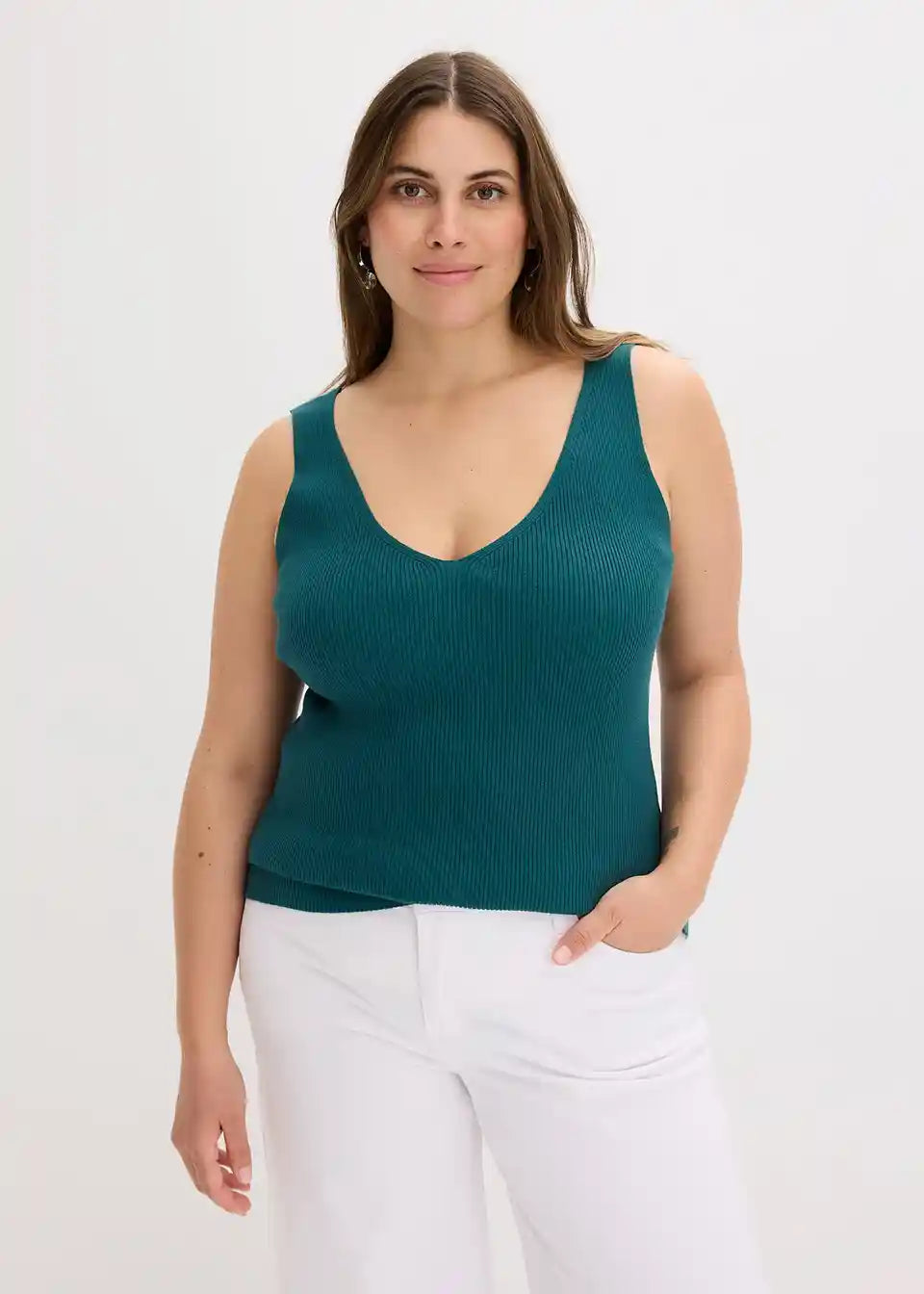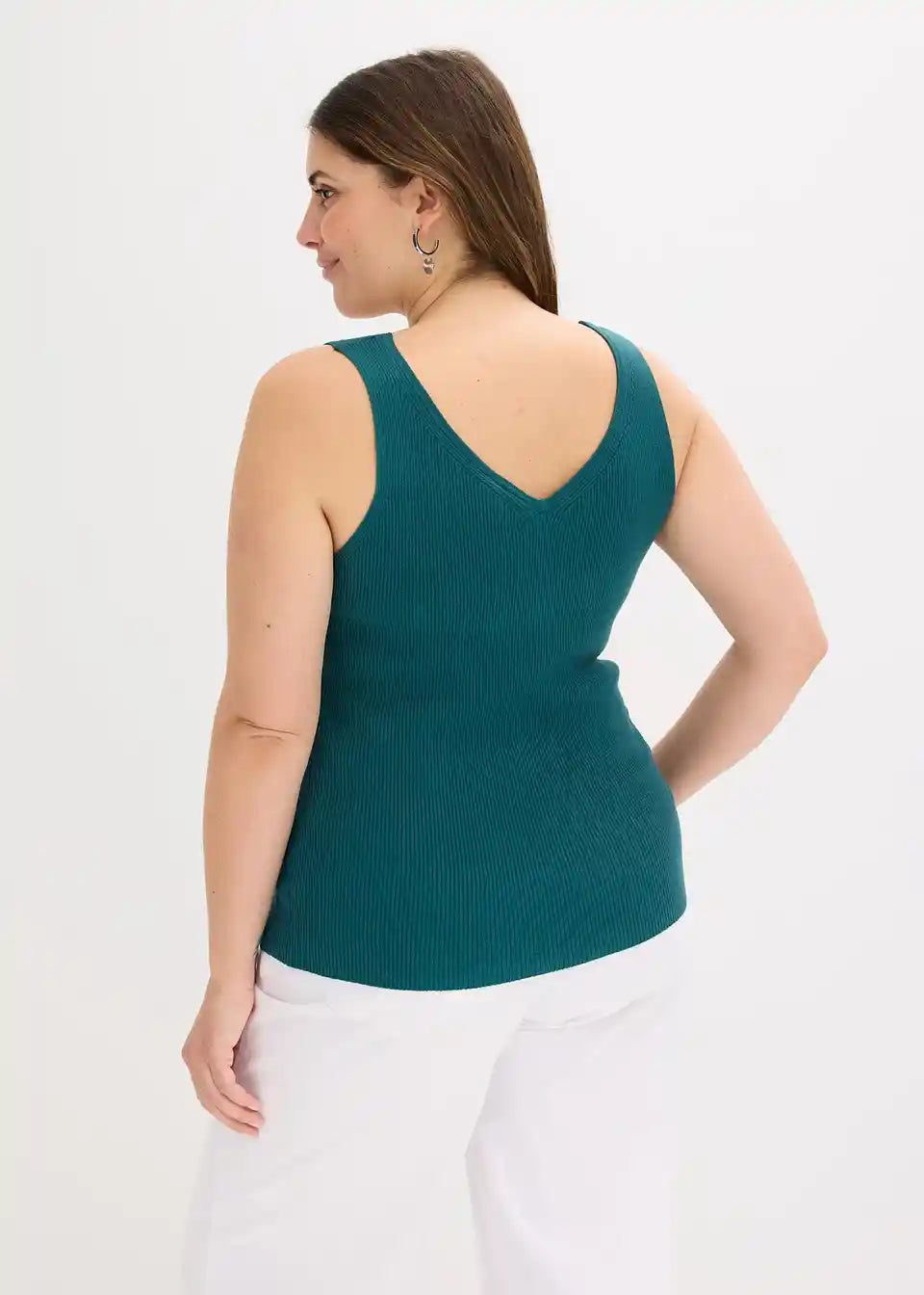 Moderna rebrasta majica z globokim izrezom