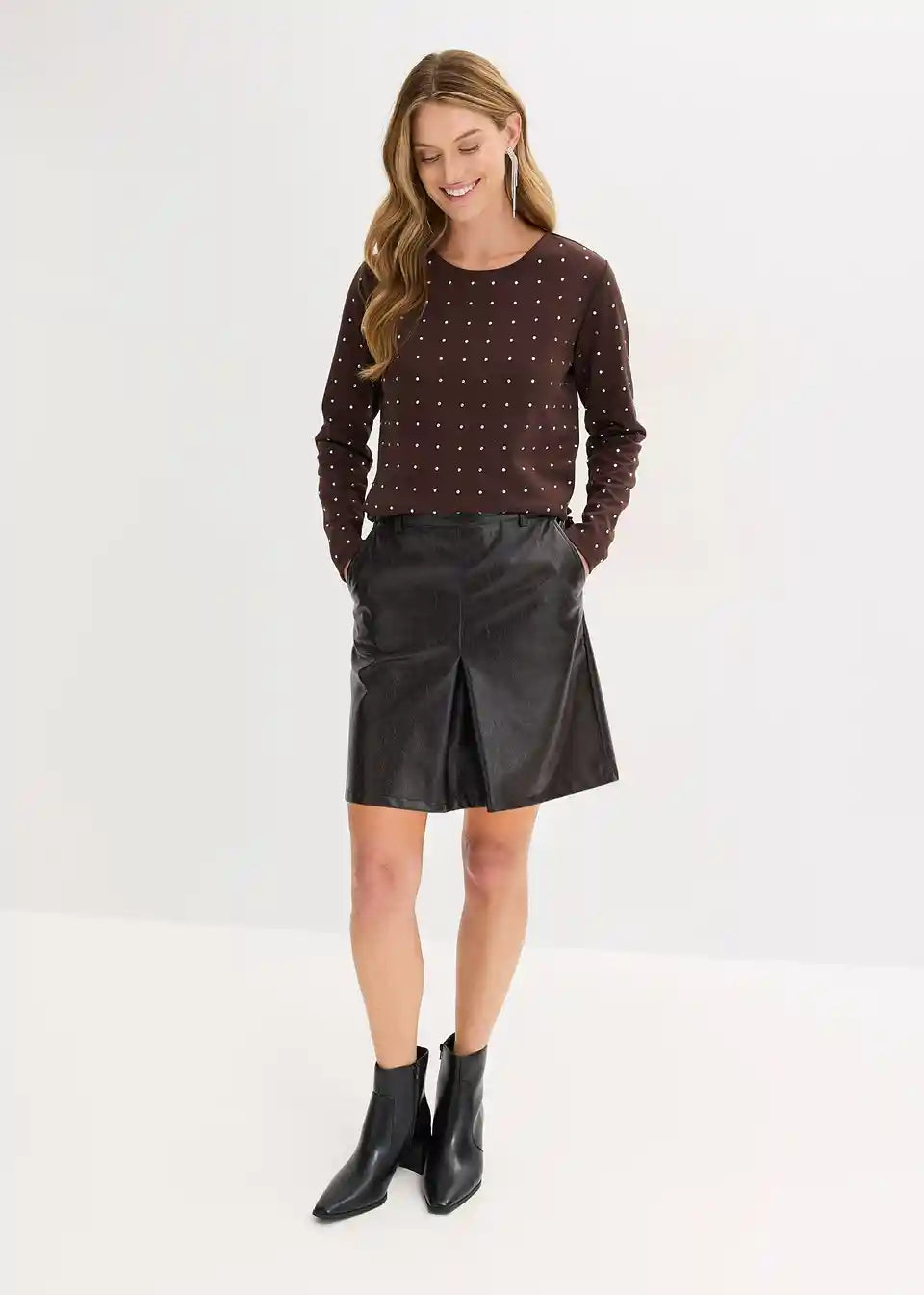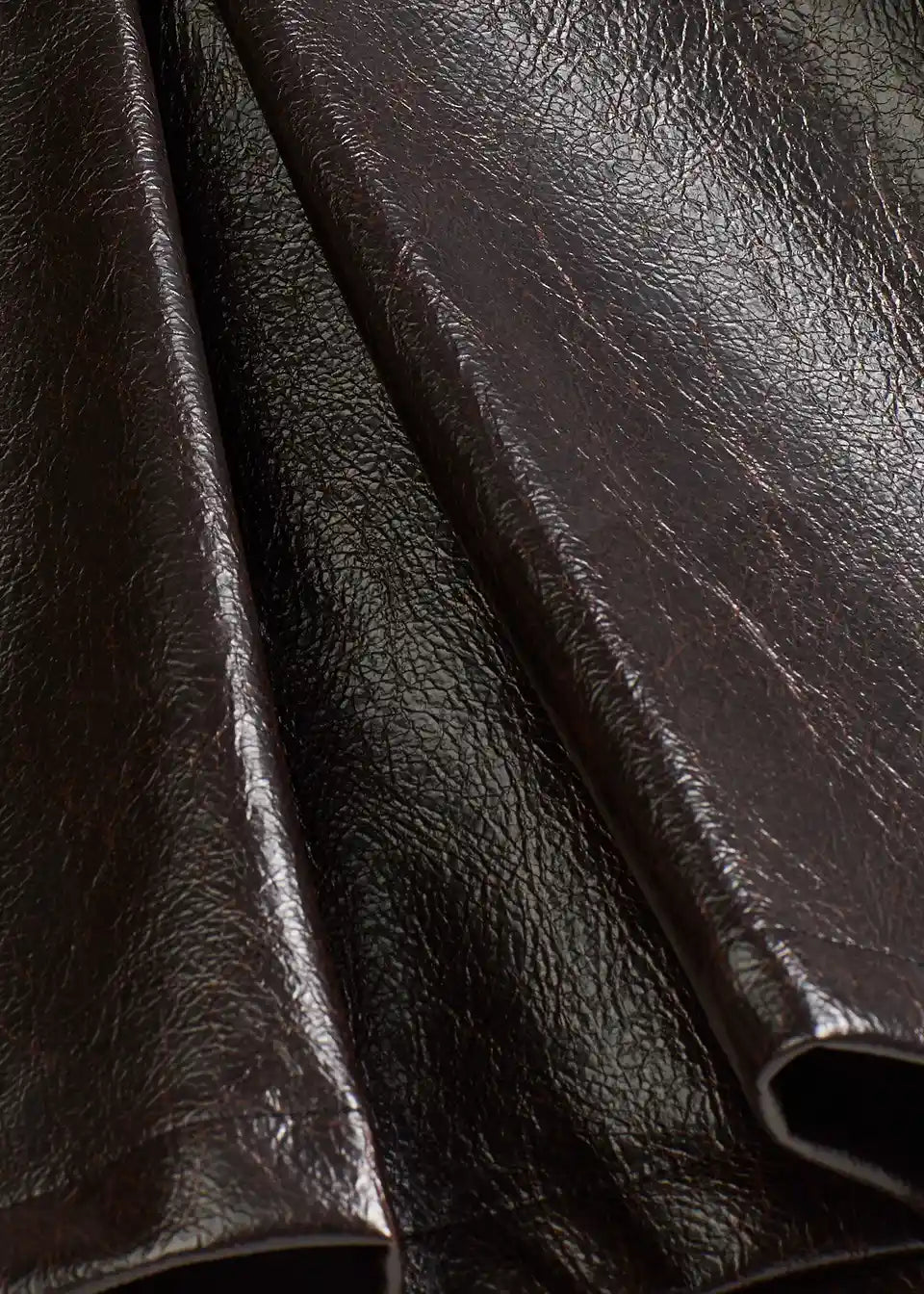 Mini krilo iz vtisnjenega lakastega umetnega usnja z gubo spredaj