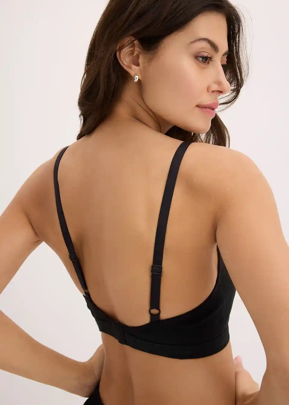 Mehak, rebrast bralette z odstranljivimi blazinicami in čipko na košarici