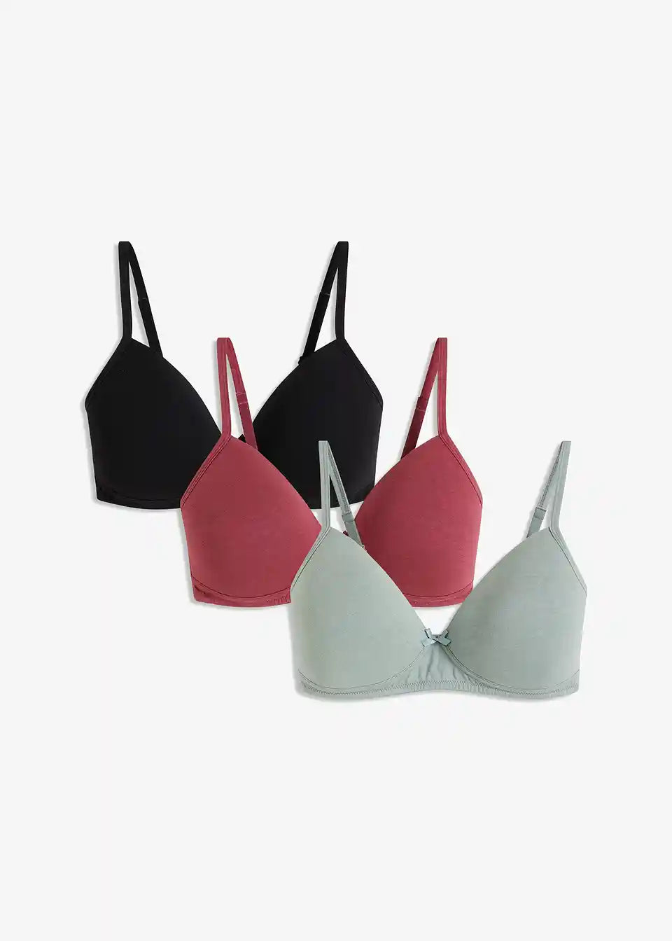 Penasto oblikovan nedrček brez kosti z ekološkim bombažem (3 kosi)