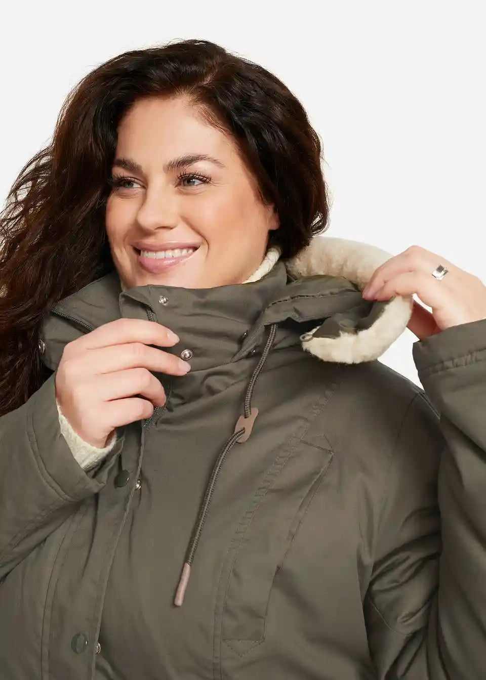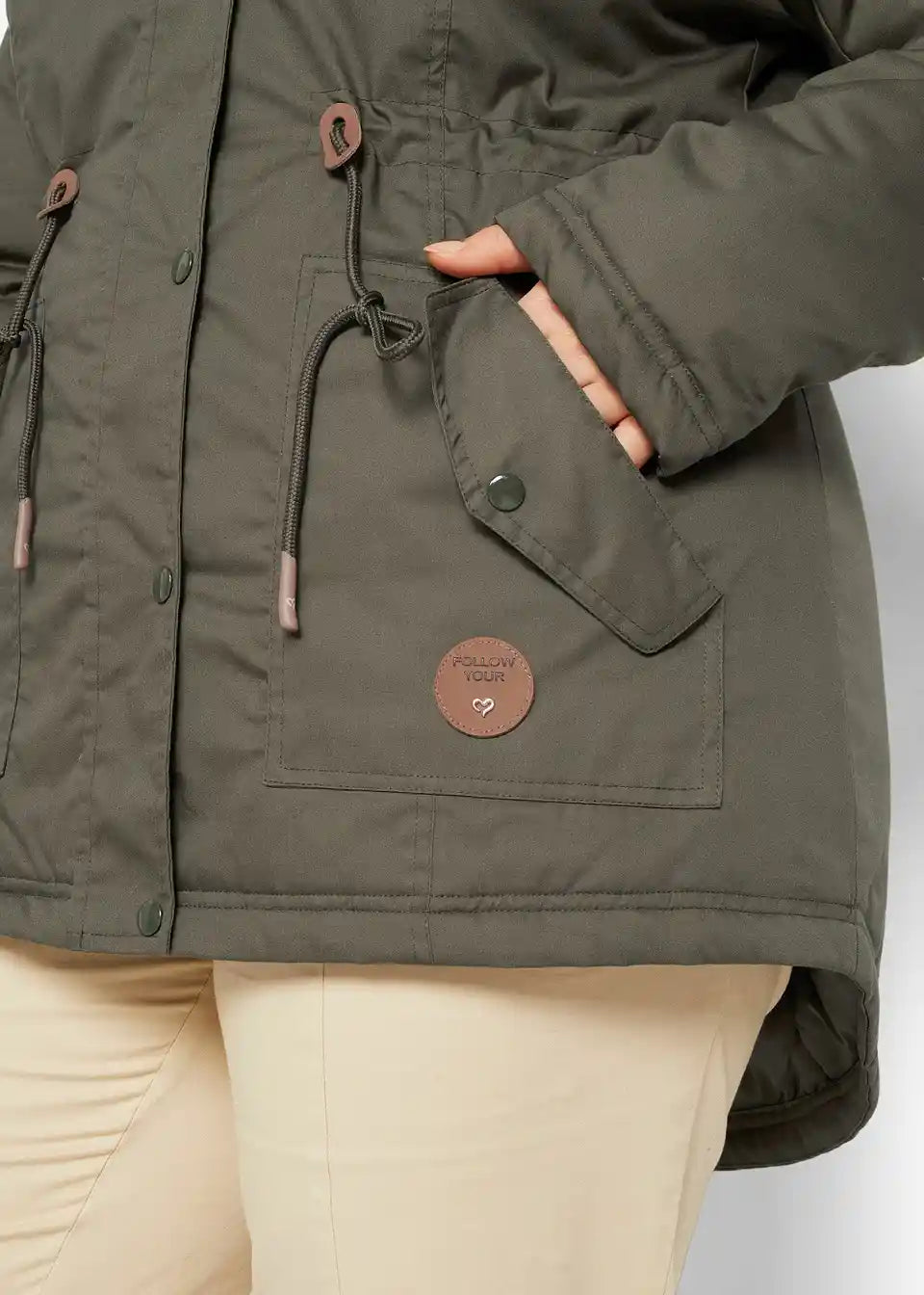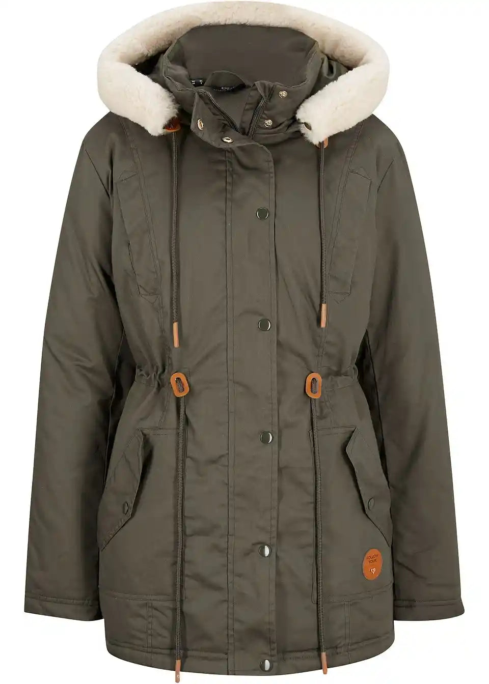 Podložen parka s kapuco, odstranljiva obloga iz imitacije krzna