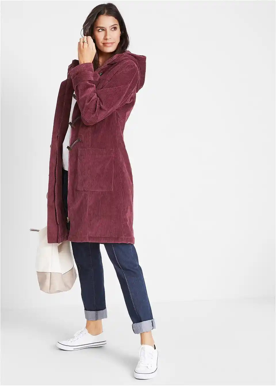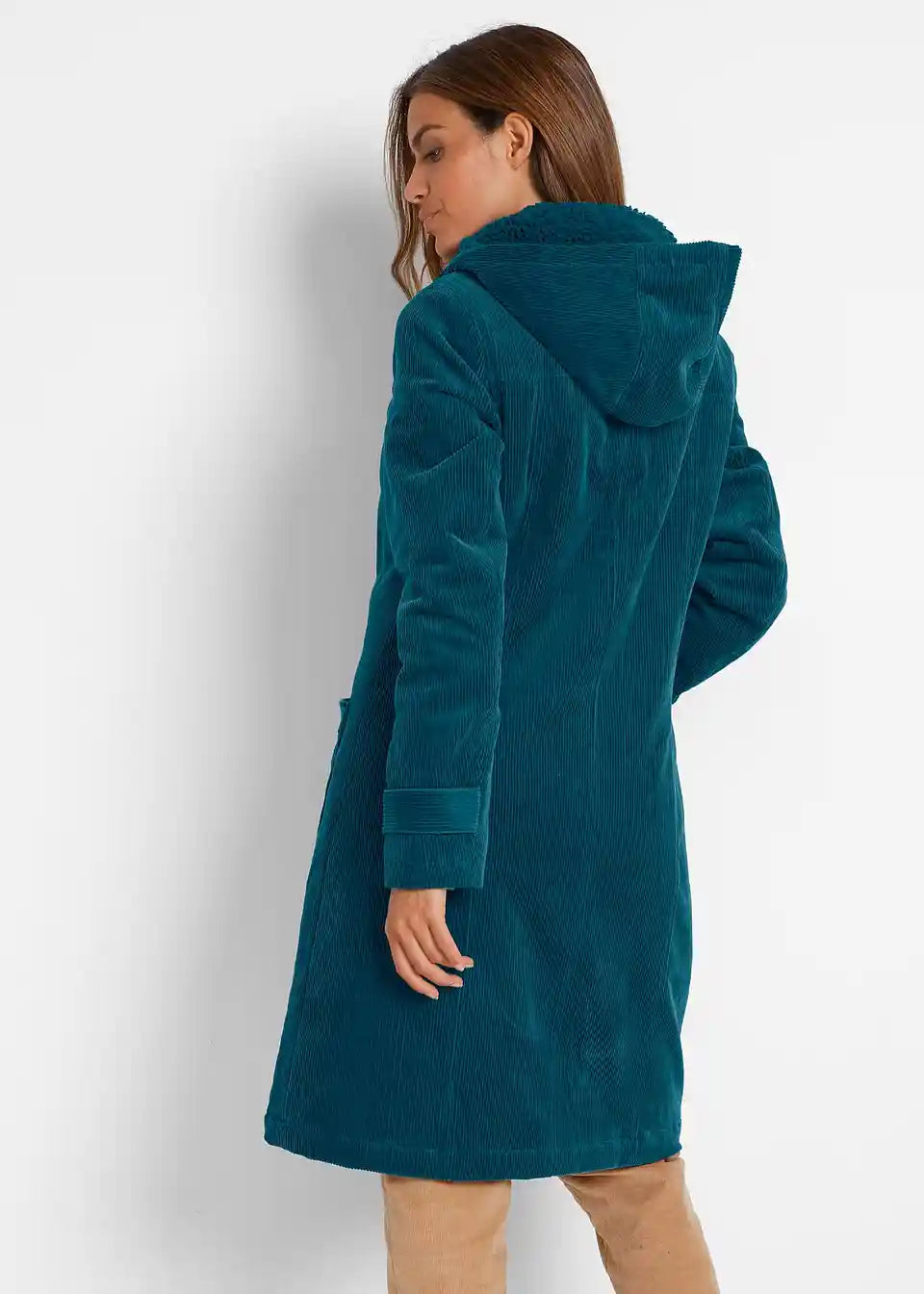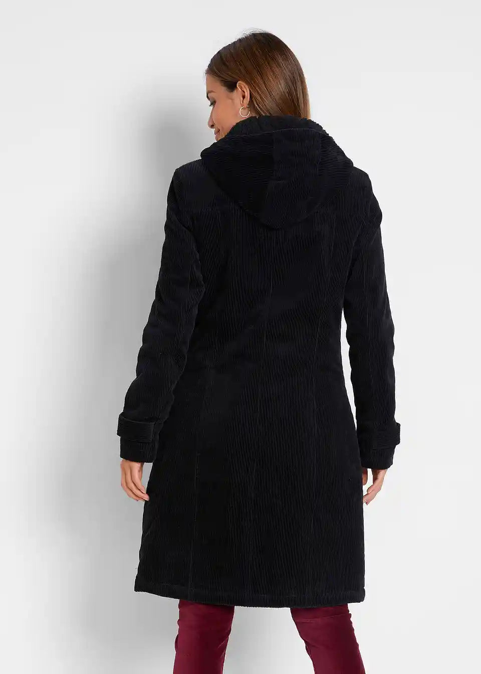 Podložen rebrast Dufflecoat s kapuco in zapenjanjem na zaponke