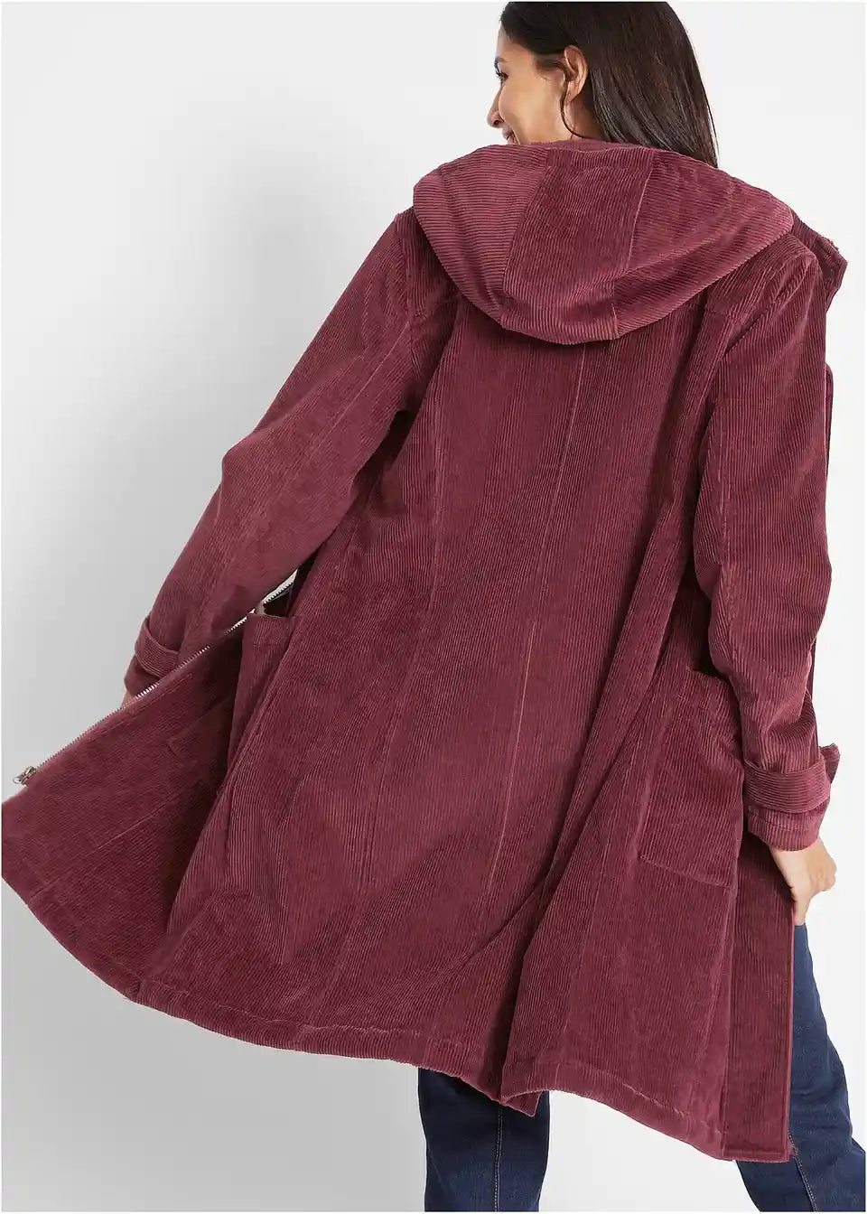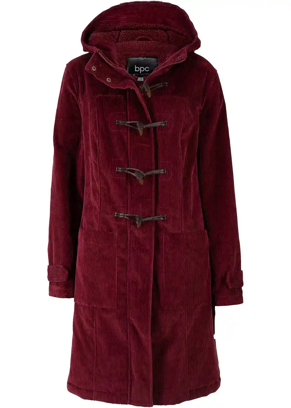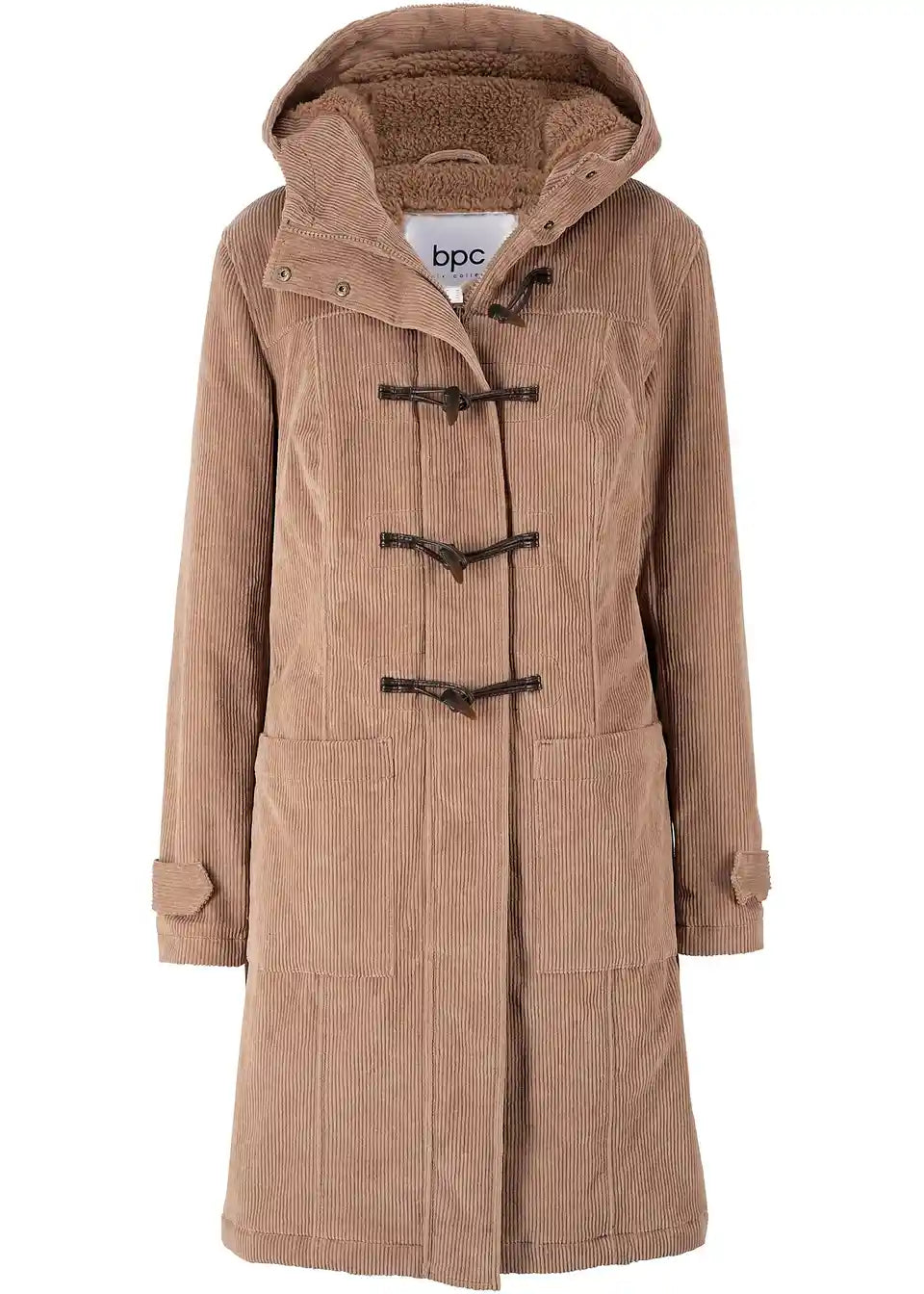 Podložen rebrast Dufflecoat s kapuco in zapenjanjem na zaponke