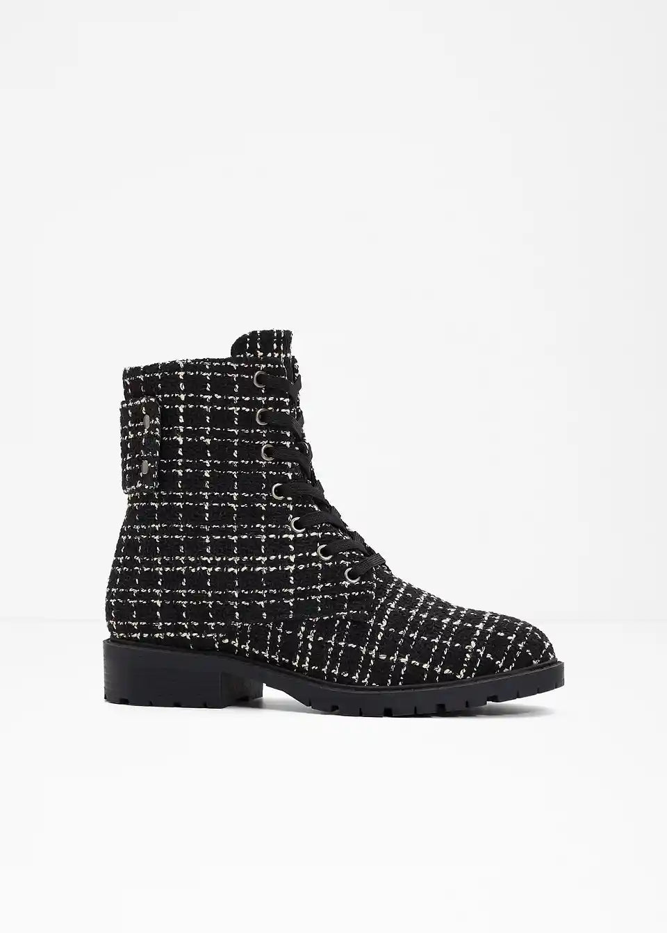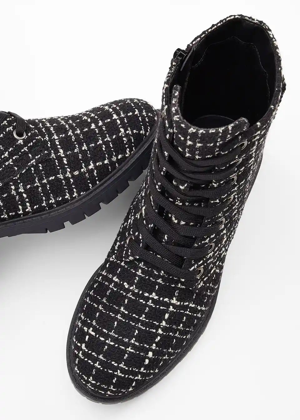 Priložnostni podložen škorenj z vezalkami v Bouclé videzu
