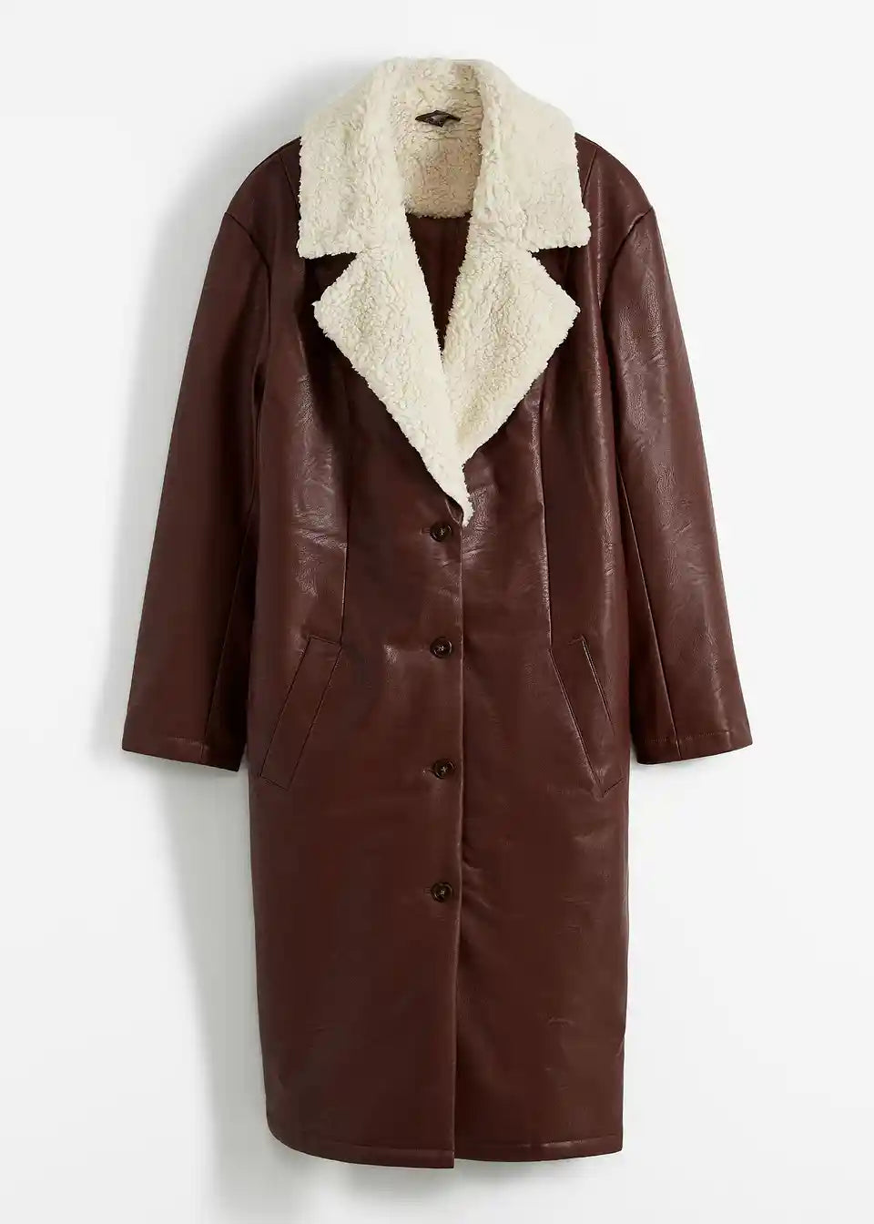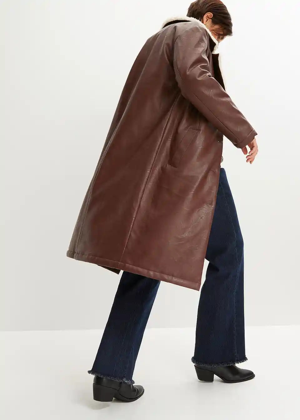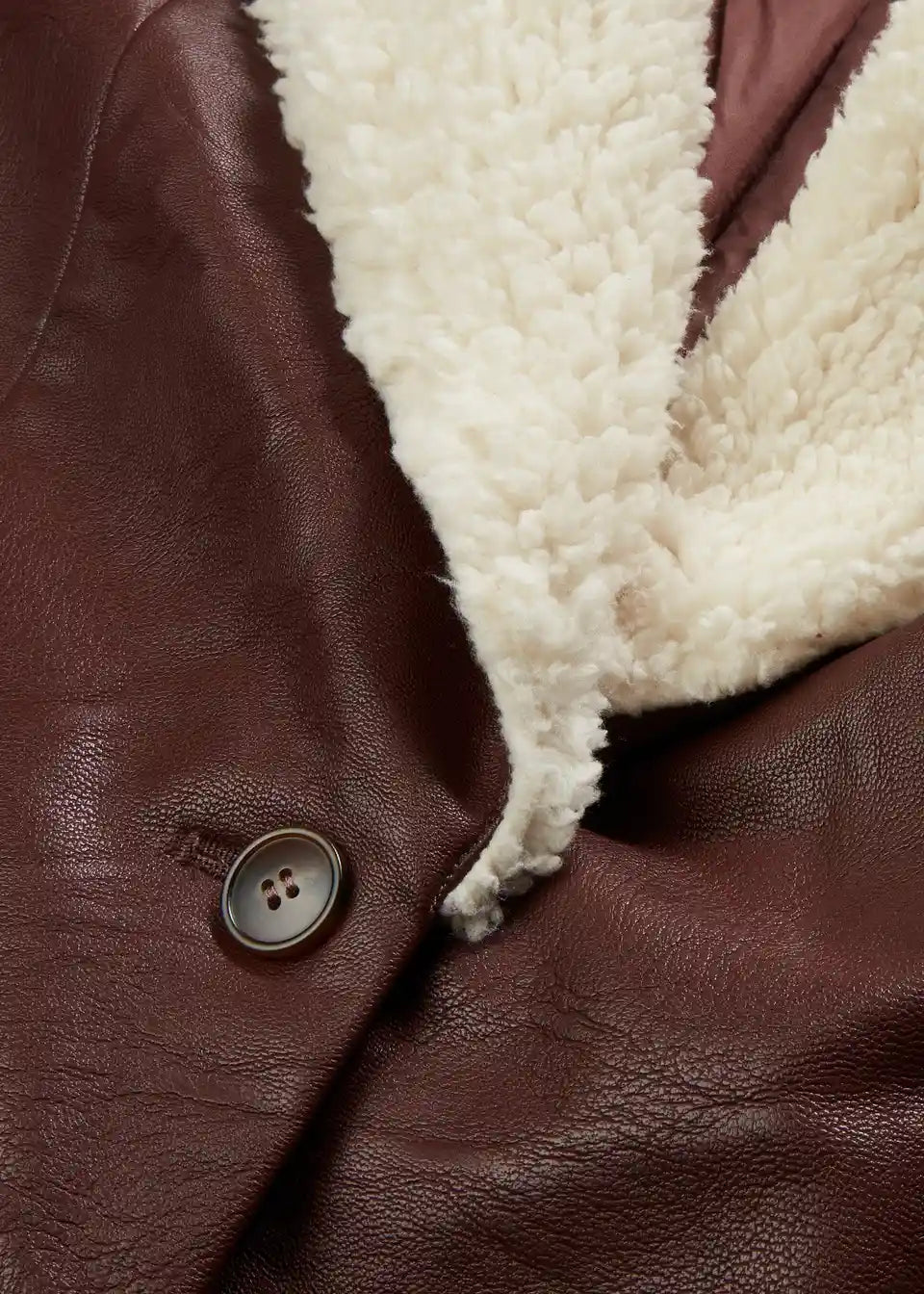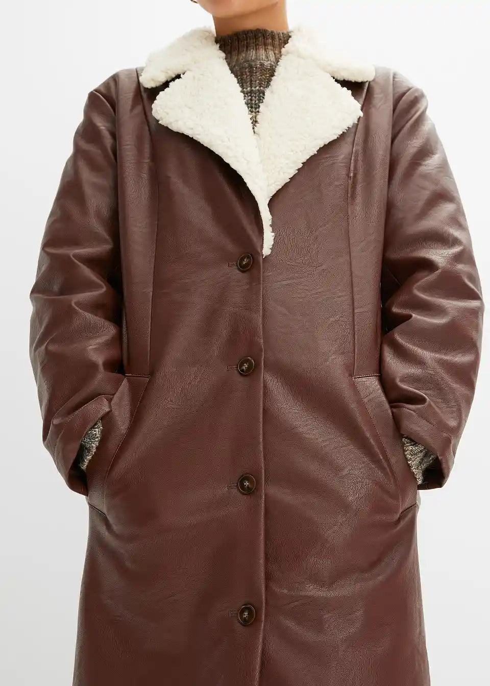 Vatiran plašč iz umetnega usnja z umetnim ovčjim krznom na ovratniku