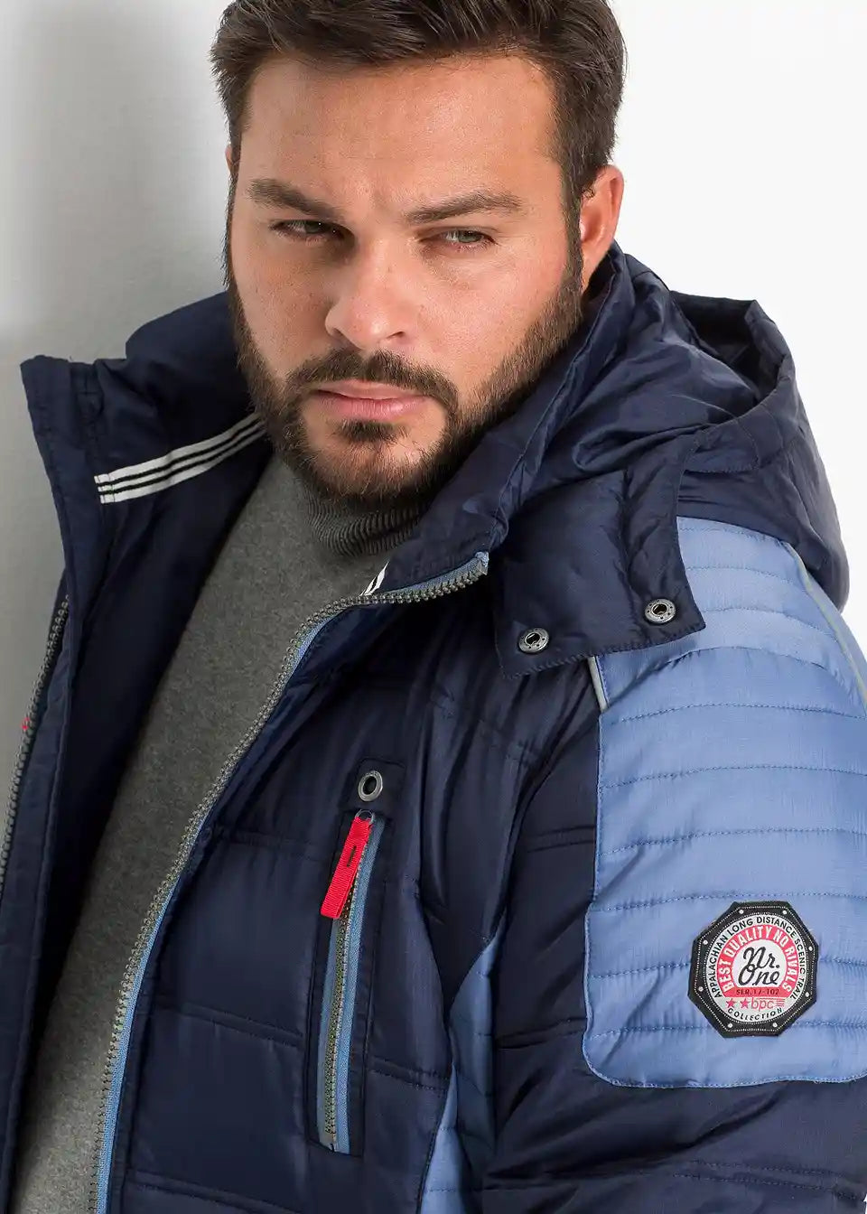 Praktičen in moderen spremljevalec v hladnem vremenu je ta moška zimska prešita jakna Regular Fit. Prepriča z veliko snemljivo kapuco in številnimi žepi. Stranski žepi in prsni žepi se zapirajo z zadrgo. Dva notranja žepa nudita dodaten prostor za shranjevanje. Manšete na rokavih zahvaljujoč elastičnemu rebrastemu materialu odlično prilegajo. Vetroodbojna jakna znamke bpc se spredaj zapira z zadrgo.