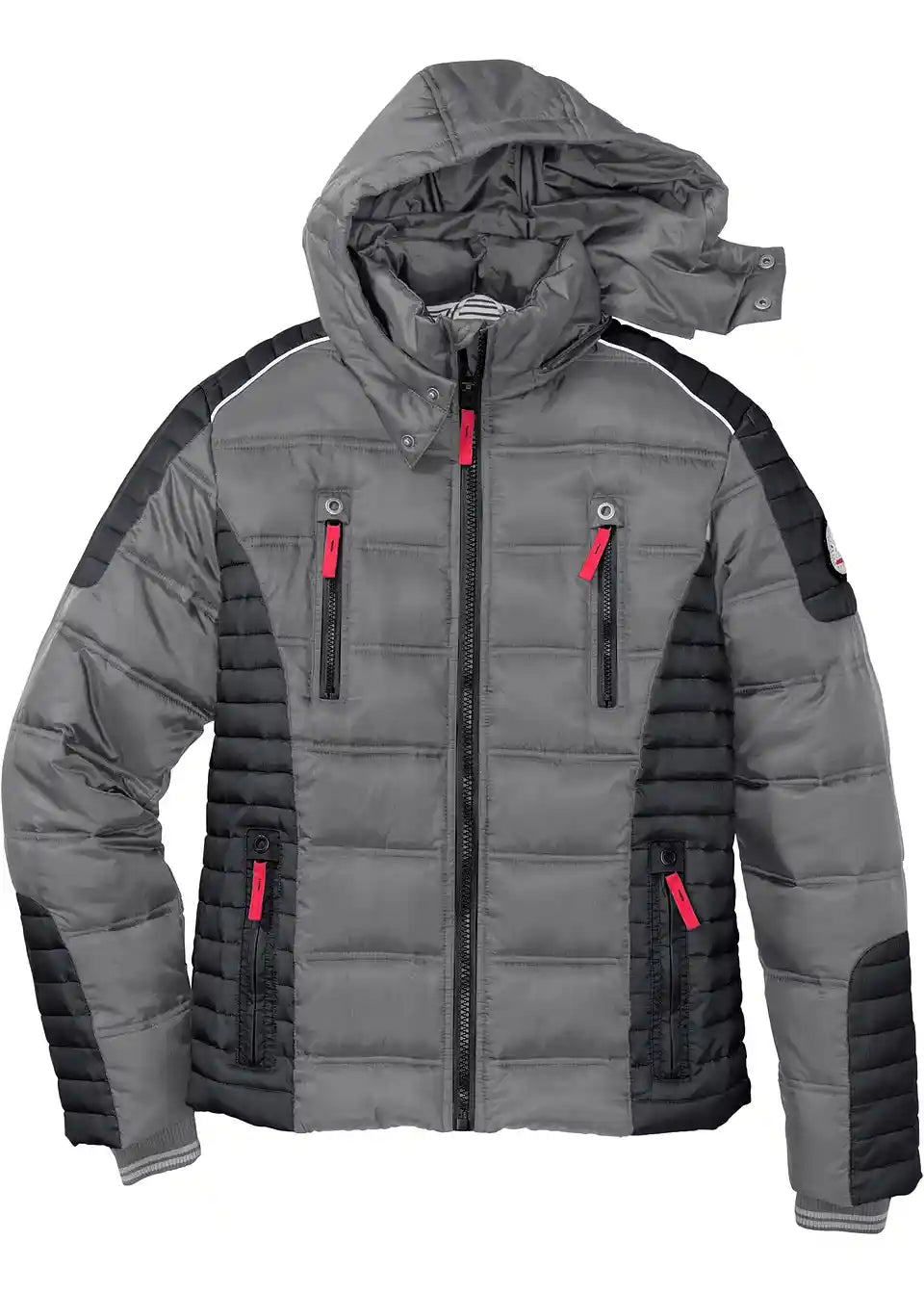 Zimska prešita jakna s kapuco in žepi na zadrgo