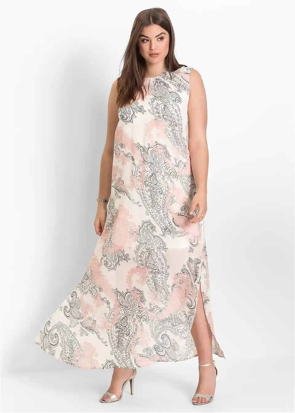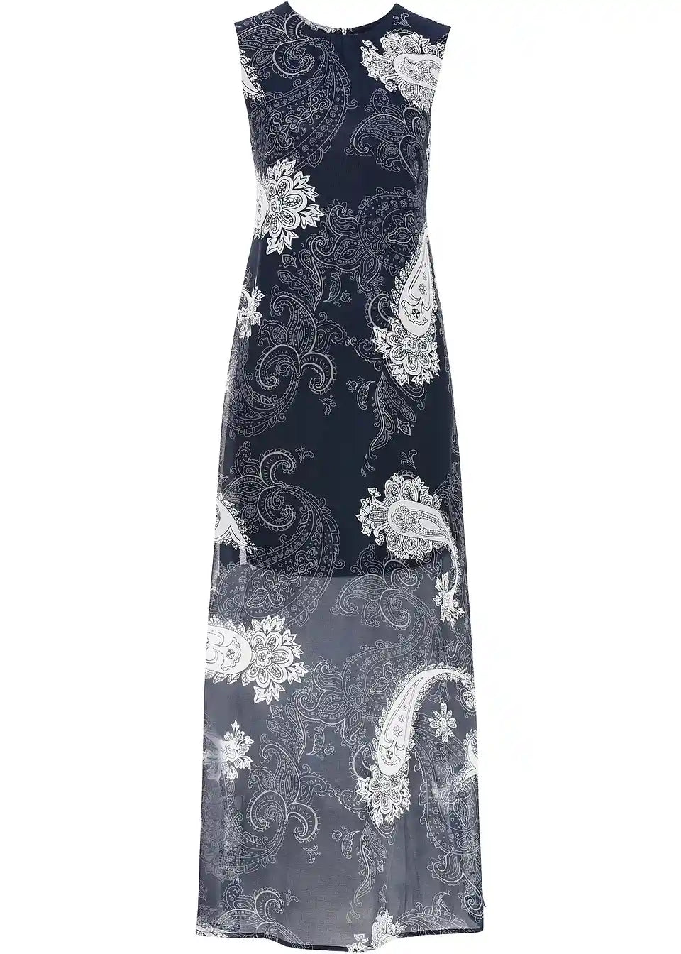 Elegantna poletna obleka iz šifona z okroglim izrezom