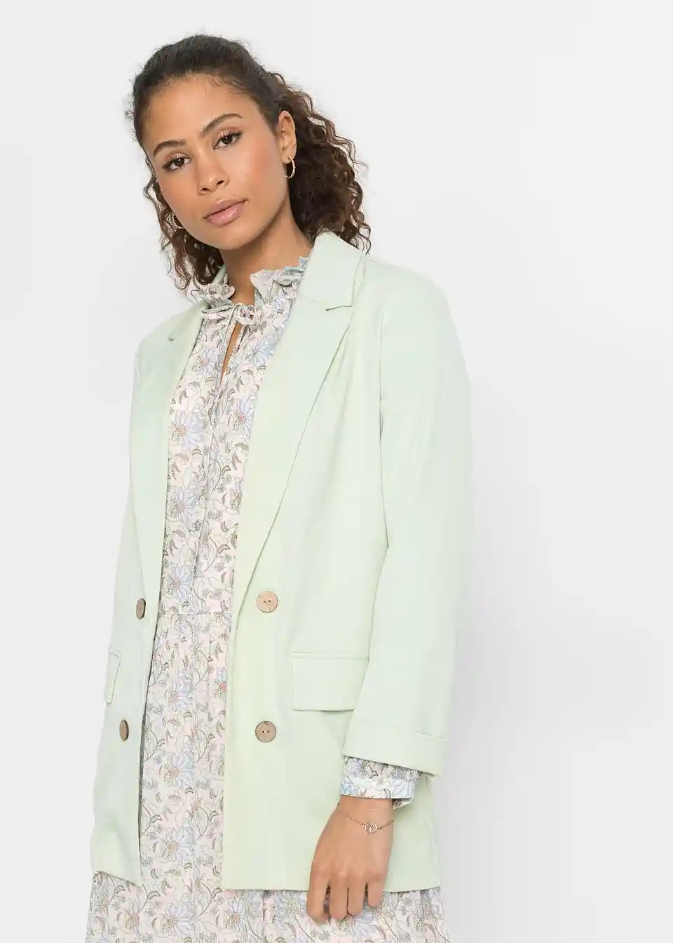 Ležeren, dvoredni blazer z zavihanimi rokavi
