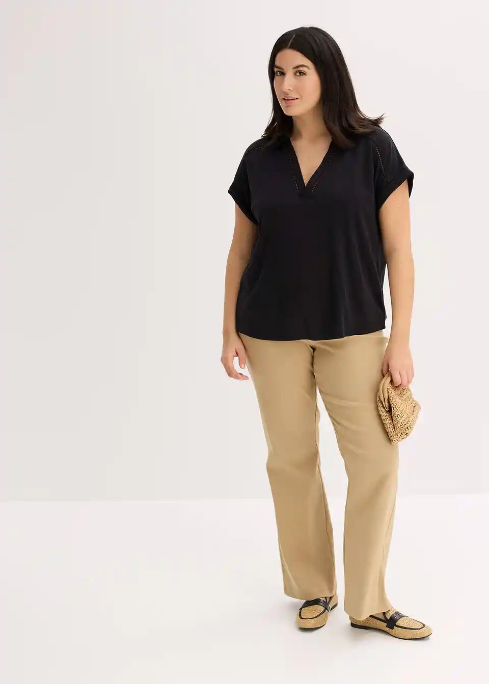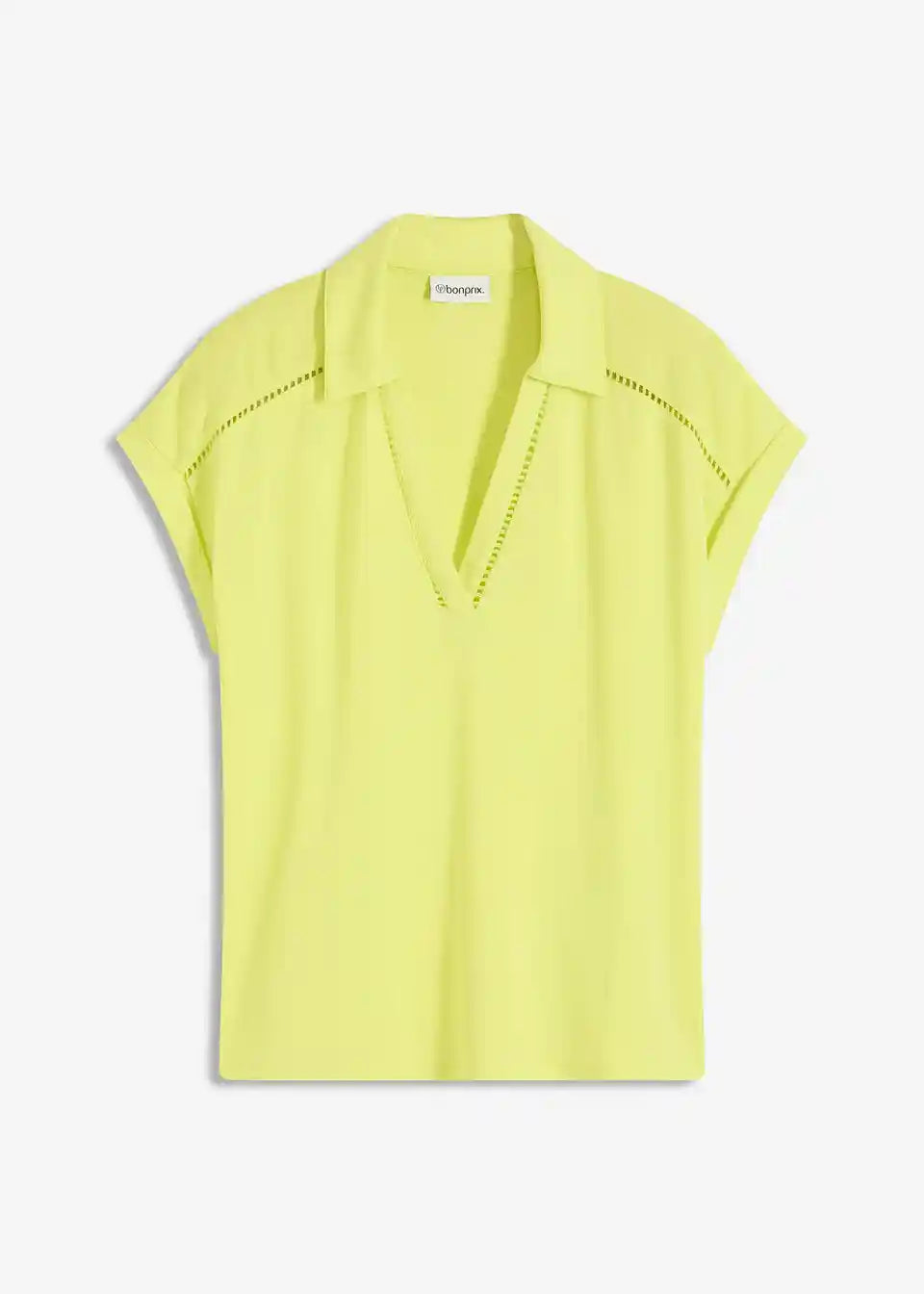 Polo majica s čipkastim všitkom iz pikeja z deležem viskoze