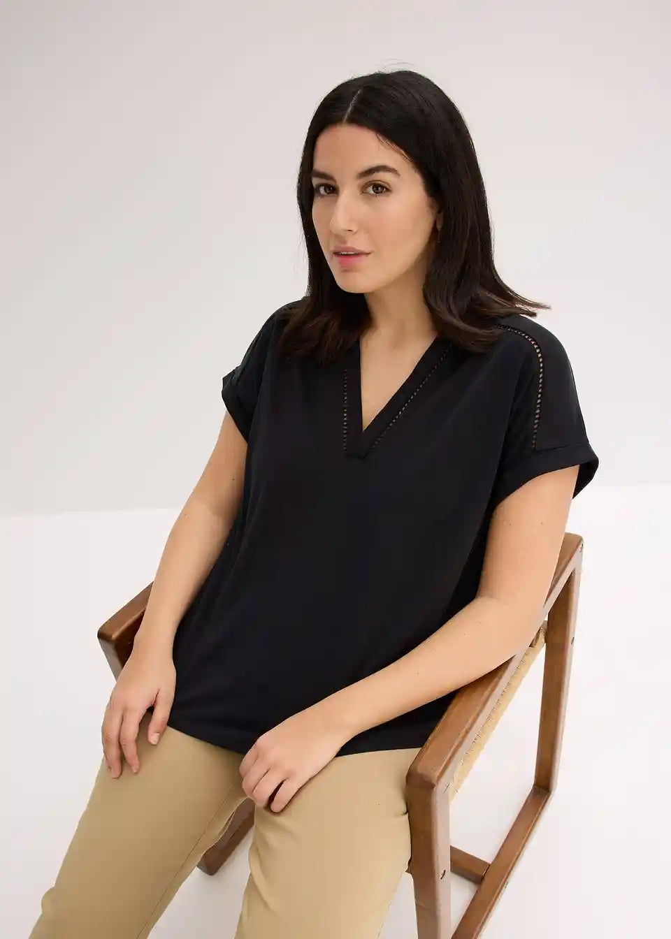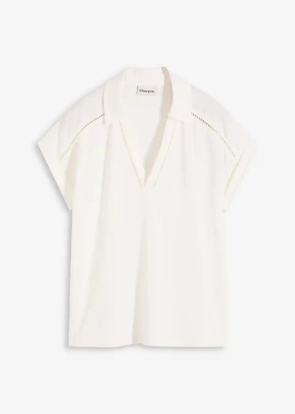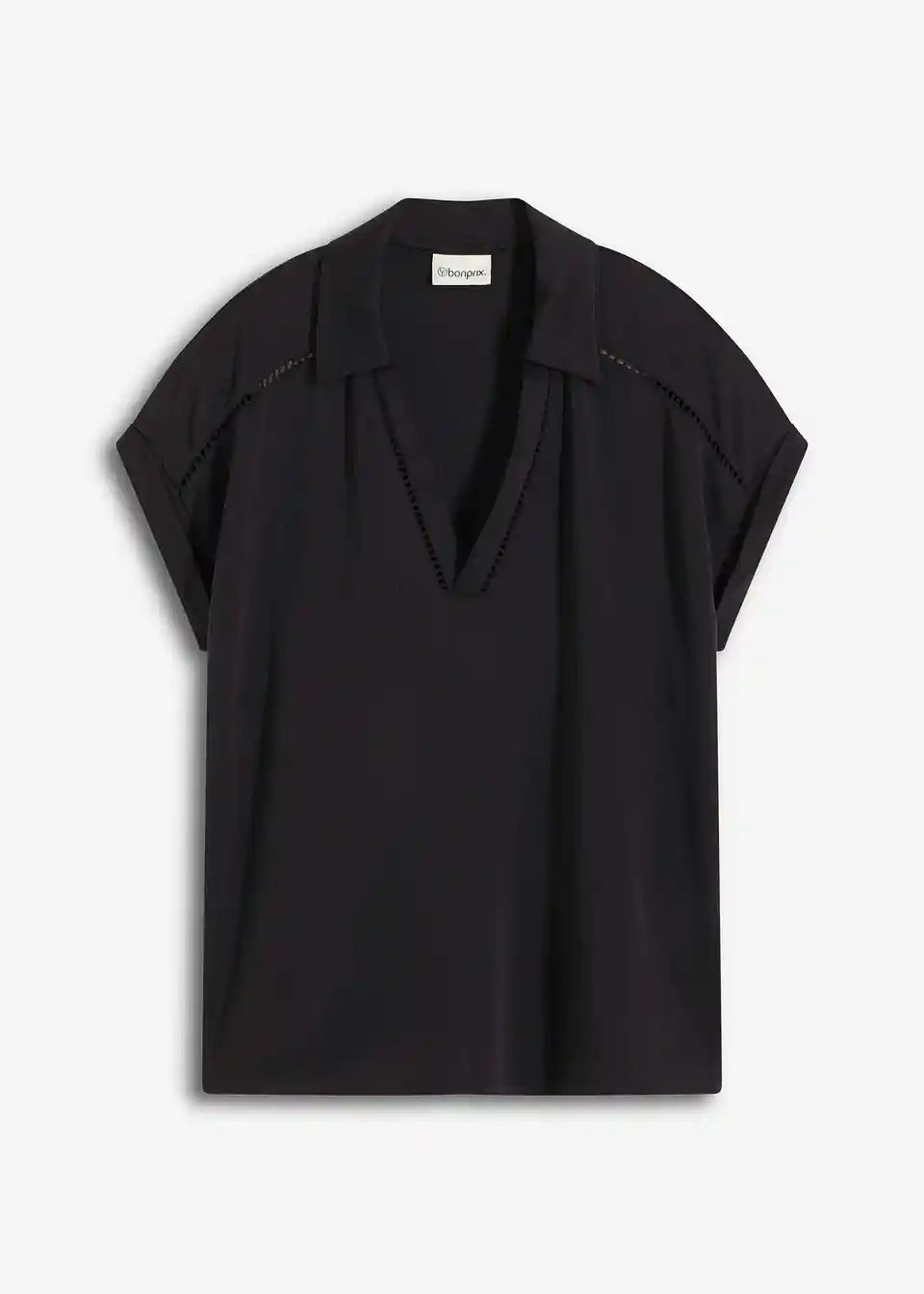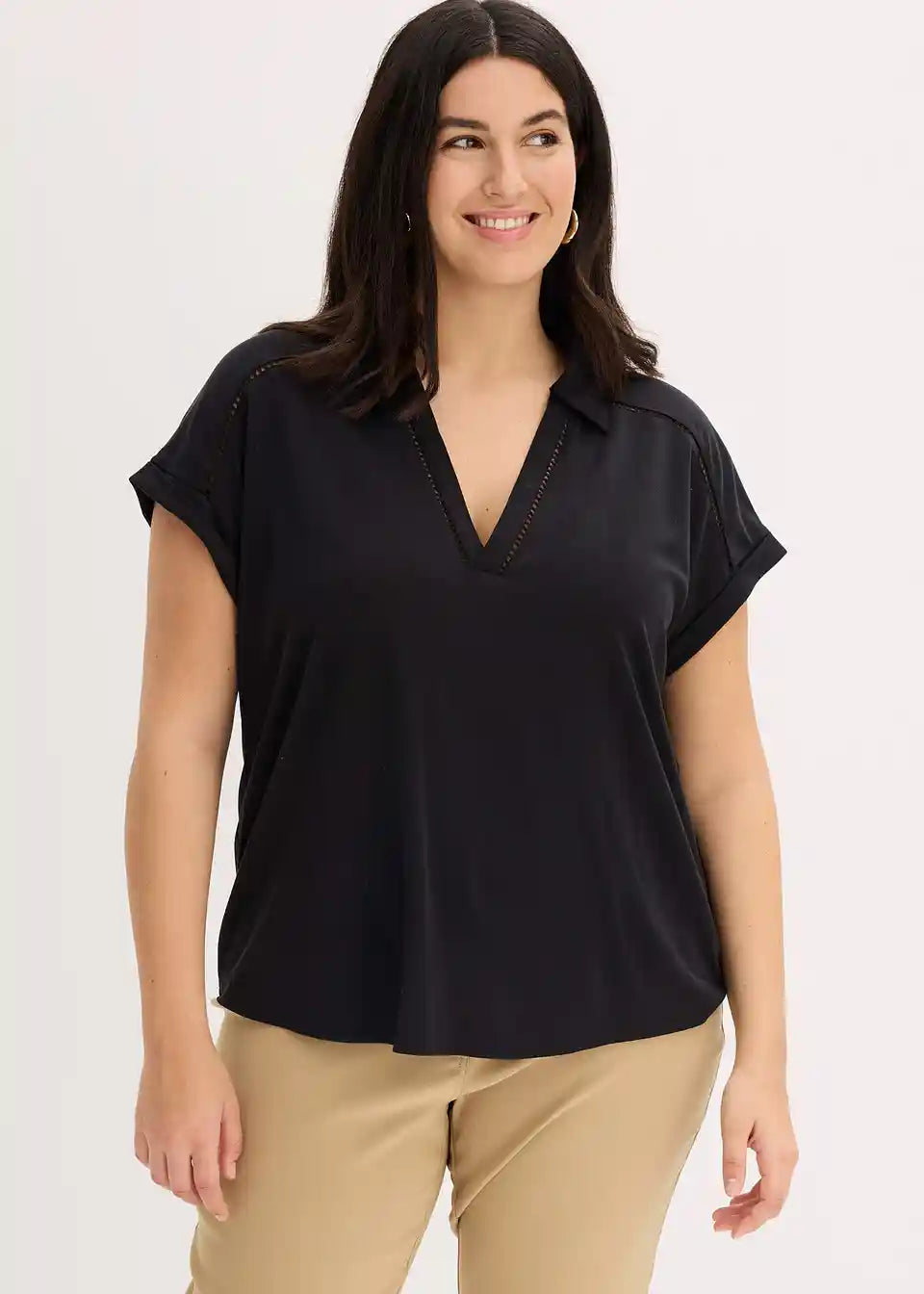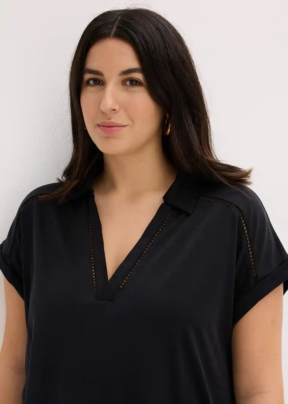 elegantna polo majica z dekorativnim čipkastim vložkom