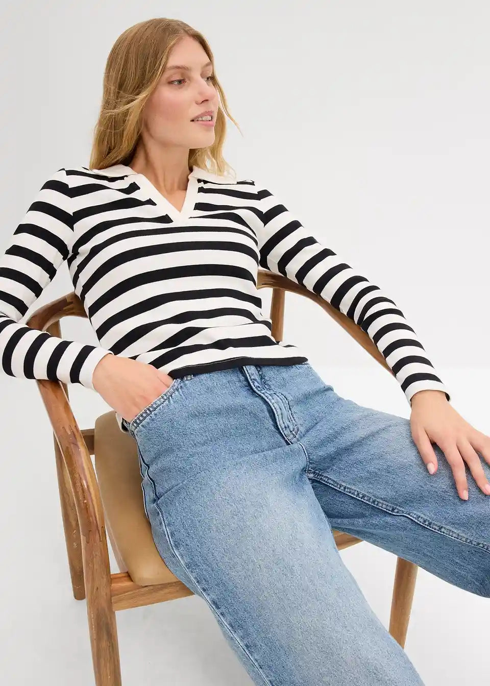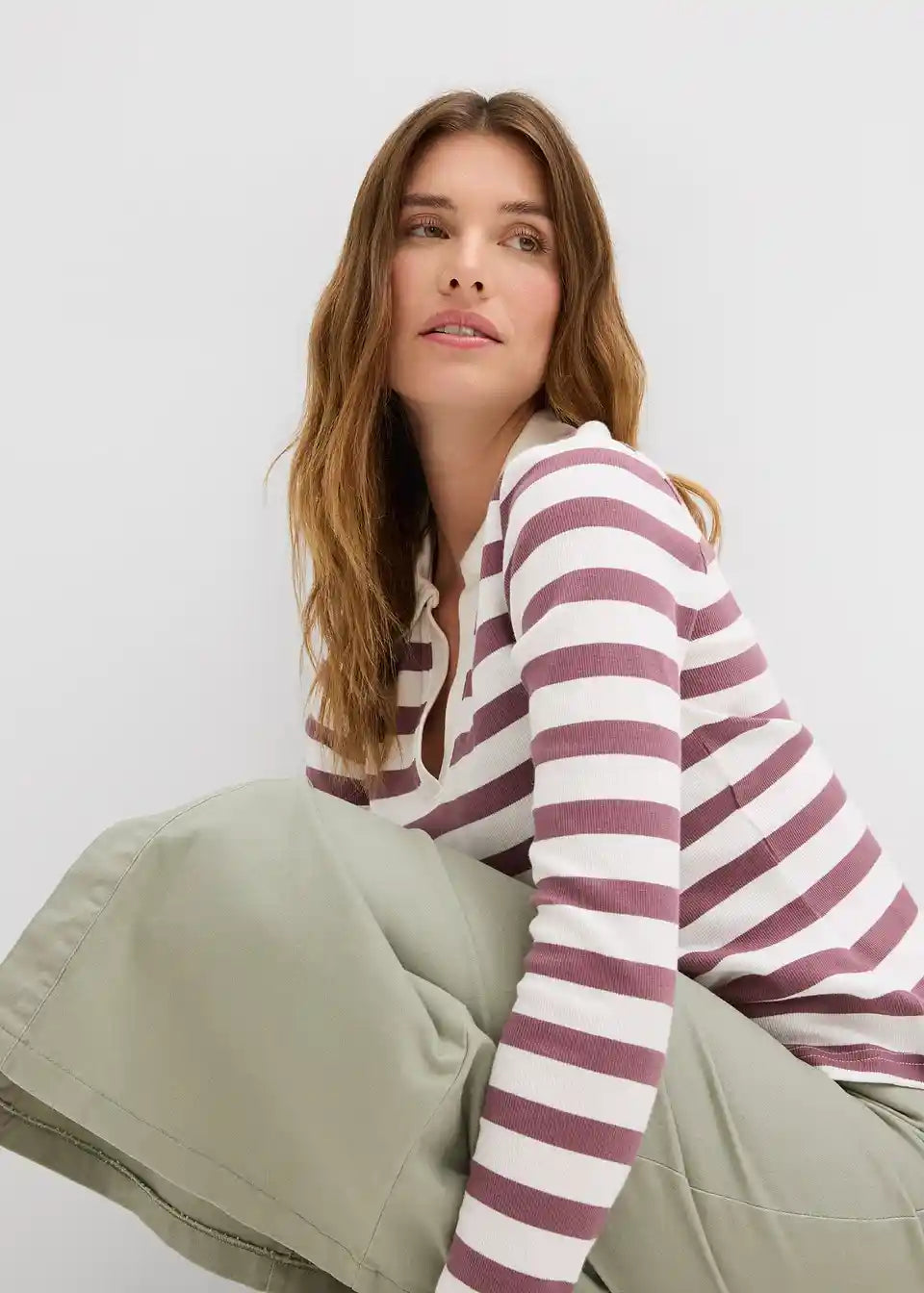 Polo majica z dolgimi rokavi iz rebrastega materiala
