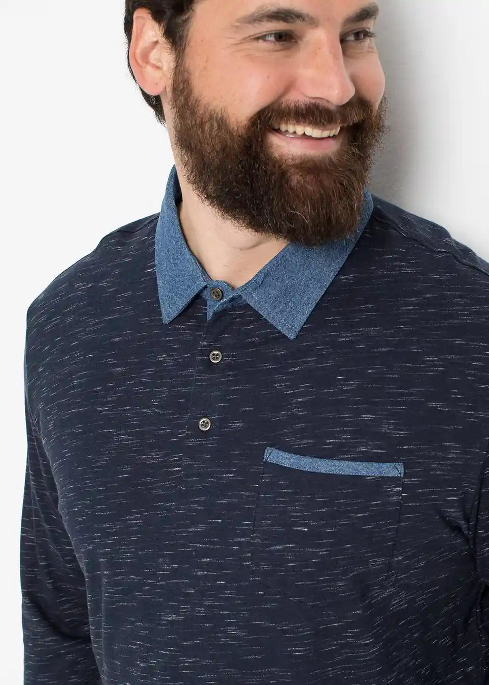 Polo majica s tkanim ovratnikom in dolgimi rokavi