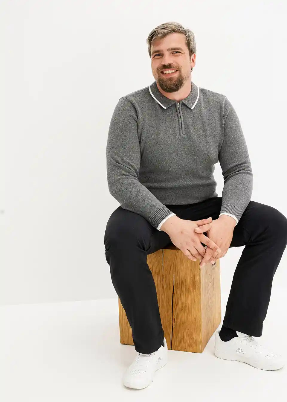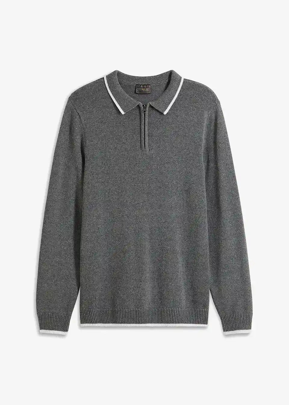 Moden pulover s polo ovratnikom in kontrastnimi detajli