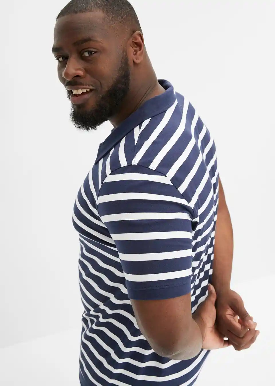 Odlična Poloshirt majica z rebrastimi robovi in majhno imitacijo usnjenega našitka