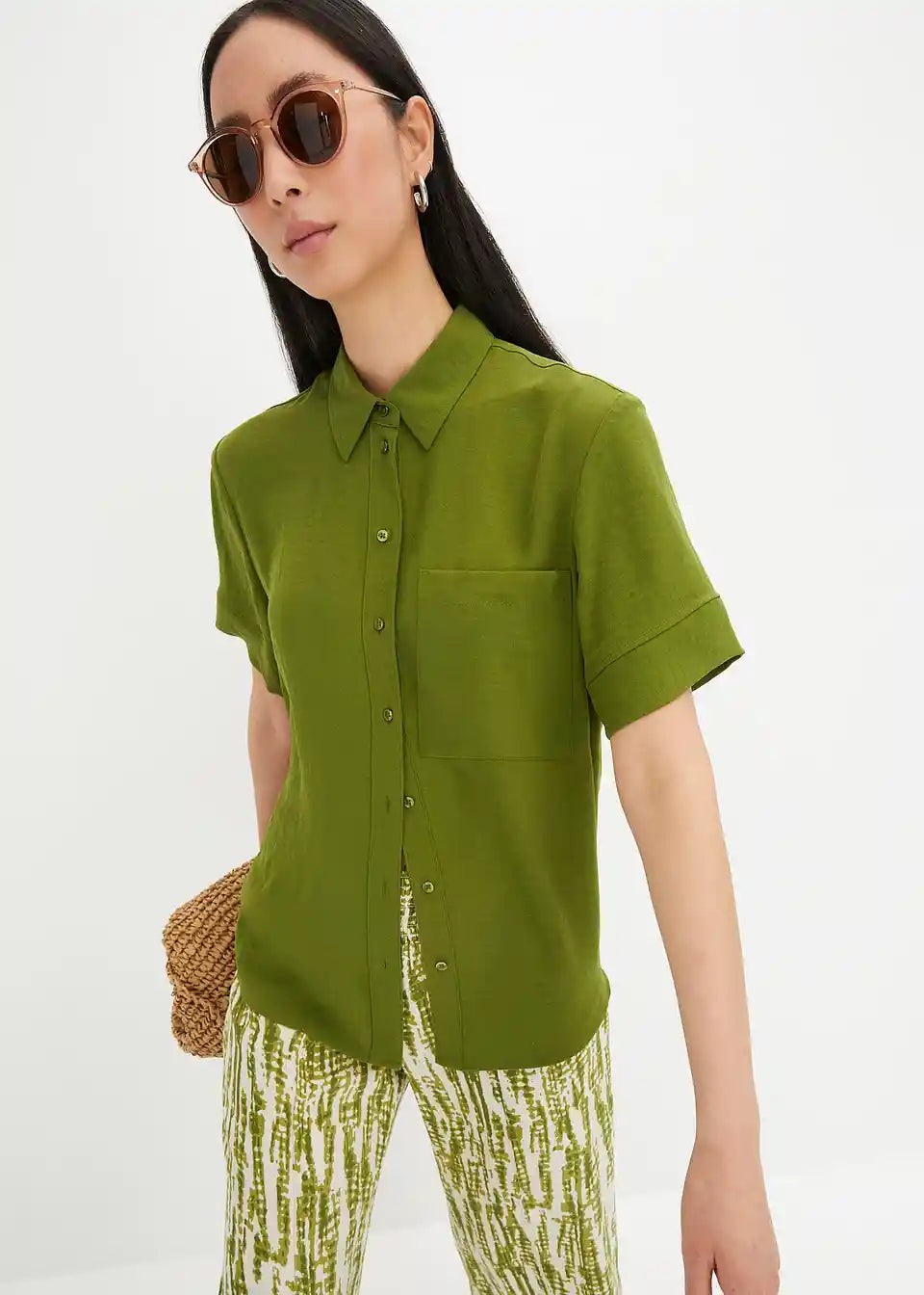 Bluza s kratkimi rokavi z naprsnim žepom