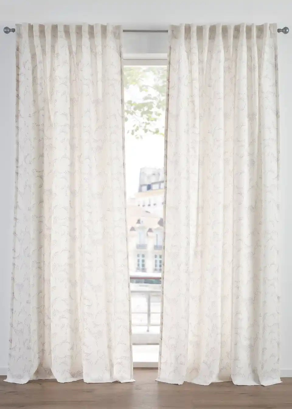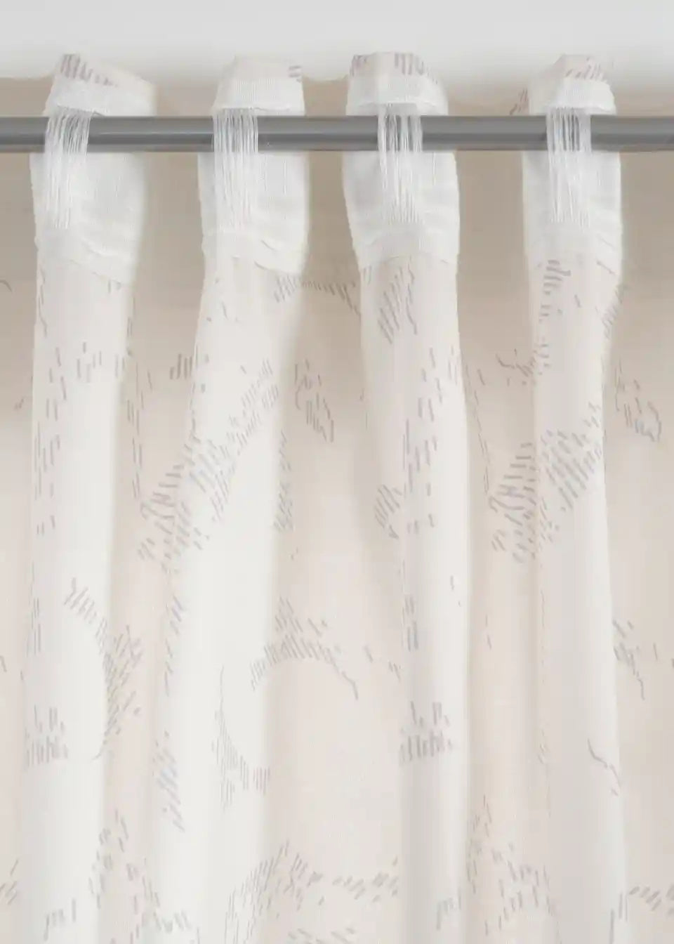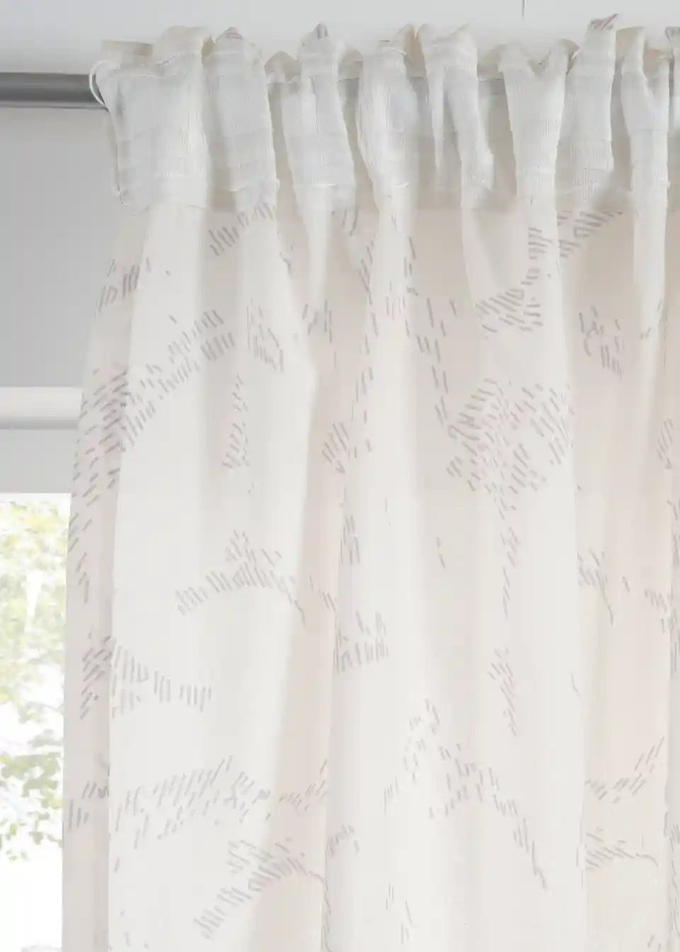 Ta diskretno vzorčasta zavesa Ti ponuja svež in sodoben videz za Tvoja okna. Je polprozorna in na voljo tudi v podaljšani dolžini.
