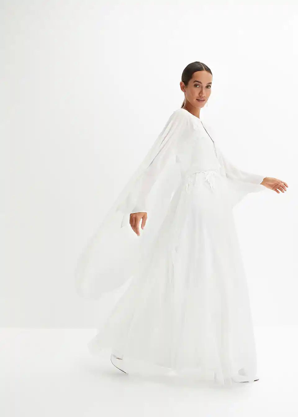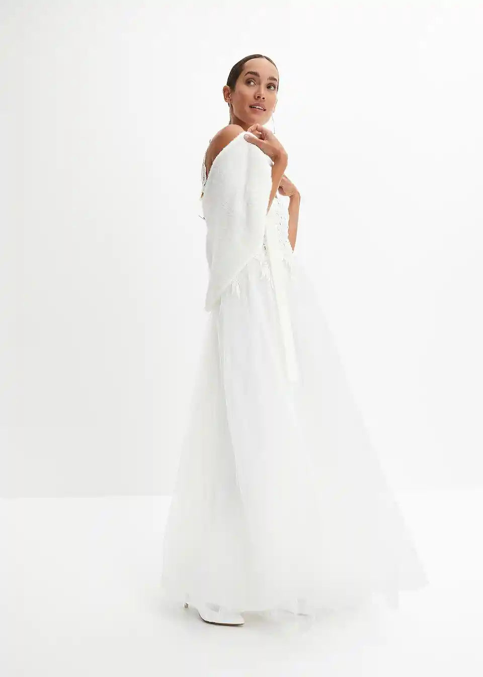 Romantična poročna obleka z lepo čipko in šifonsko krilo. za poseben dan