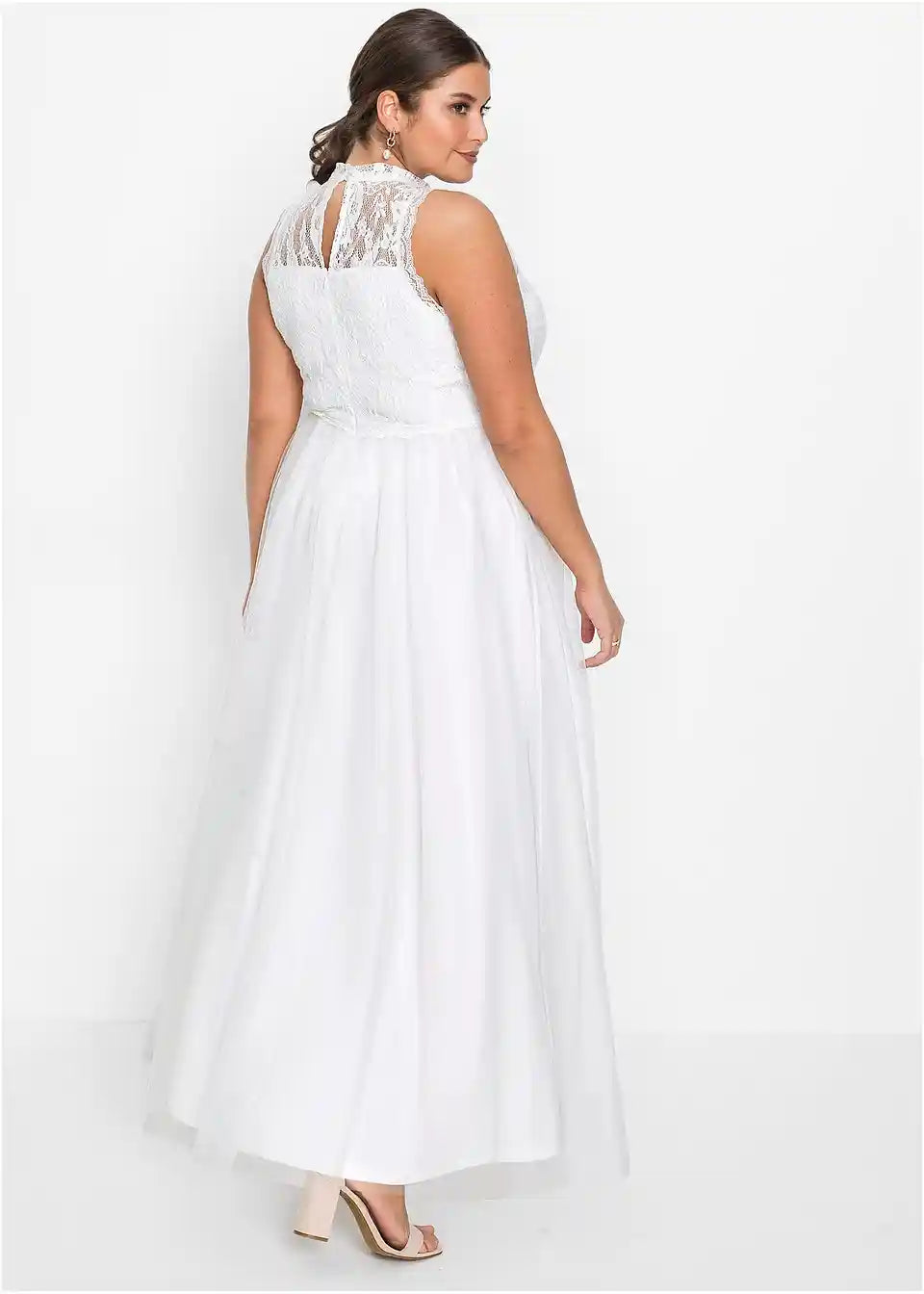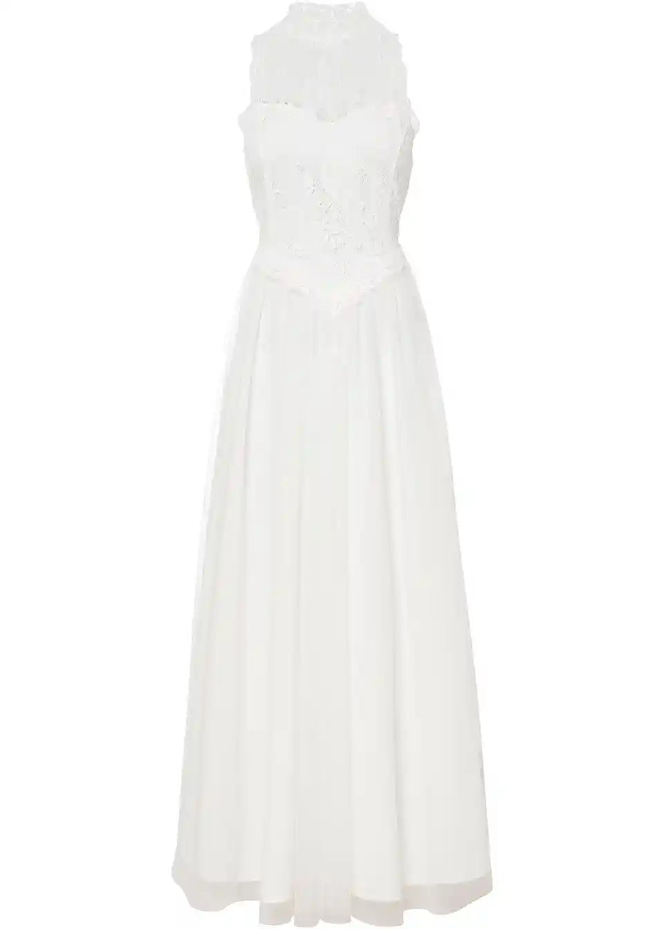 Romantična poročna obleka s stoječim ovratnikom in korzetnim videzom
