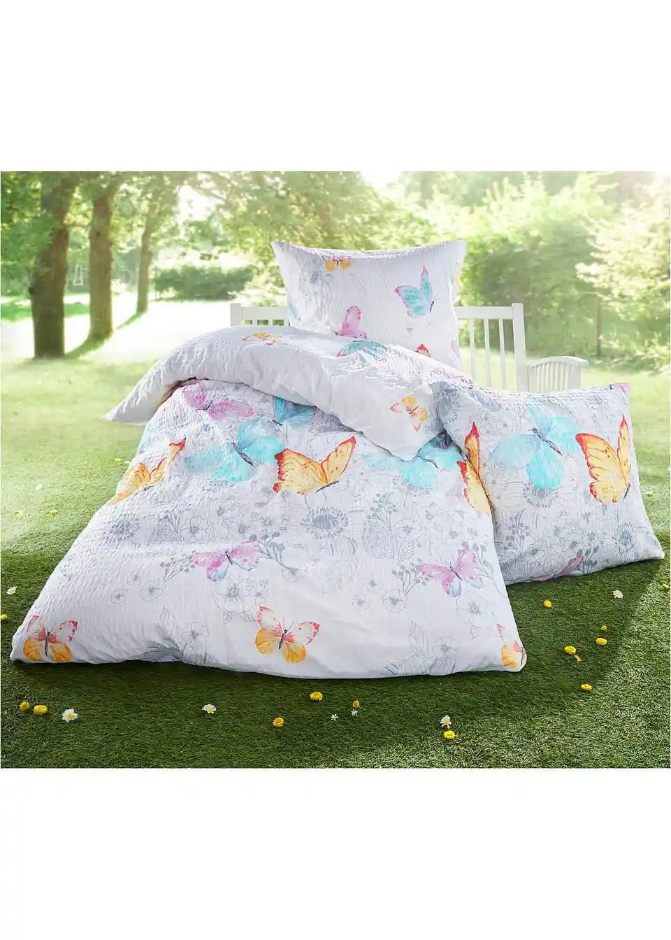 Posteljnina v pastelnih barvah s metulji