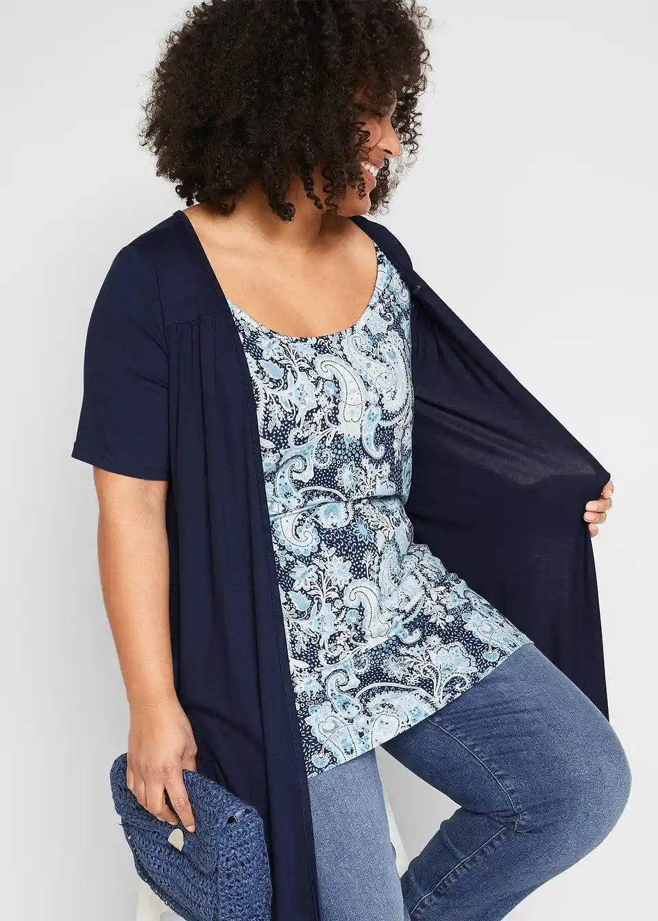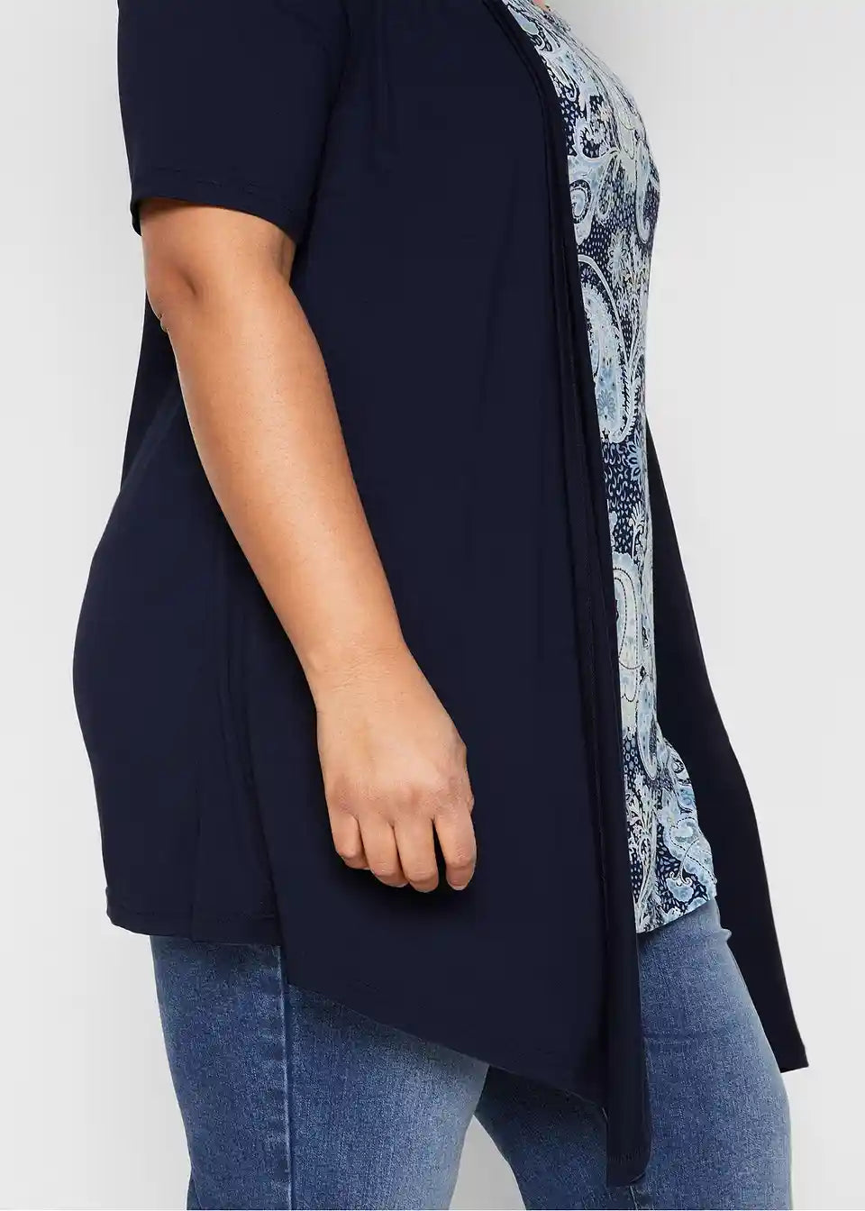 Prefinjena 2v1 Majica s čudovitim potiskom in okroglim izrezom, kratki rokavi