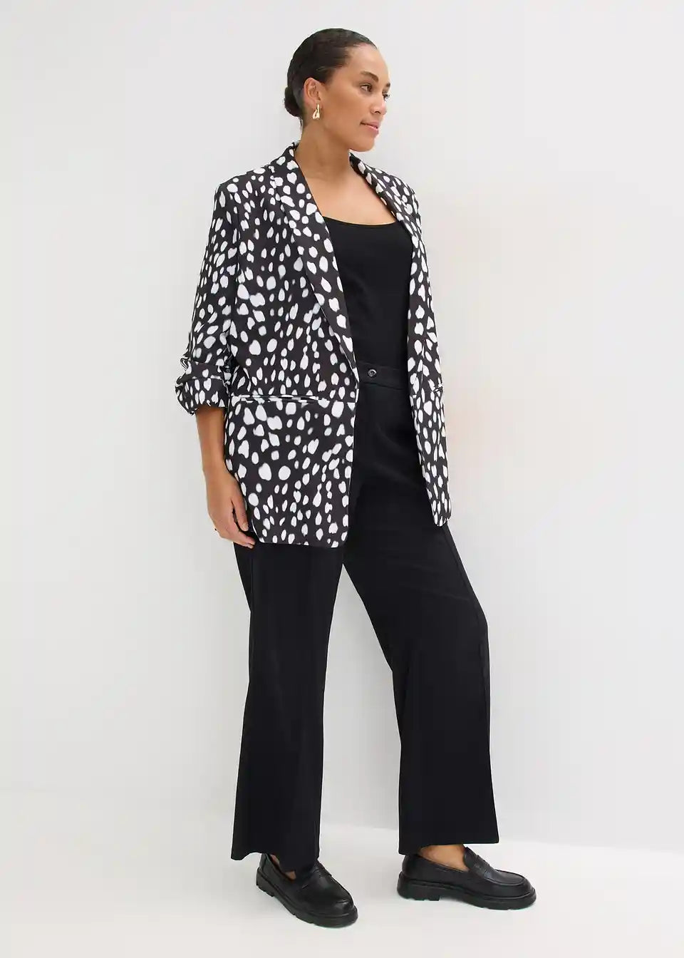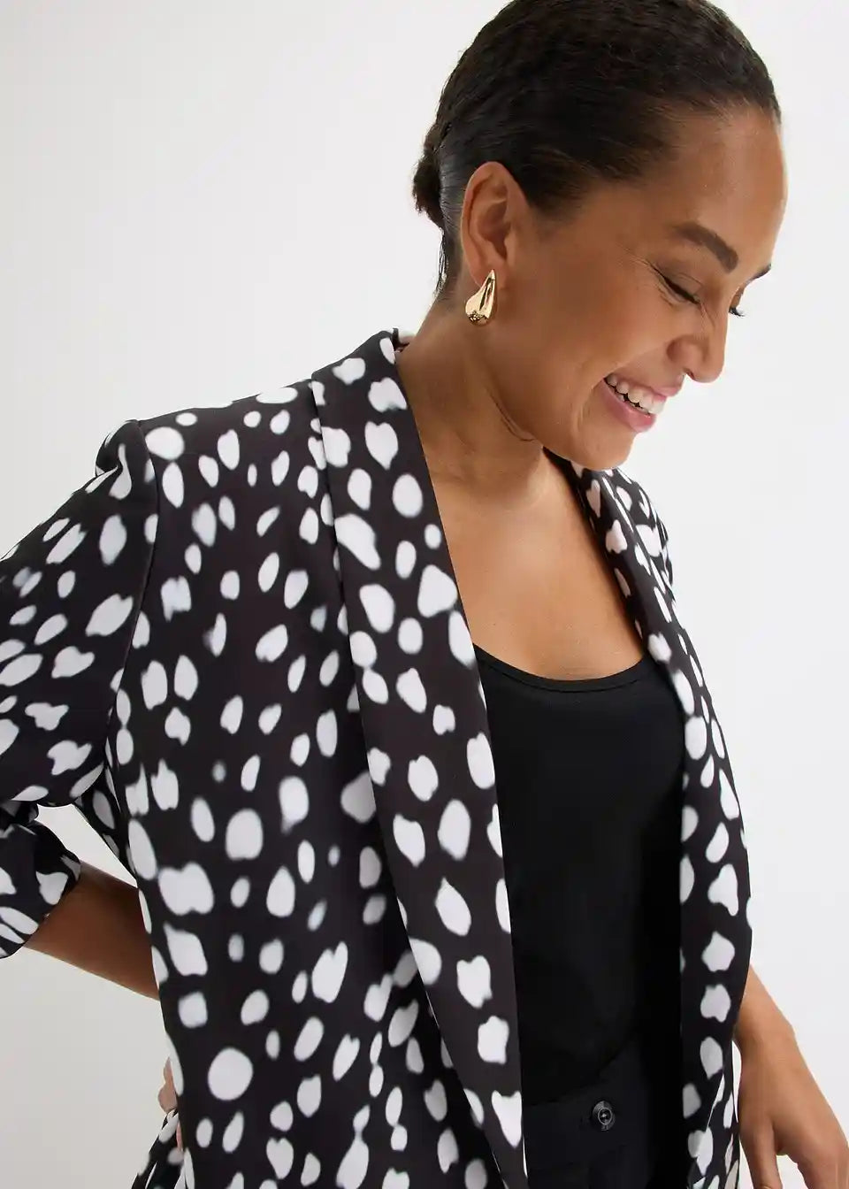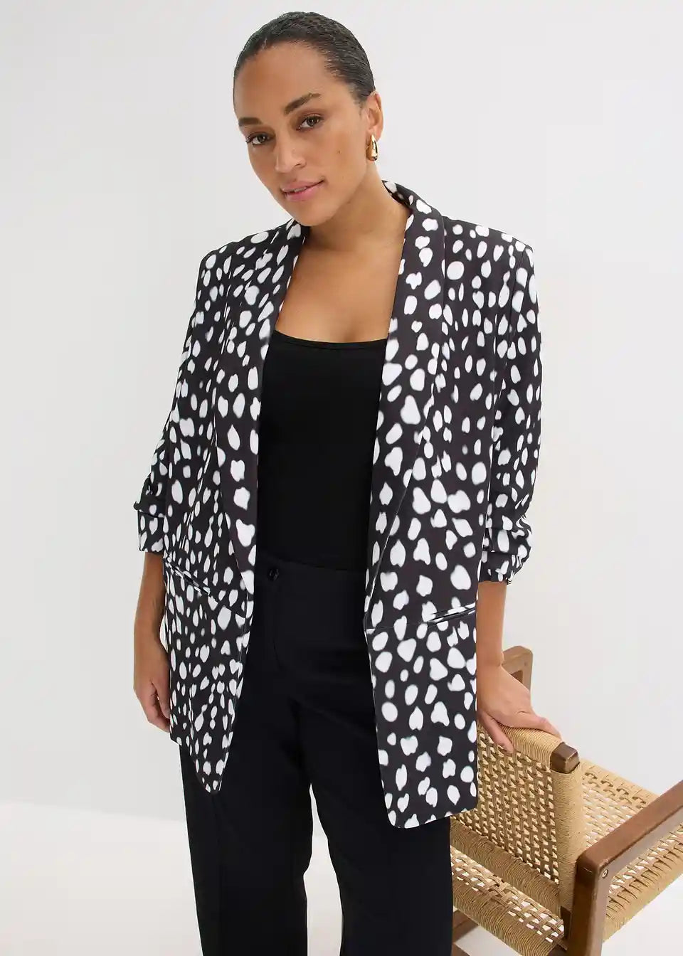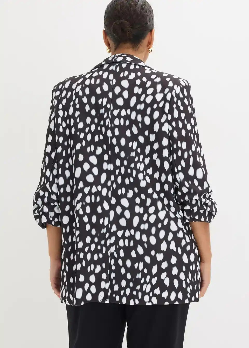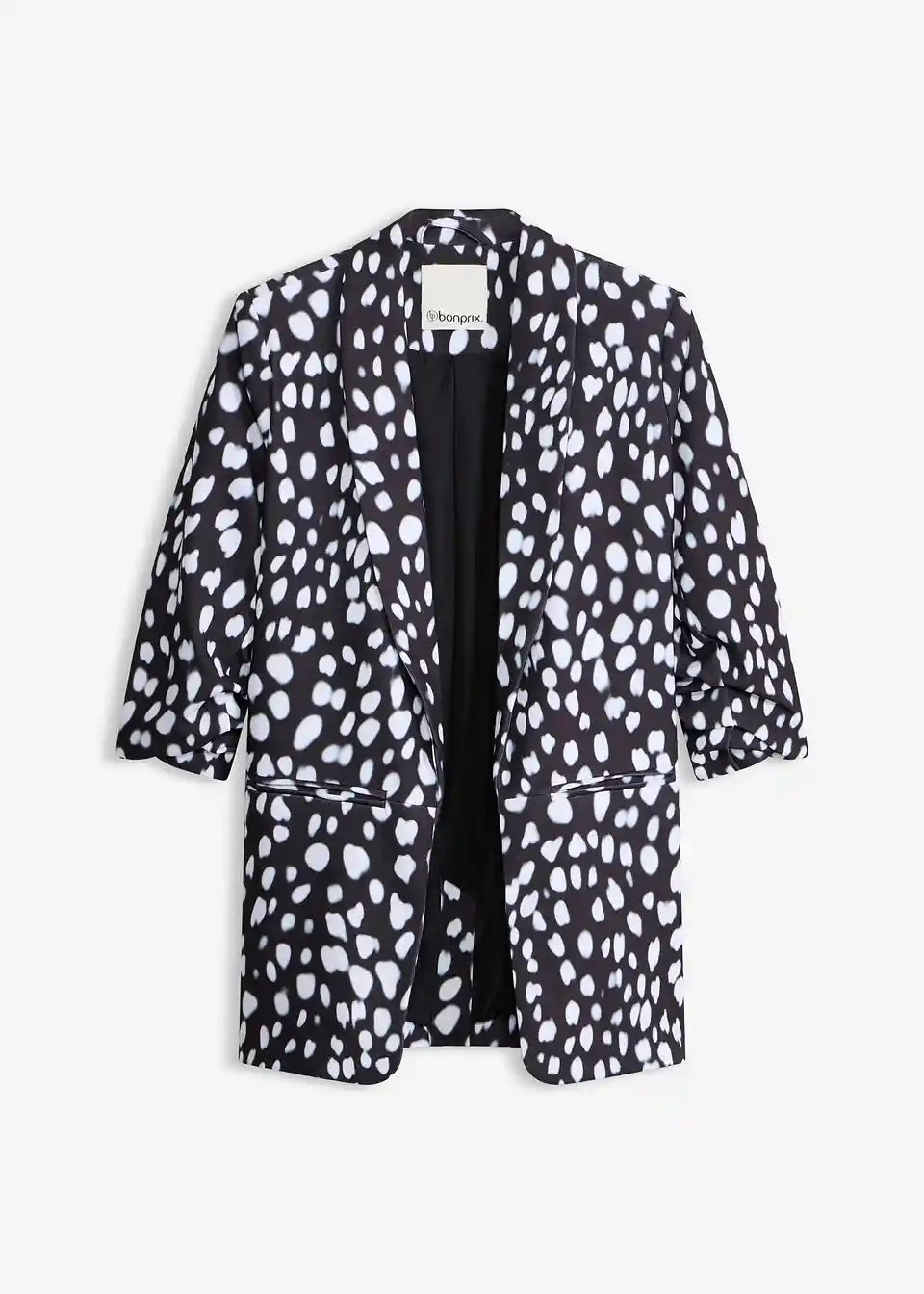 Z grafičnim vzorcem potiskan dolg blazer z nabranimi 3/4-rokavi