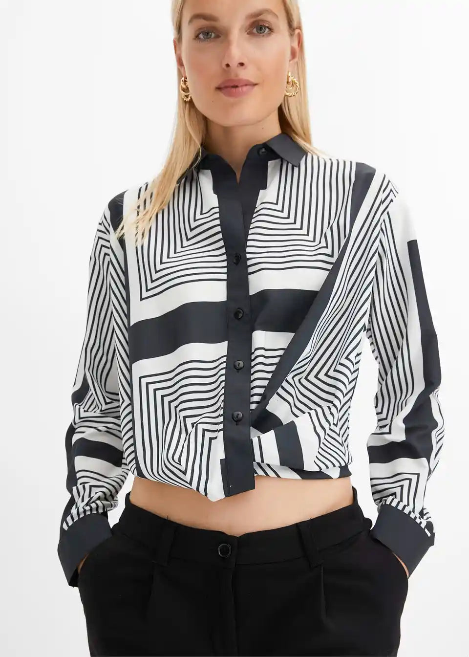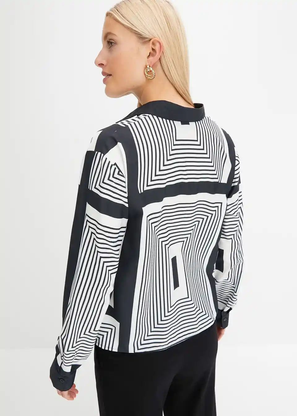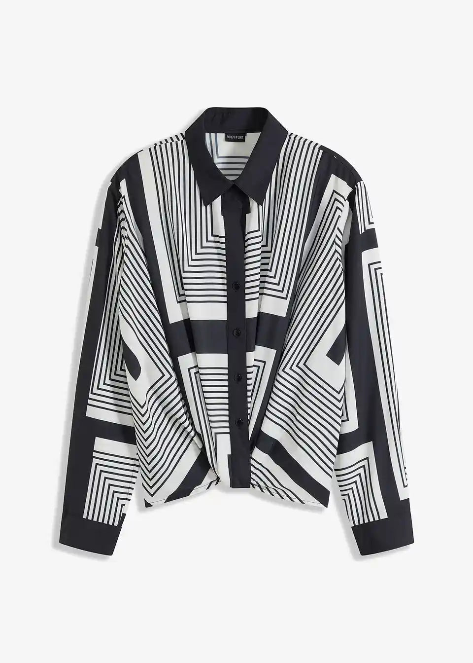 moderno potiskana bluza z drapiranjem spredaj na spodnjem robu
