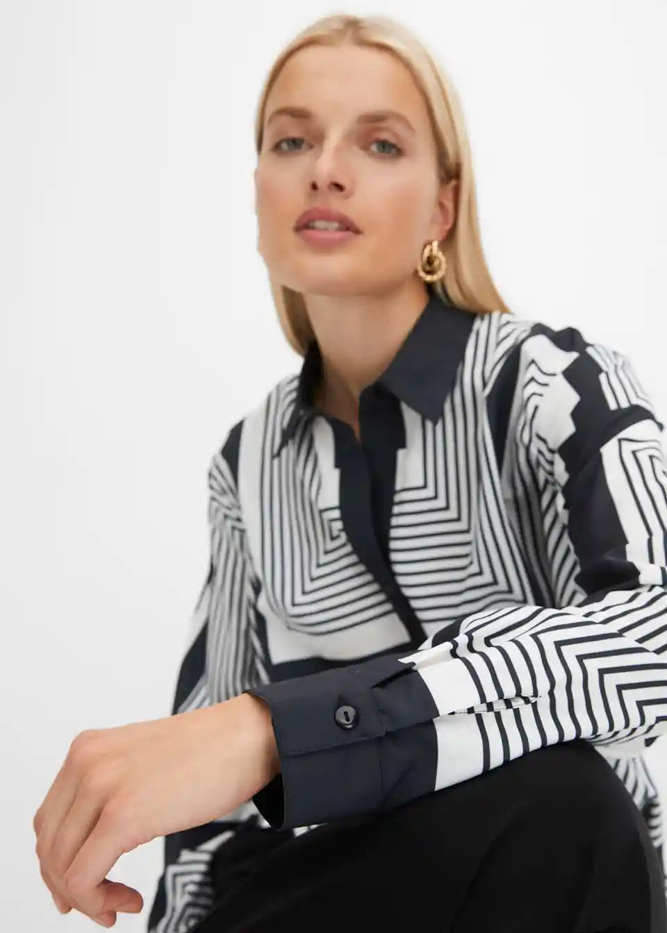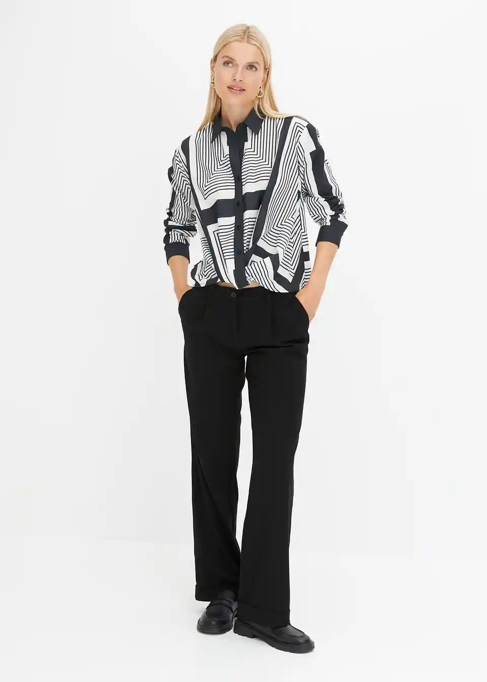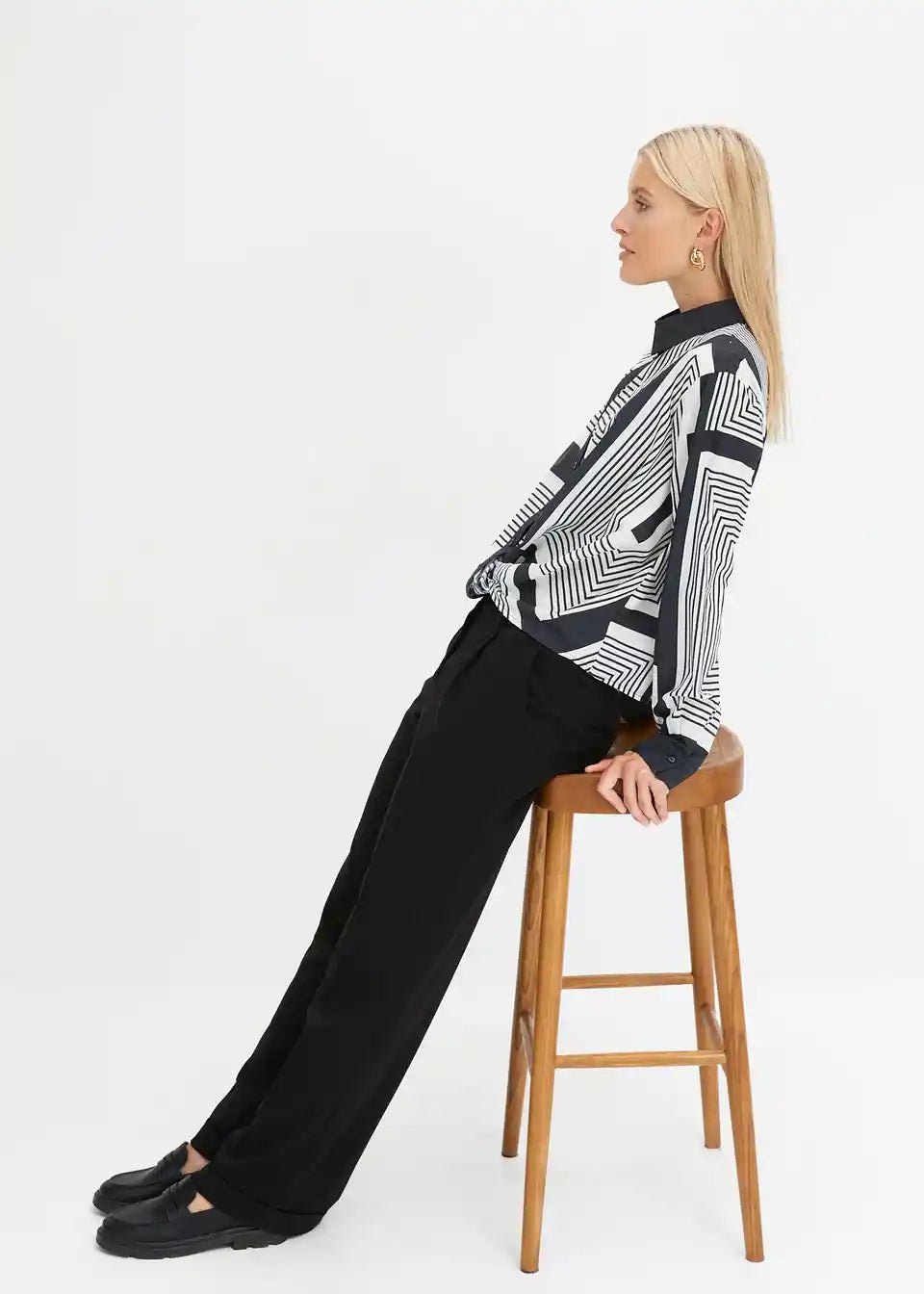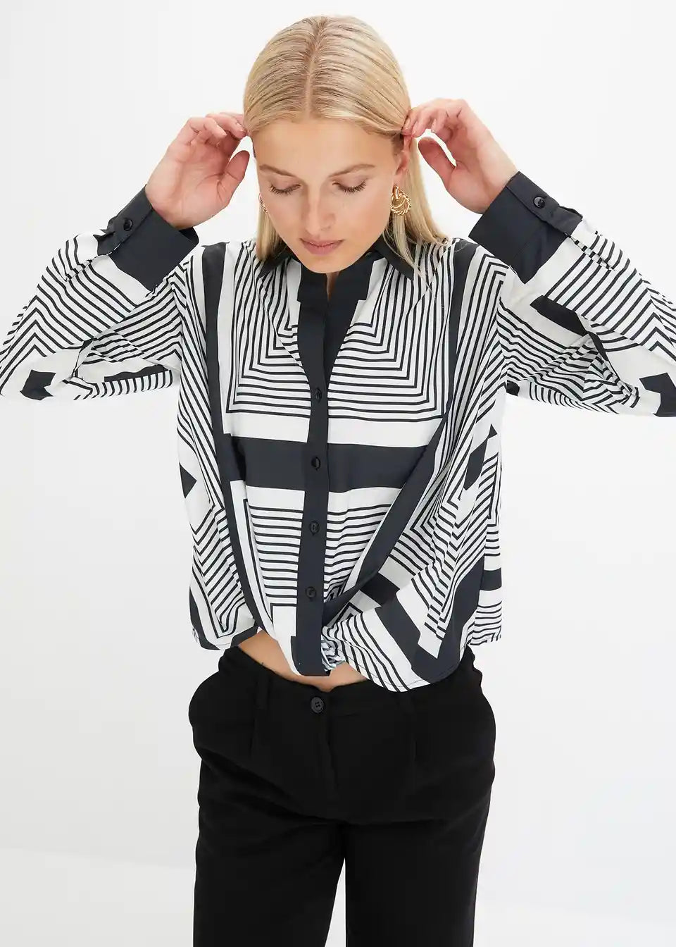 moderno potiskana bluza z drapiranjem spredaj na spodnjem robu