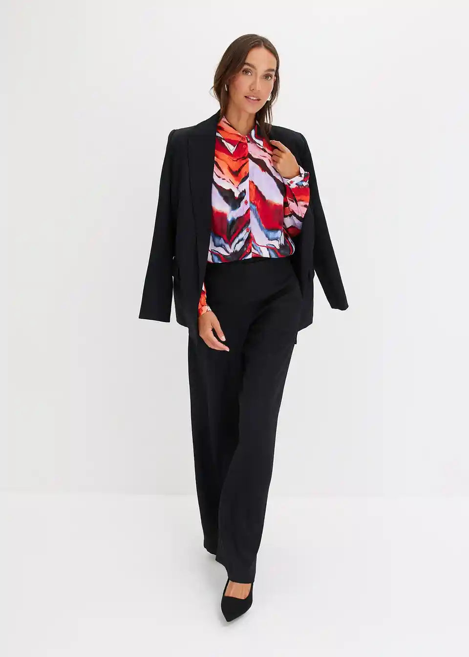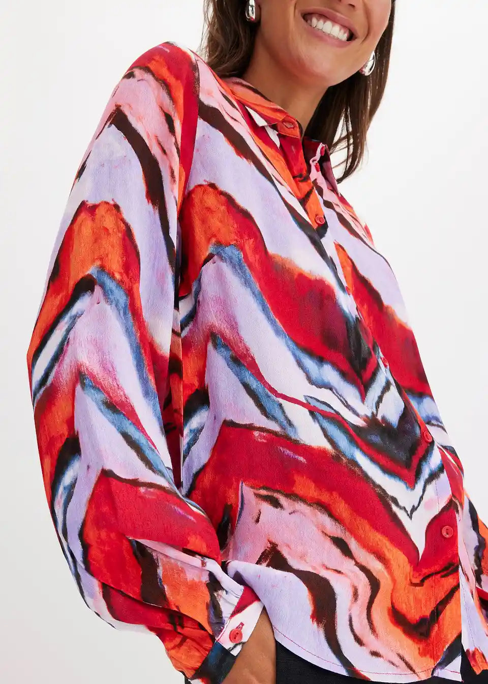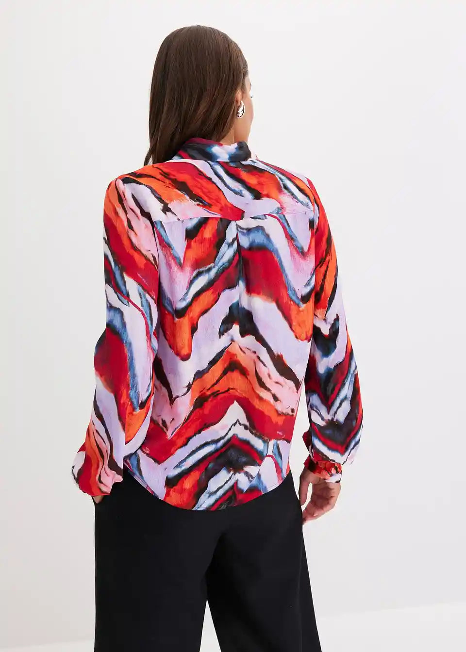 moderna bluza s sprednjo vrstico gumbov in rahlo voluminoznimi rokavi