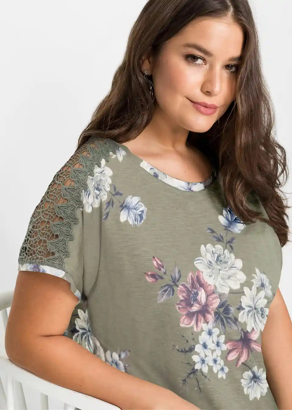 Moderna majica znamke BODYFLIRT. Majica je okrašena s čipko na ramenih. Dolžina pri št. 36/38 pribl. 64 cm.