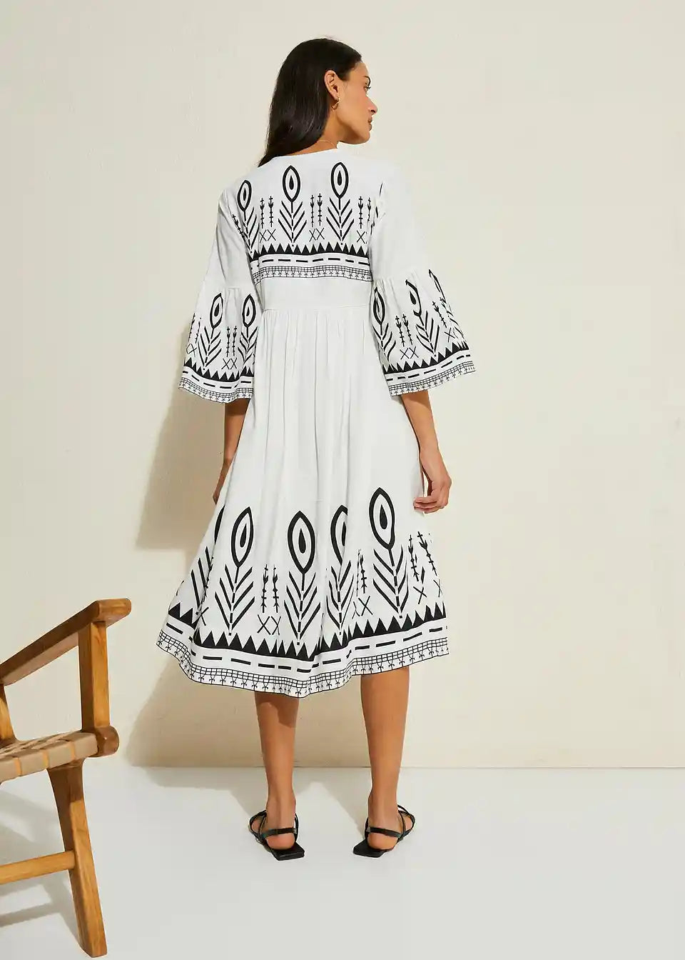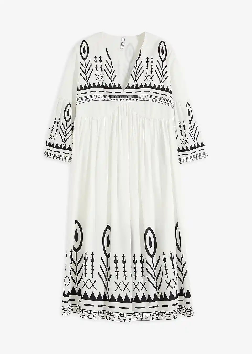 Široko nihajoča obleka s kontrastnim ikat-potiskom