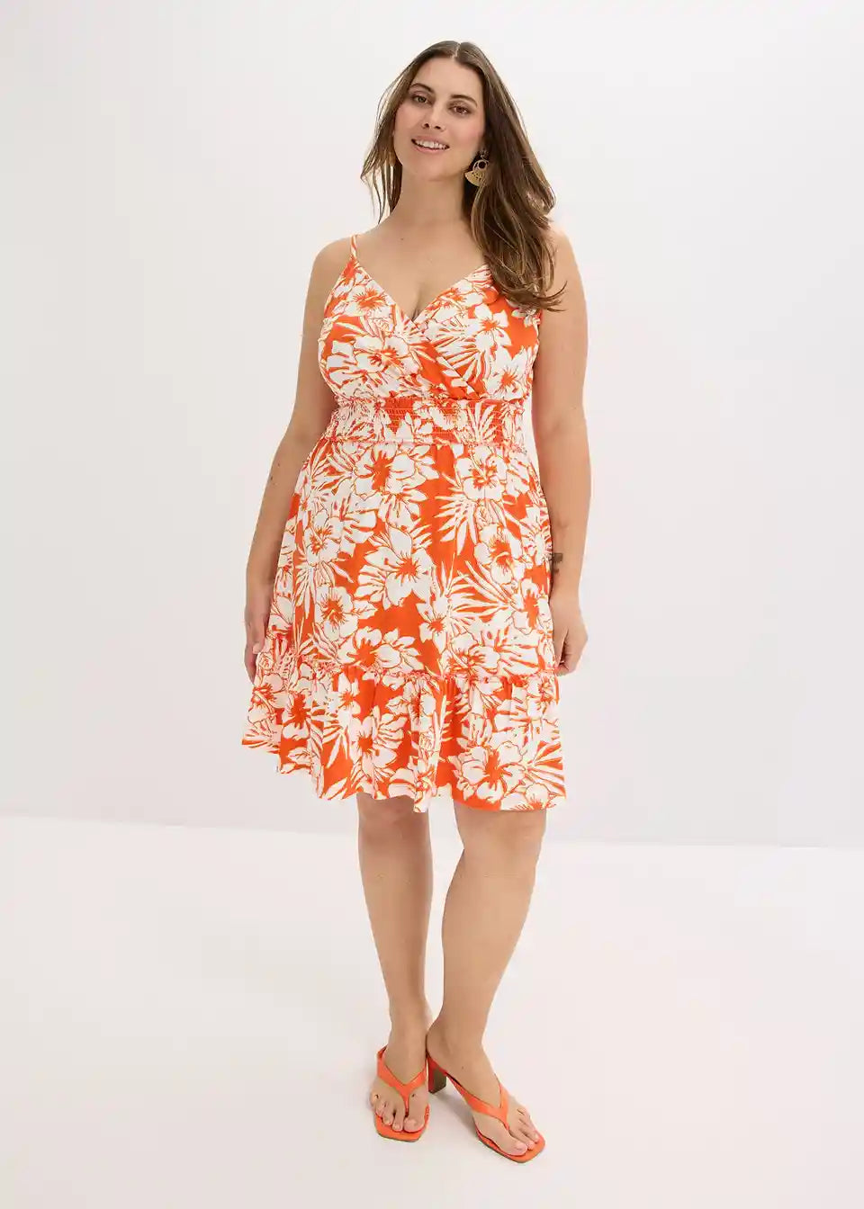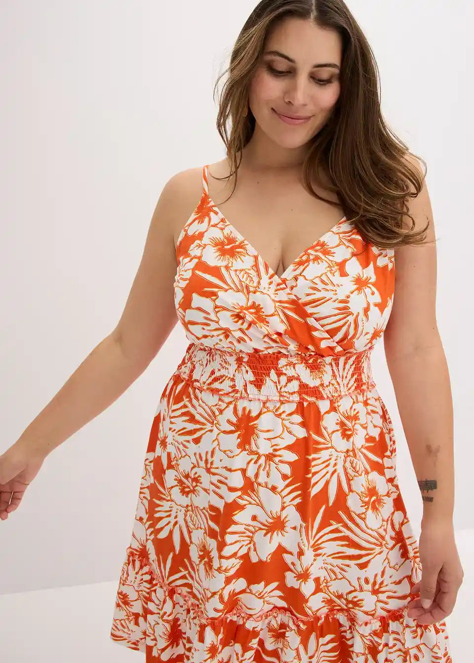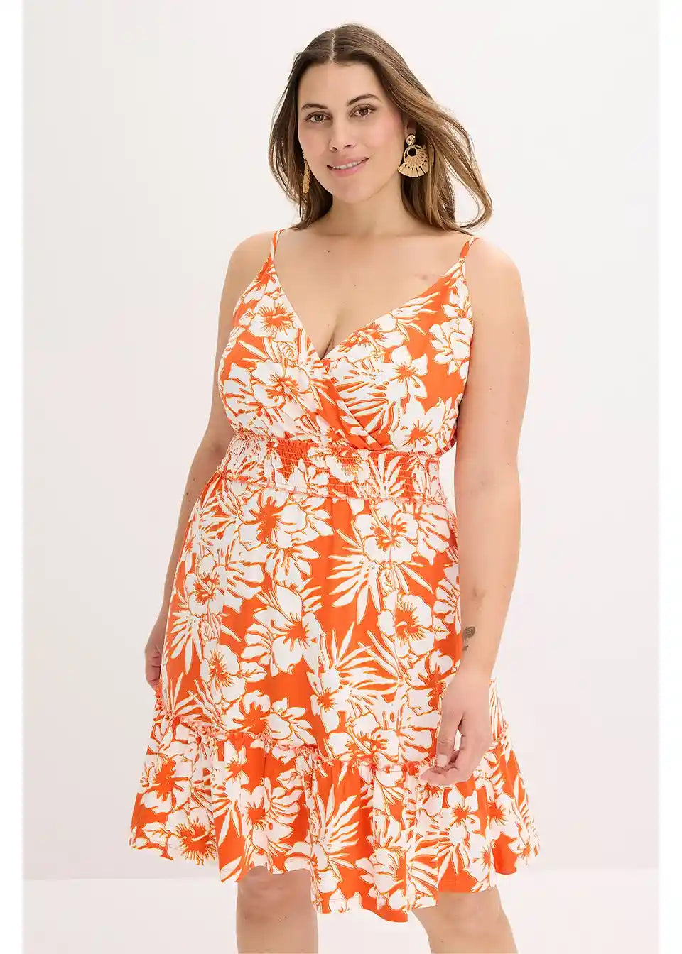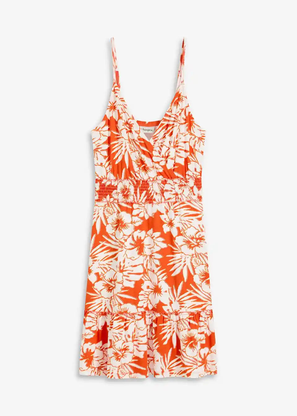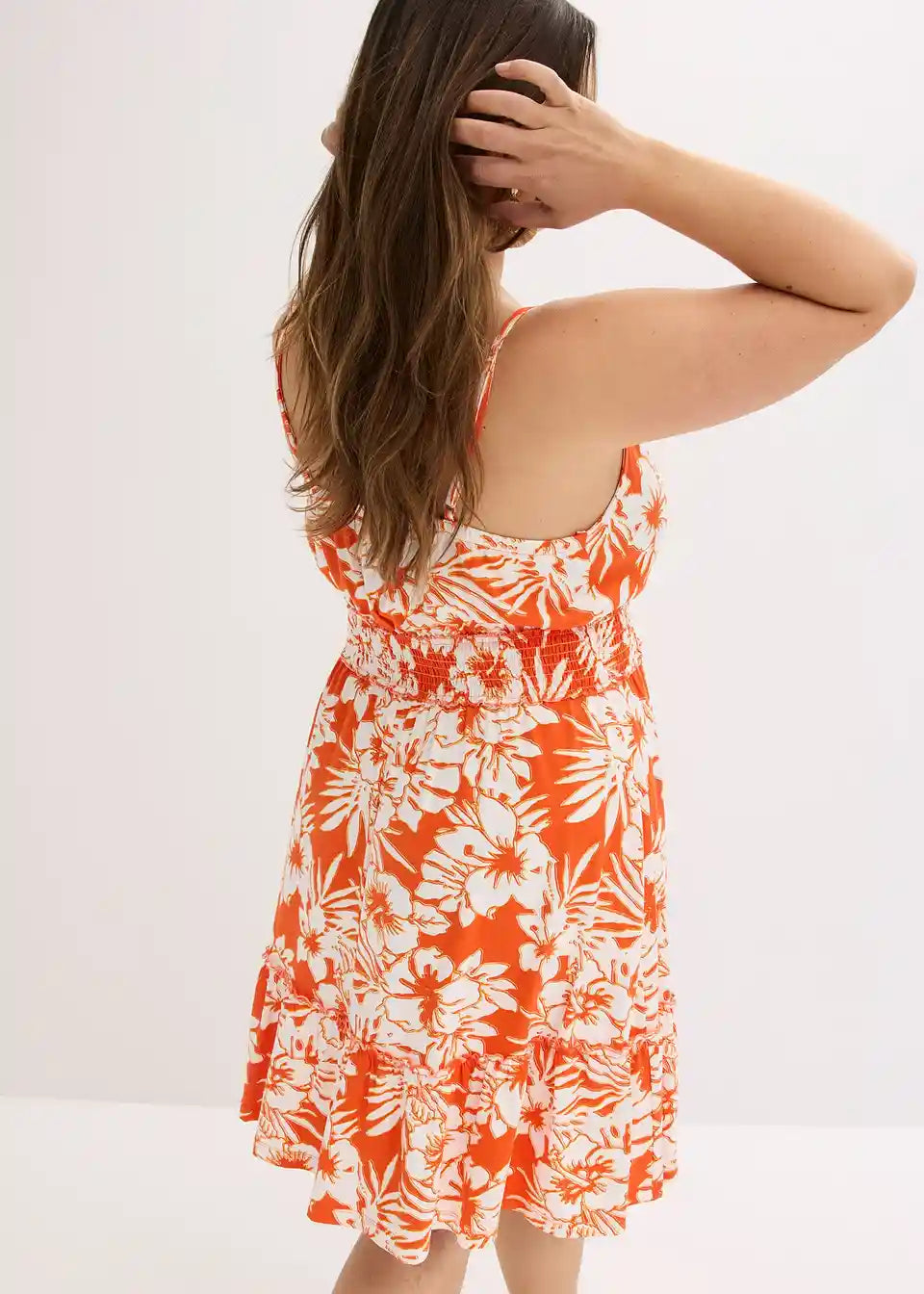 Potiskana obleka z naramnicami iz mehke viskozne mešanice