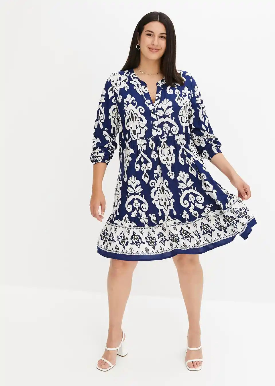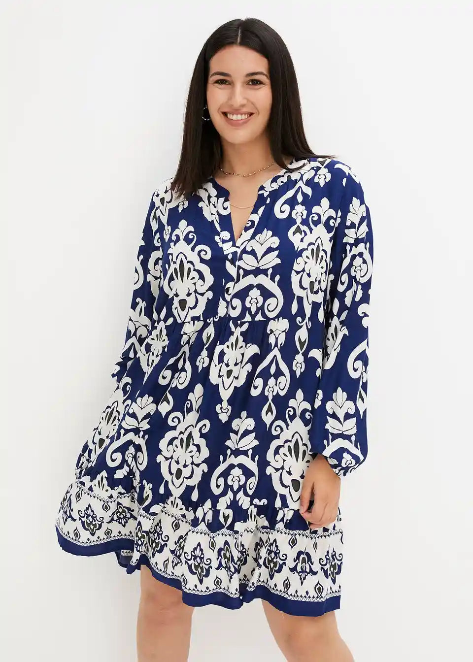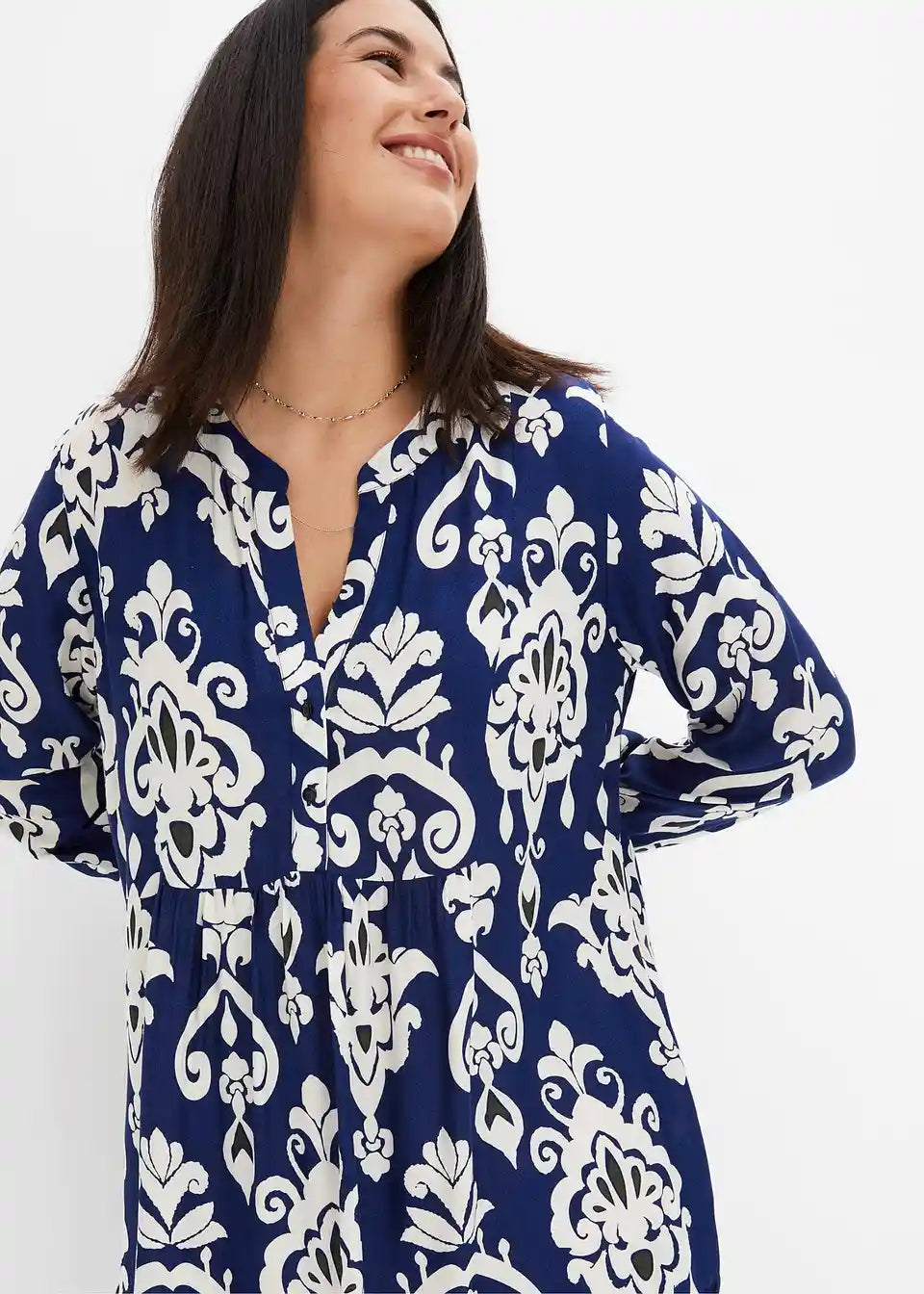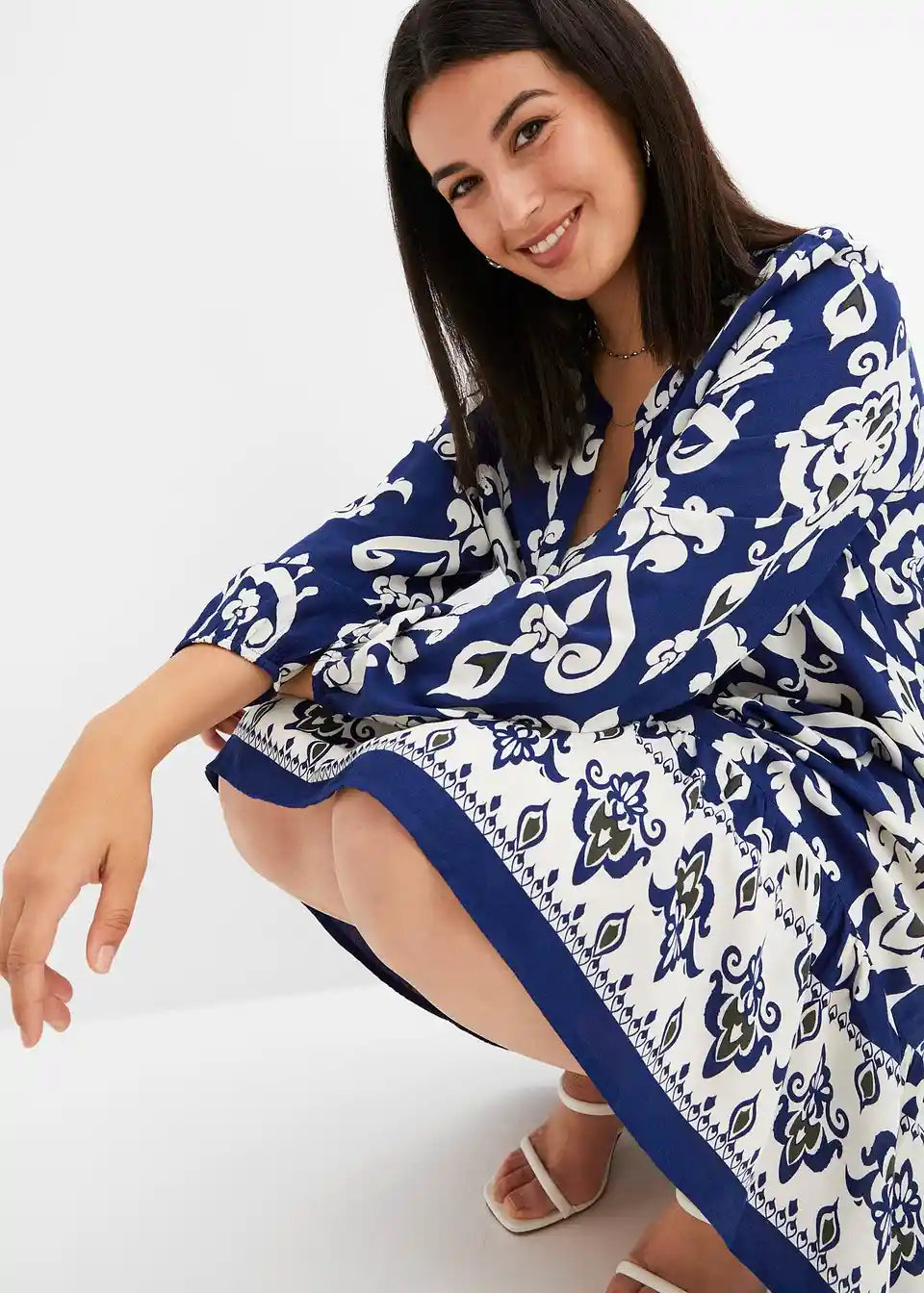 Potiskana tunika obleka iz trajnostne viskoze s čudovitim vzorcem