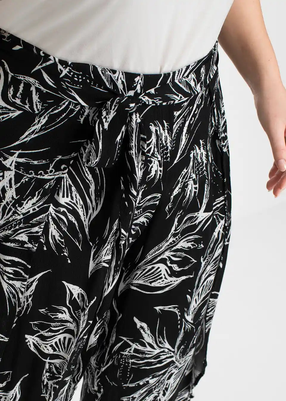 Moderne hlače z zavezovalnim pasom in lepim potiskom