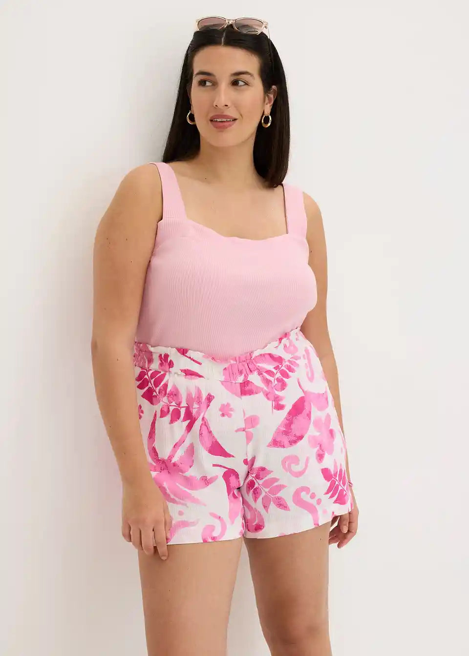 cvetlično potiskane kratke hlače iz strukturirane viskoze