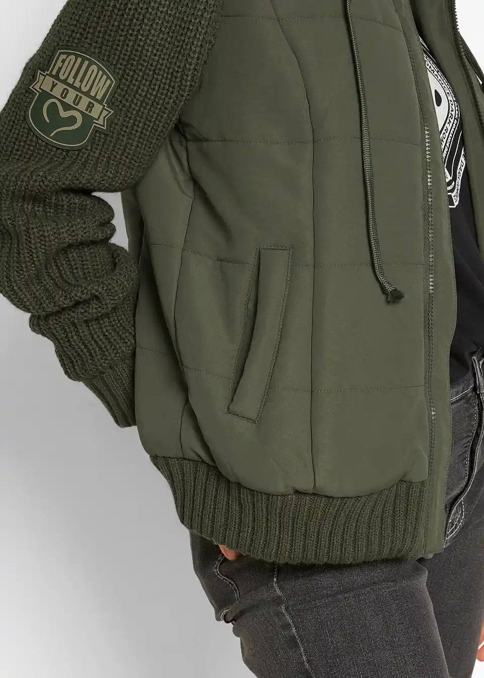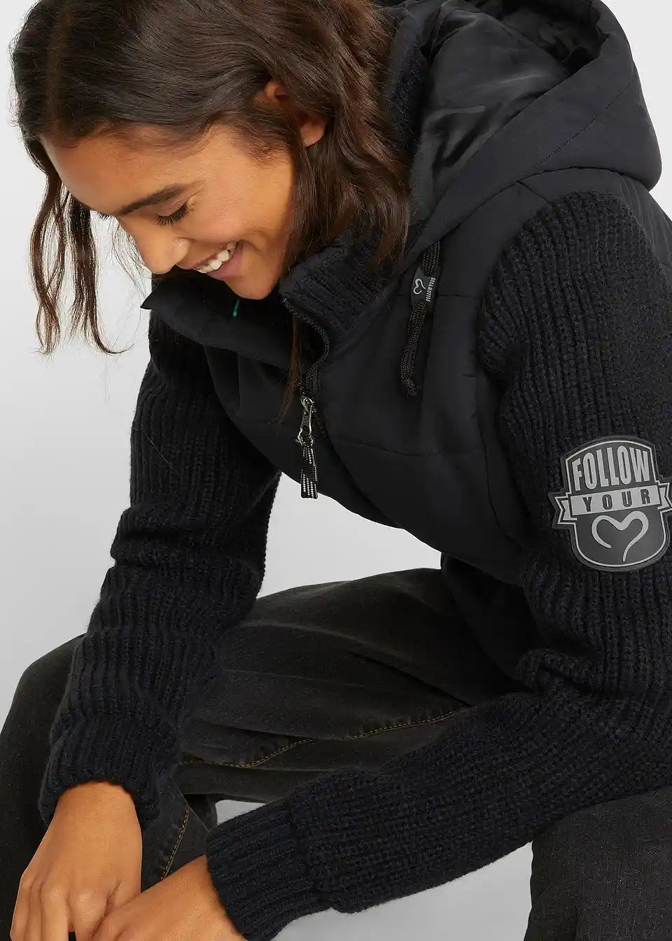 Prehodna jakna s pletenimi rokavi in kapuco
