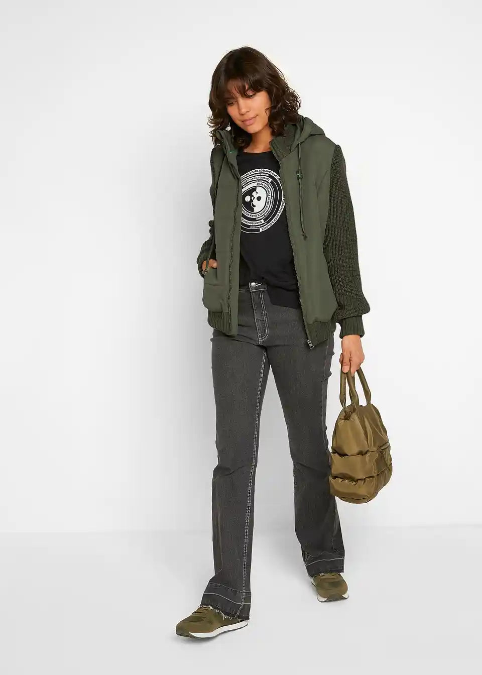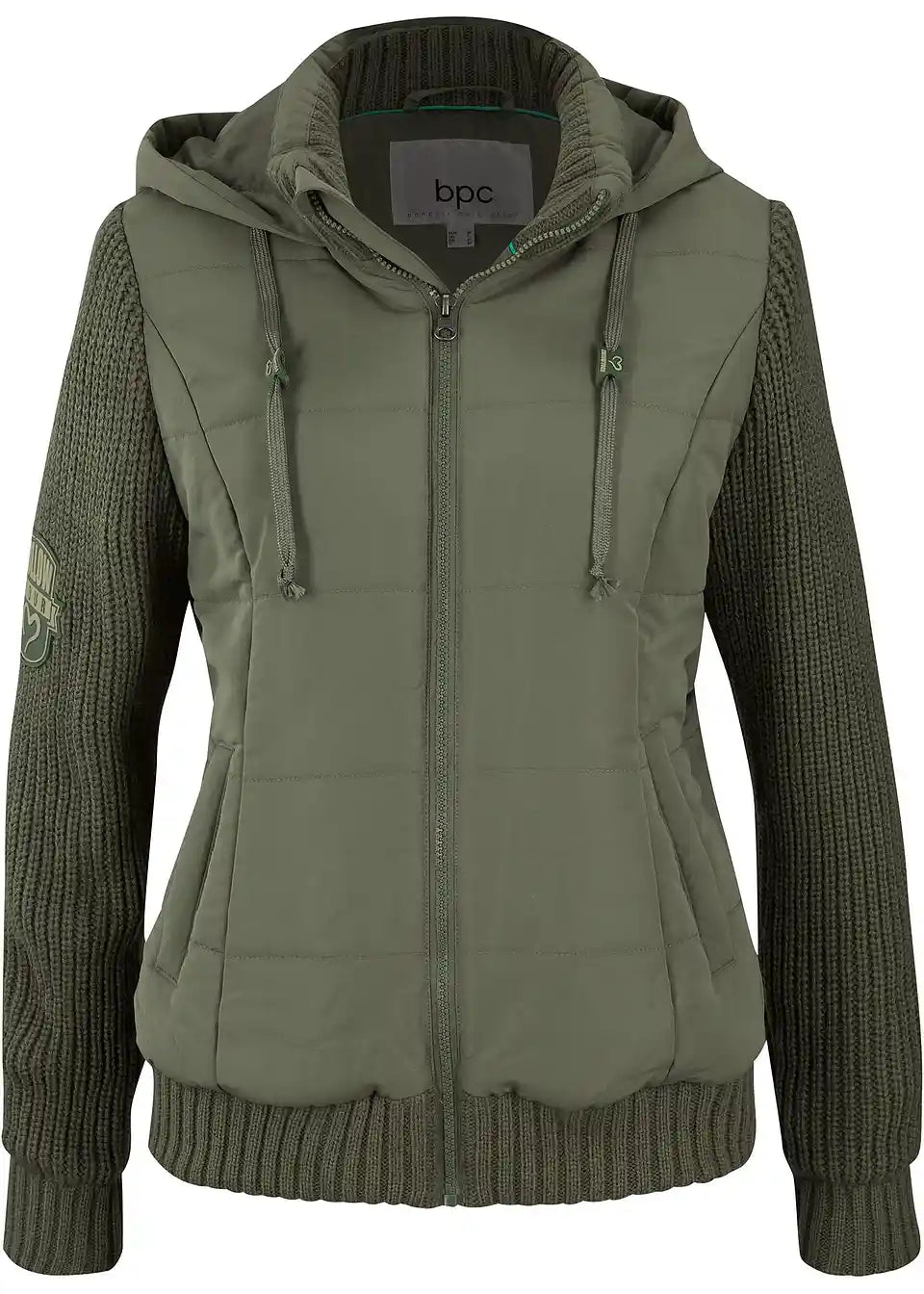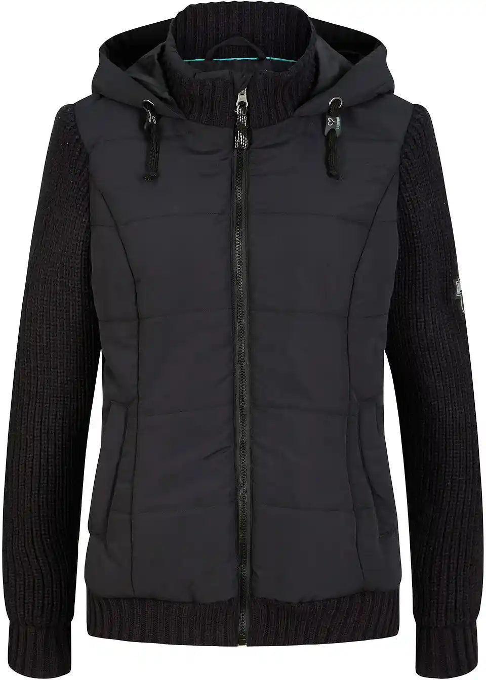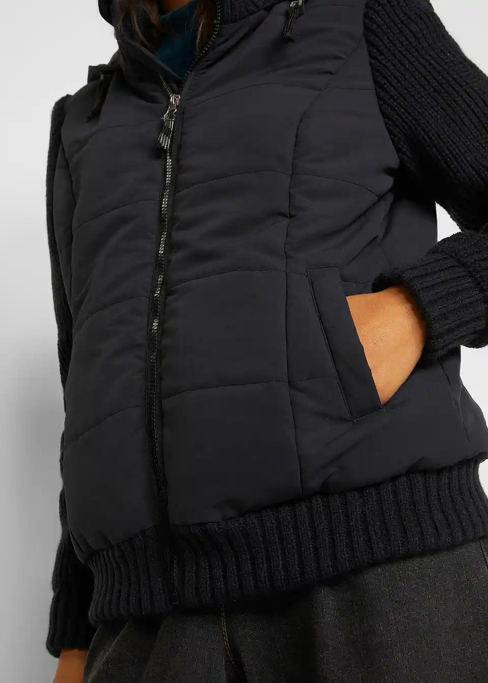 Jakna v videzu telovnika s pletenimi rokavi in kapuco