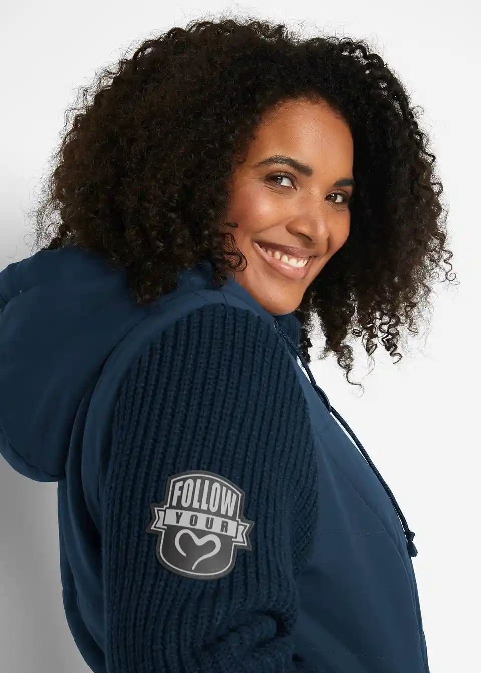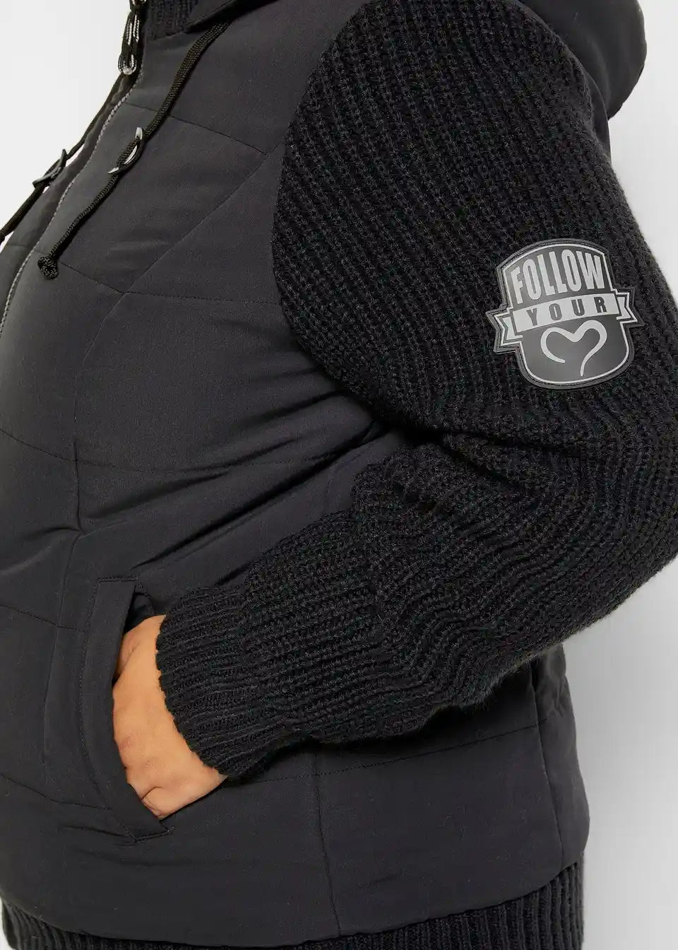 Jakna v videzu brezrokavnika s pletenimi rokavi in kapuco