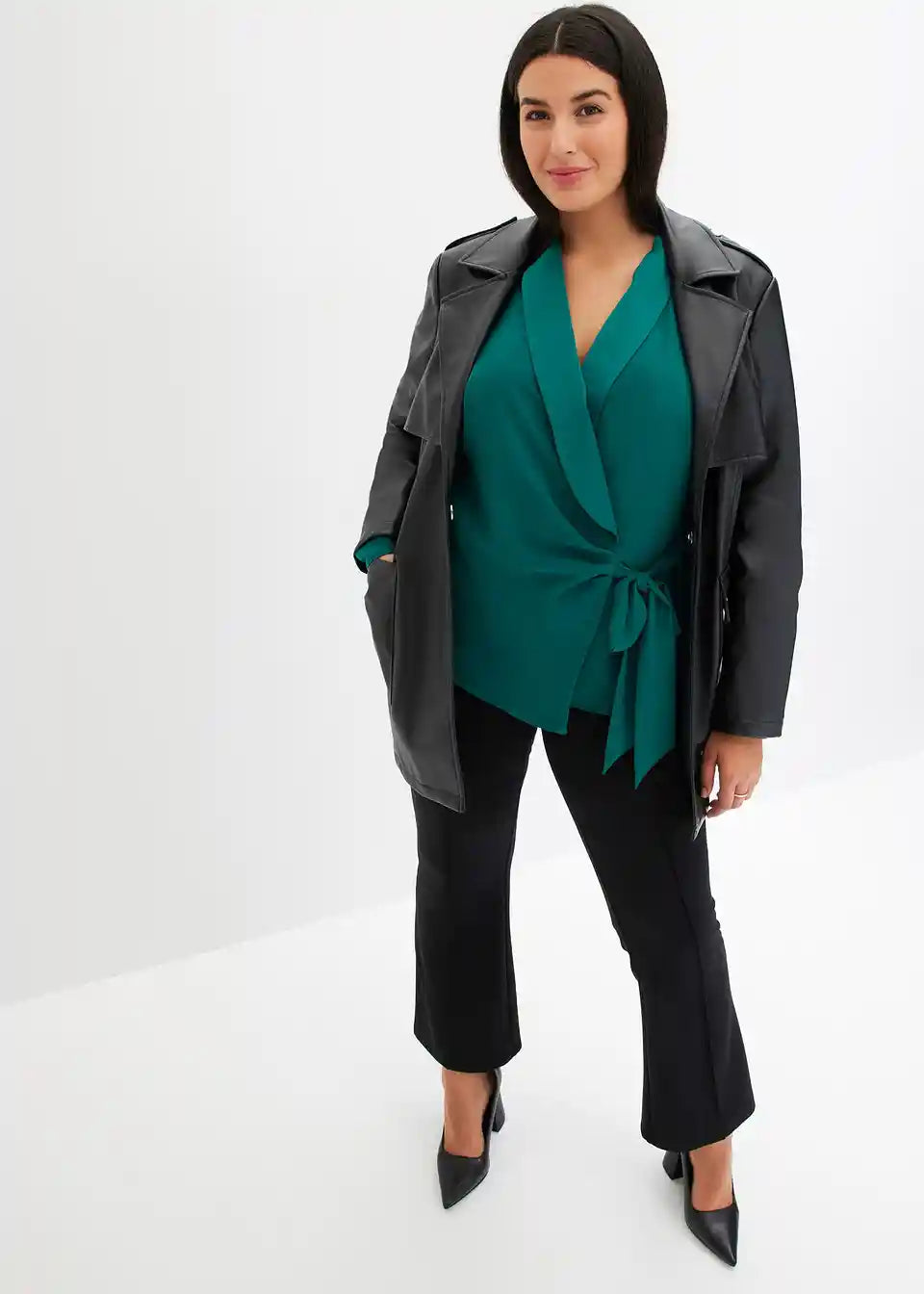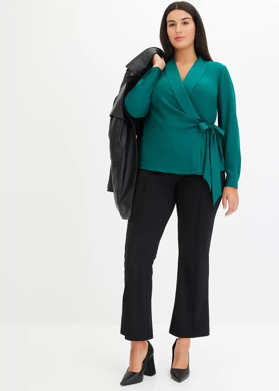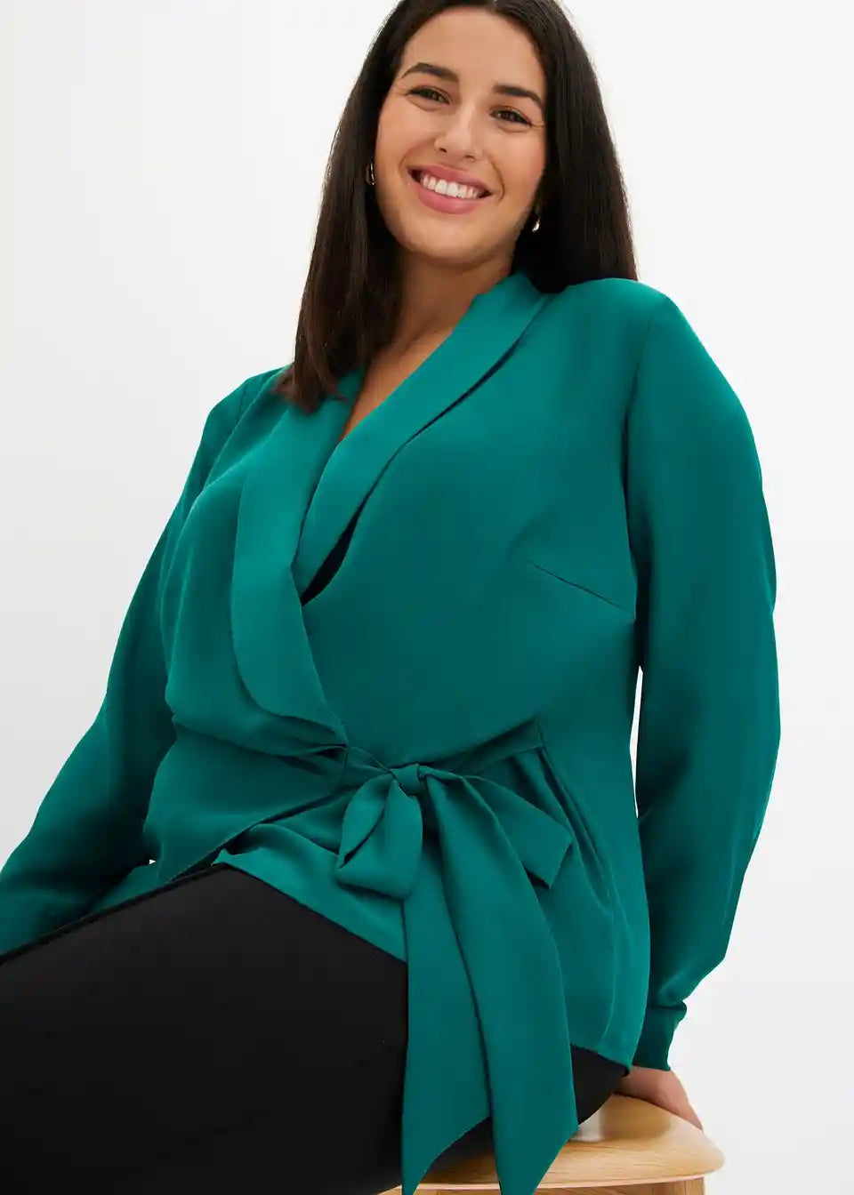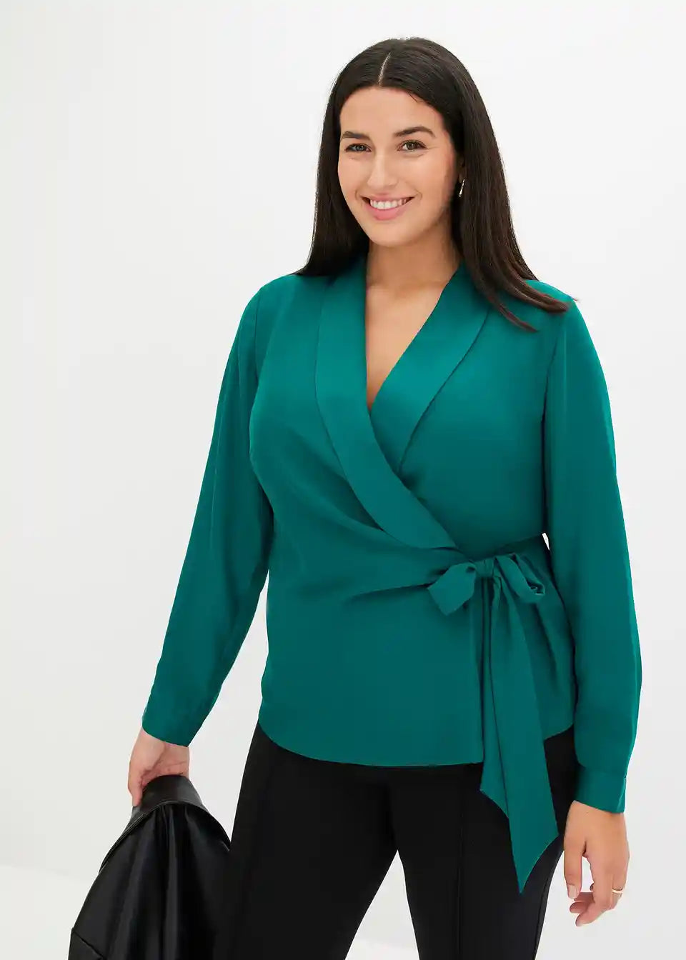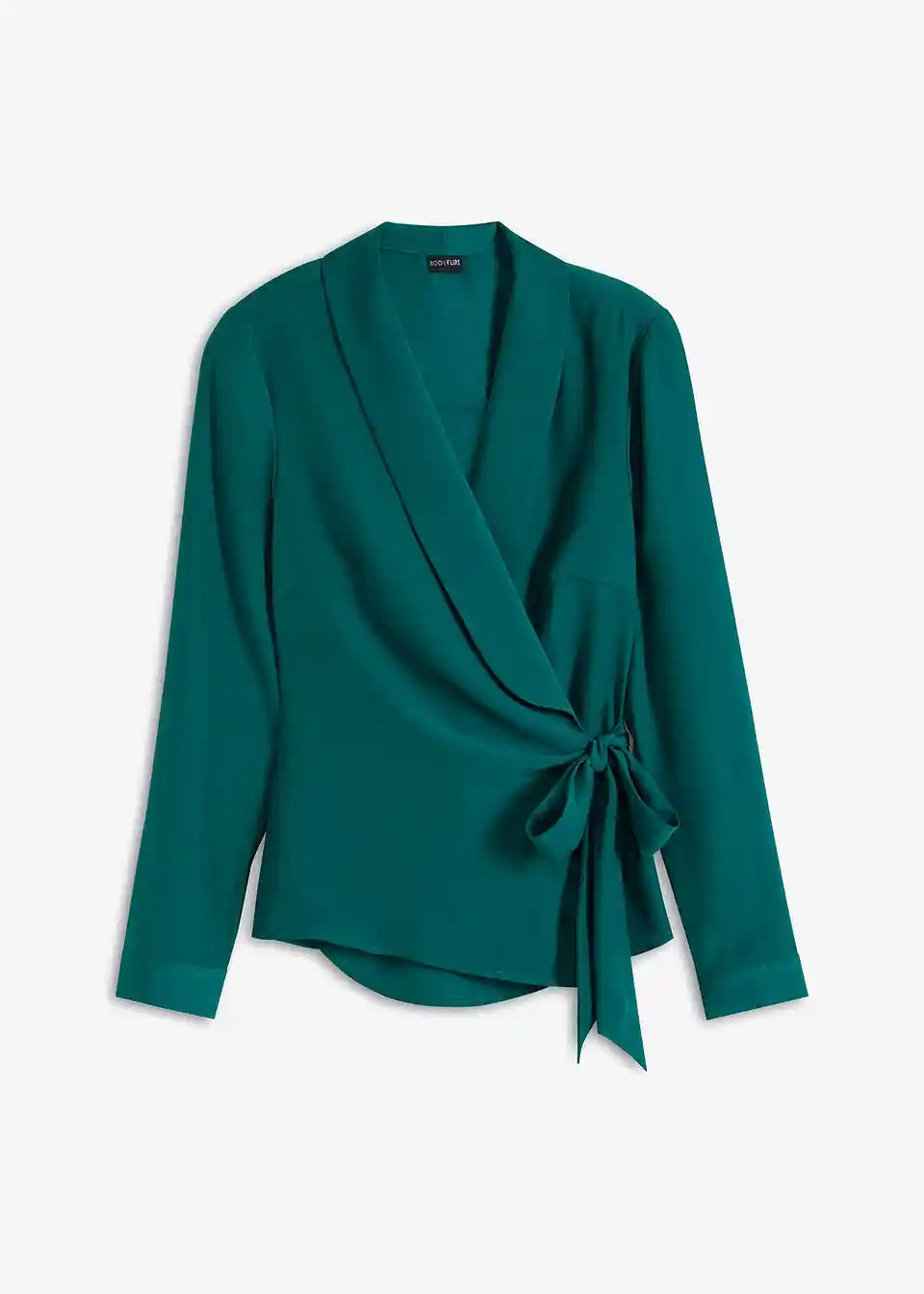 Modna preklopna bluza s šalom ovratnikom in vezalnim trakom na strani