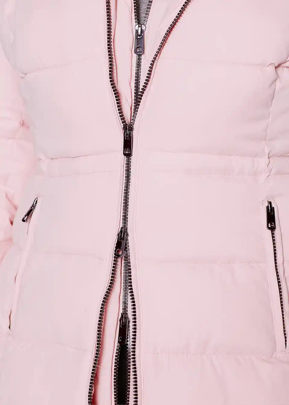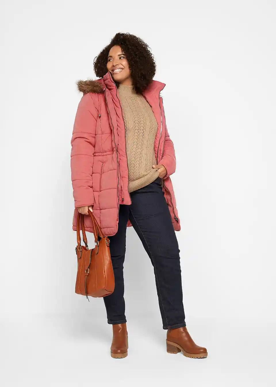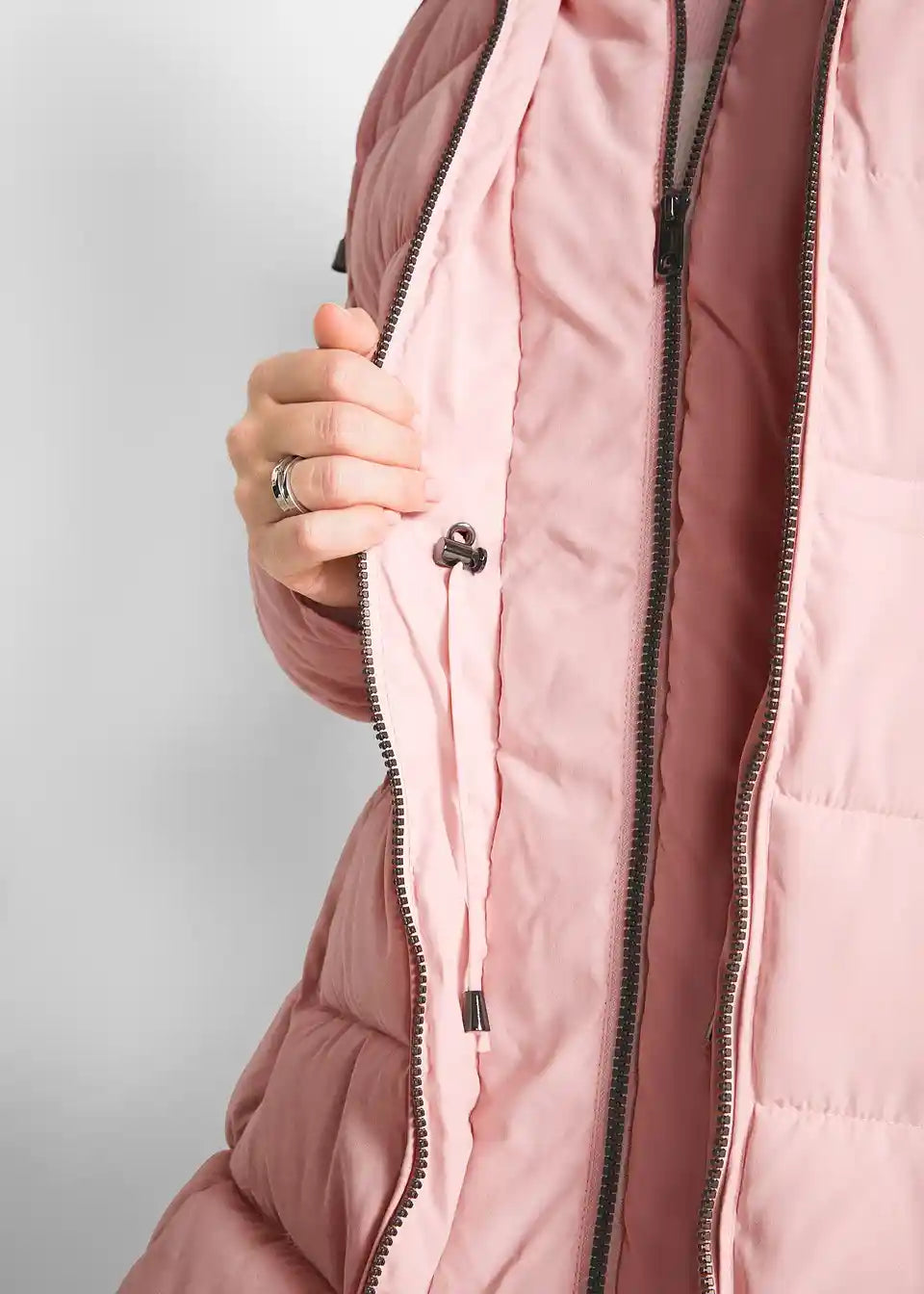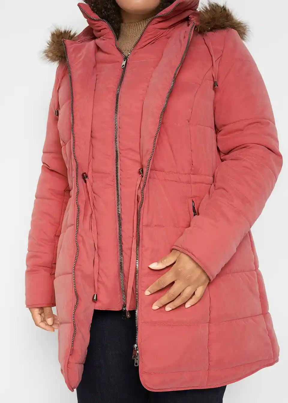 Ta prešit krajši plašč znamke bpc je vsestranski spremljevalec. Oprijeta oblika poskrbi za prijetno toploto. Po dolžini potekajoči deljeni šivi na sprednjem delu optično podaljšajo silhueto. Če želite, da je kontura jakne bolj elegantna, lahko kapuco odstranite. Prešit plašč z dvojnimi zadrgami zanesljivo ščiti pred vetrom in vremenskimi vplivi. Roke segrevata dva všita žepa.