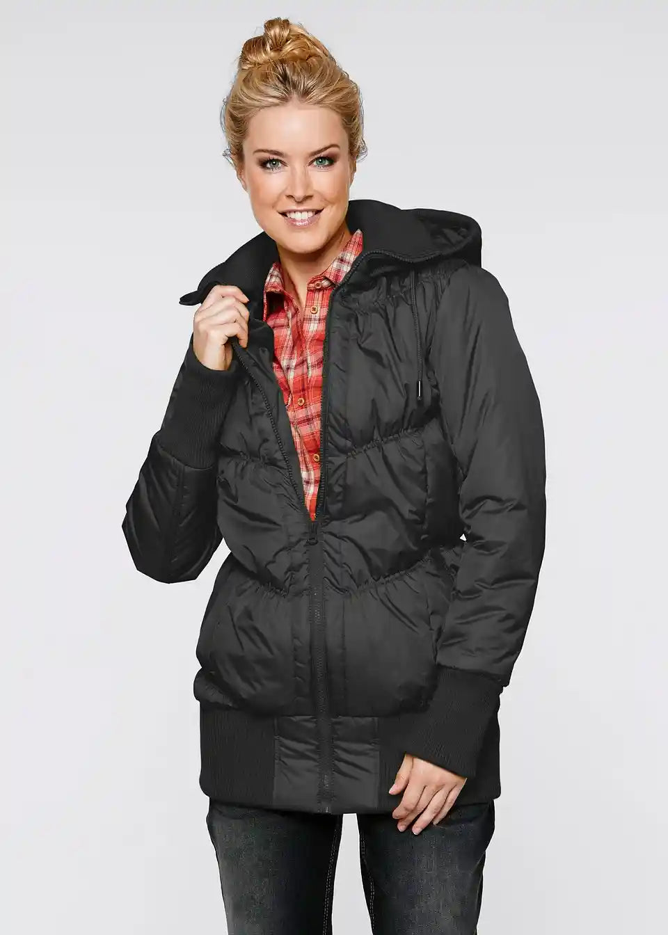 Prijetno topla skozi hladne letne čase - ta prešita jakna iz jesensko-zimske kolekcije blagovne znamke bpc je popolna spremljevalka za vsakdan. Rebrasti patenti pri ovratniku, rokavih, robu in kapuci zagotavljajo prijetno prileganje. Ovratnik se lahko zapne z zadrgo, ki ščiti pred prodiranjem mraza. Dva stranska žepa se prav tako zapreta z zadrgo.