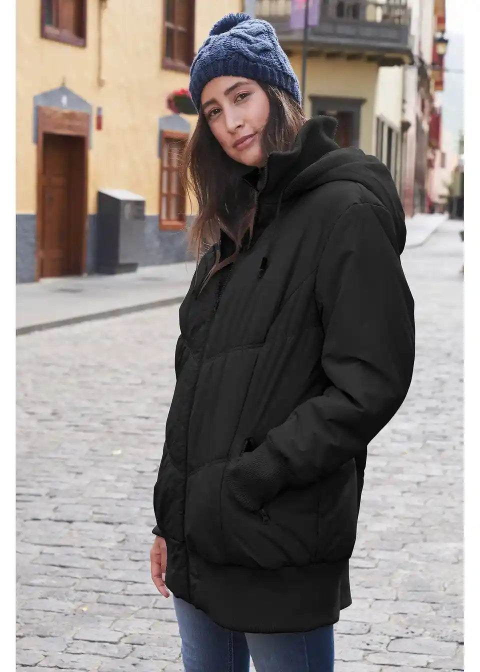 Moderna prešita jakna s kapuco v oblikovanem kroju