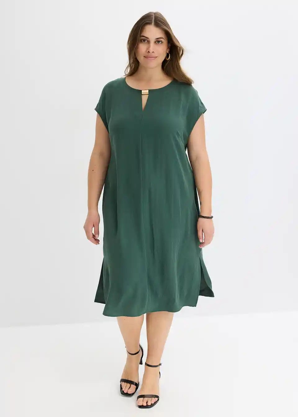 elegantna obleka iz strukturirane tkanine z dekorativnim obročem