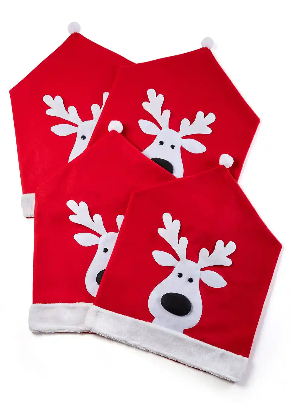 Prevleka za stole z aplikacijo losa je na voljo v prazničnem paketu 4 kosov. Oblikovana kot kapica z vzorcem očara s svojim ljubkim dizajnom. Navduši velike in majhne: z uporabo prevlek za stole bo jedilni prostor v trenutku pridobil praznično vzdušje.