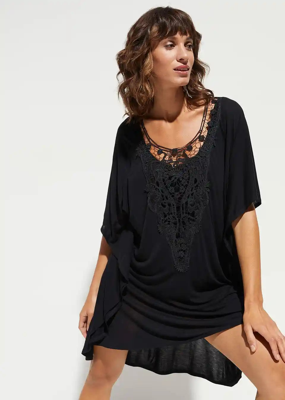 Ohlapna plažna tunika s kvačkanim vložkom