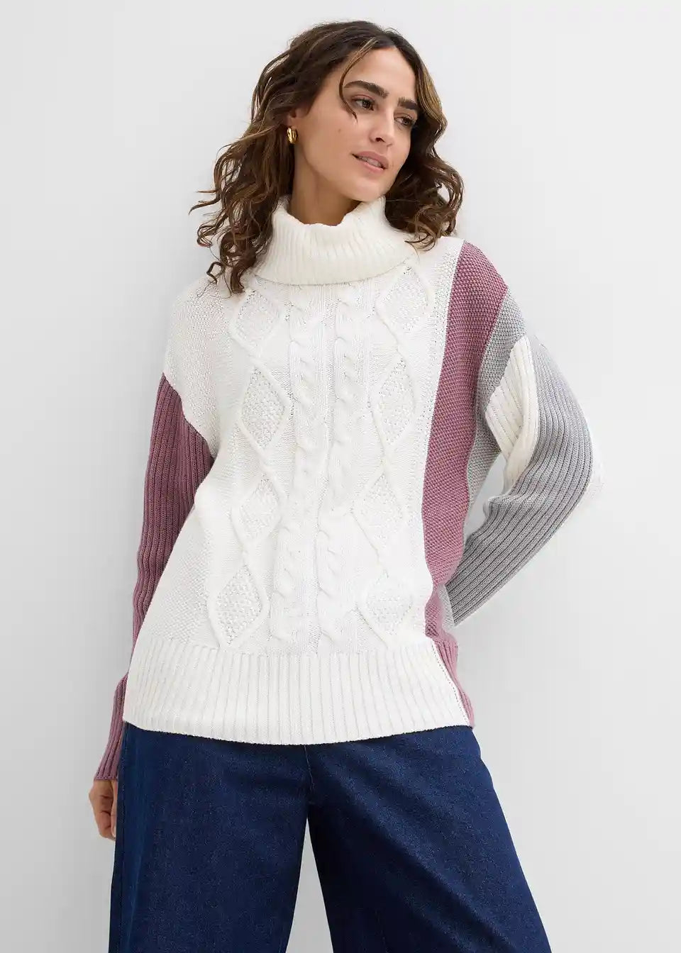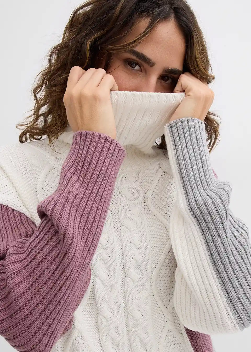 Modno pulover iz kitaste pletenine s puli ovratnikom