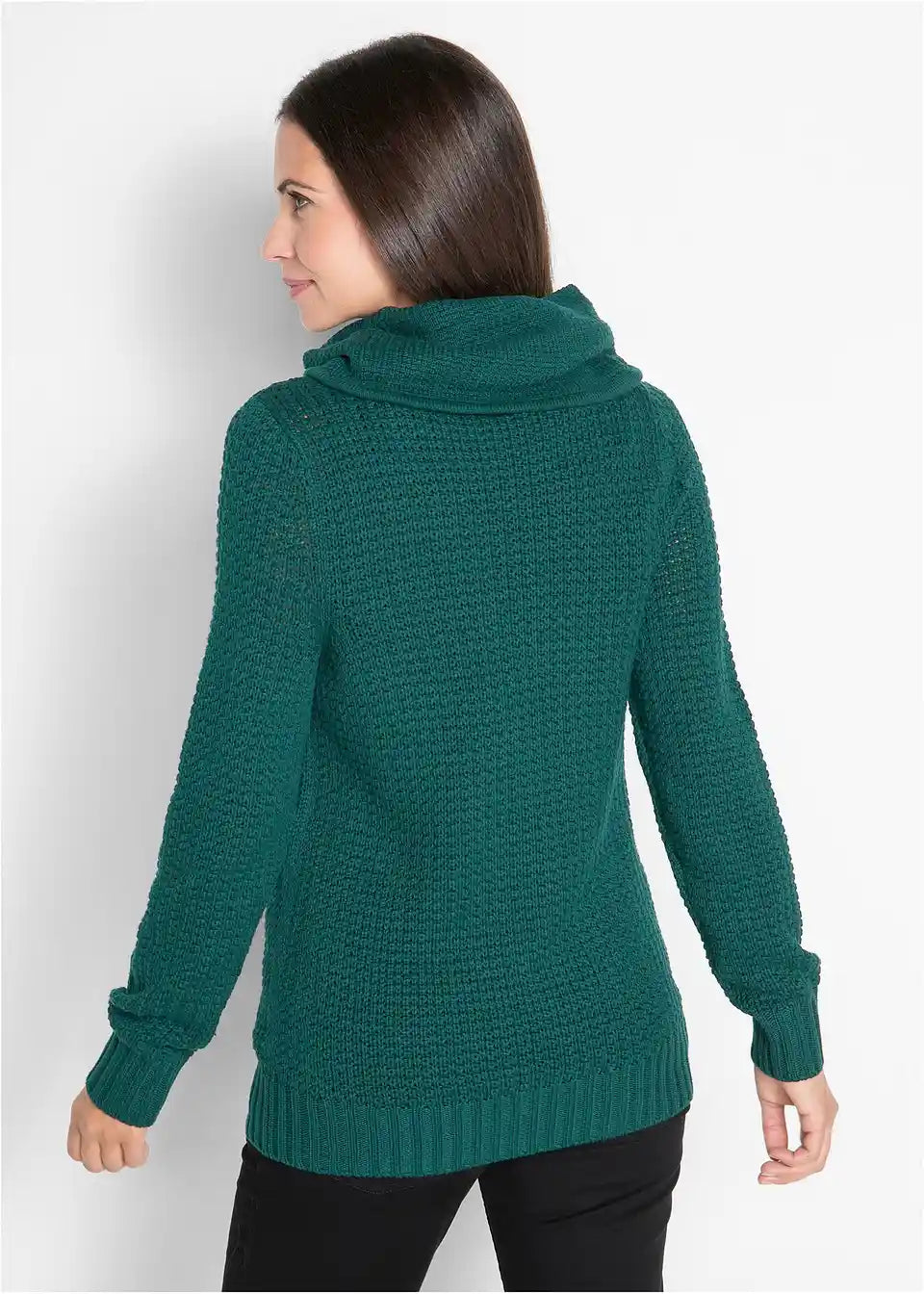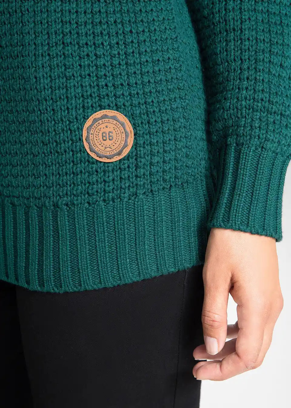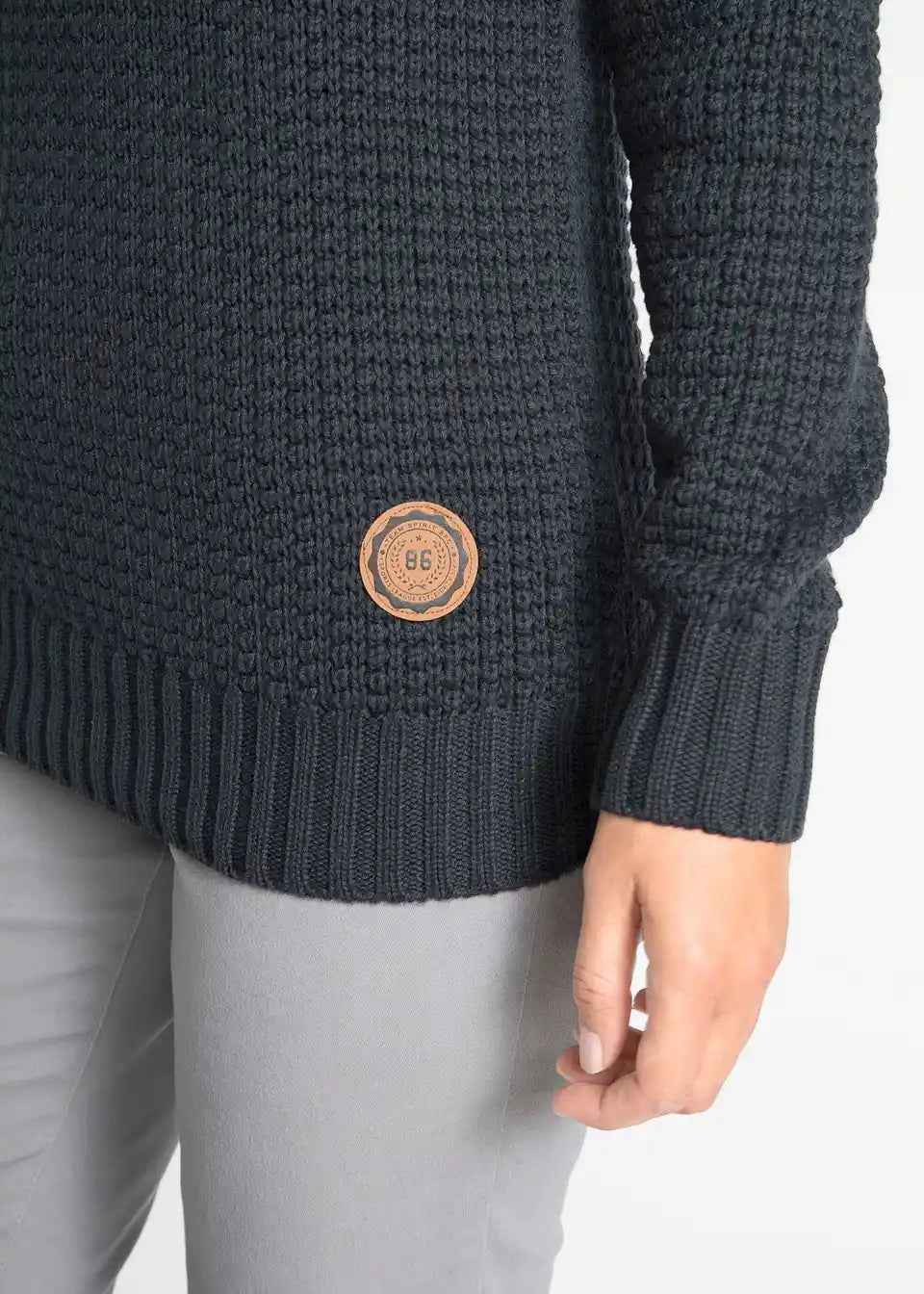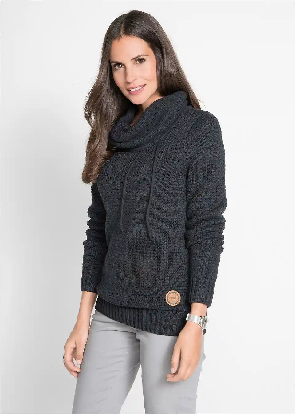Ta pulover od bpc je vsestranska izbira. Pleteni pulover z zanimivim vzorcem je odličen za kombinacijo s praktičnimi kavbojkami, romantičnim maksi krilom ali trendovskimi pajkicami. Dekorativne podrobnosti na modelu vključujejo majhen našitek in zaključke vrvic na izrezu iz imitacije usnja. Široki visok ovratnik, raglan rokavi in visoki zaključki na rokavih modno dopolnjujejo udoben pulover.